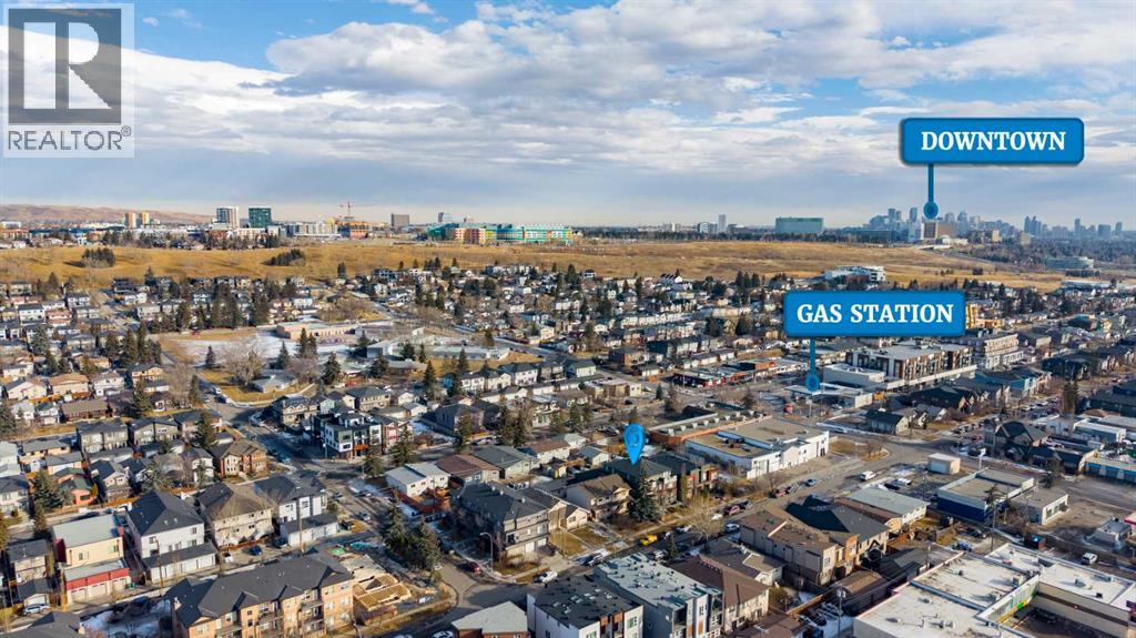 In real estate, location is everything — and Montgomery is one of those rare communities that truly delivers. Steps from the Bow River pathways and surrounded by beloved local cafés, shops, and green space, this beautifully appointed front-unit townhouse in a modern four-plex offers elevated inner-city living without compromise. With south-facing exposure and a sunny front patio, this well-maintained home is filled with natural light and offers nearly 2,200 sq ft of total developed living space across four finished levels. Every floor has been thoughtfully designed to balance style, comfort, and everyday function. The main level impresses with 9-foot ceilings and a bright open-concept layout that’s ideal for entertaining. The gourmet kitchen anchors the space with quartz countertops, sleek cabinetry, stainless steel appliances, and a central island perfect for gathering. Rich hardwood flooring carries into the inviting living room, where a gas fireplace adds warmth and character. A tucked-away 2-piece powder room completes this floor. On the second level, the primary bedroom serves as a relaxing retreat with a walk-in closet and private 4-piece ensuite. A second spacious bedroom, another full 4-piece bathroom, and convenient stackable laundry provide excellent functionality for families, guests, or roommates.The third-floor loft is a standout feature and offers exceptional versatility. Whether you envision a second primary suite, executive home office, media lounge, or creative space, this level adapts beautifully. Highlights include a large walk-in closet, a luxurious 5-piece ensuite with double vanity and soaker tub, a built-in wet bar, and access to a private balcony - the perfect place to unwind at the end of the day. Downstairs, the fully finished basement extends your living space with a generous recreation or family room, another bedroom, and a 3-piece bathroom, ideal for guests, teens, or a private workout area. Additional features include central air condi tioning, a detached single garage, and a designated visitor parking stall at the rear. Homes like this don’t come along often; modern design, flexible living spaces, and a walkable inner-city location that continues to grow in popularity. If you’ve been waiting for the right Montgomery property to call home, this one is well worth a look. (id:51913)