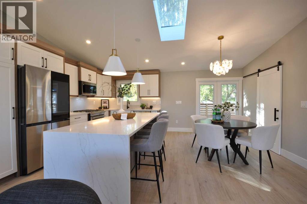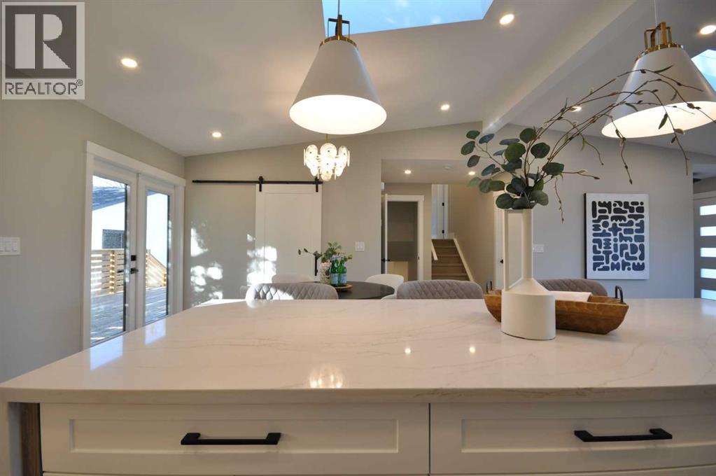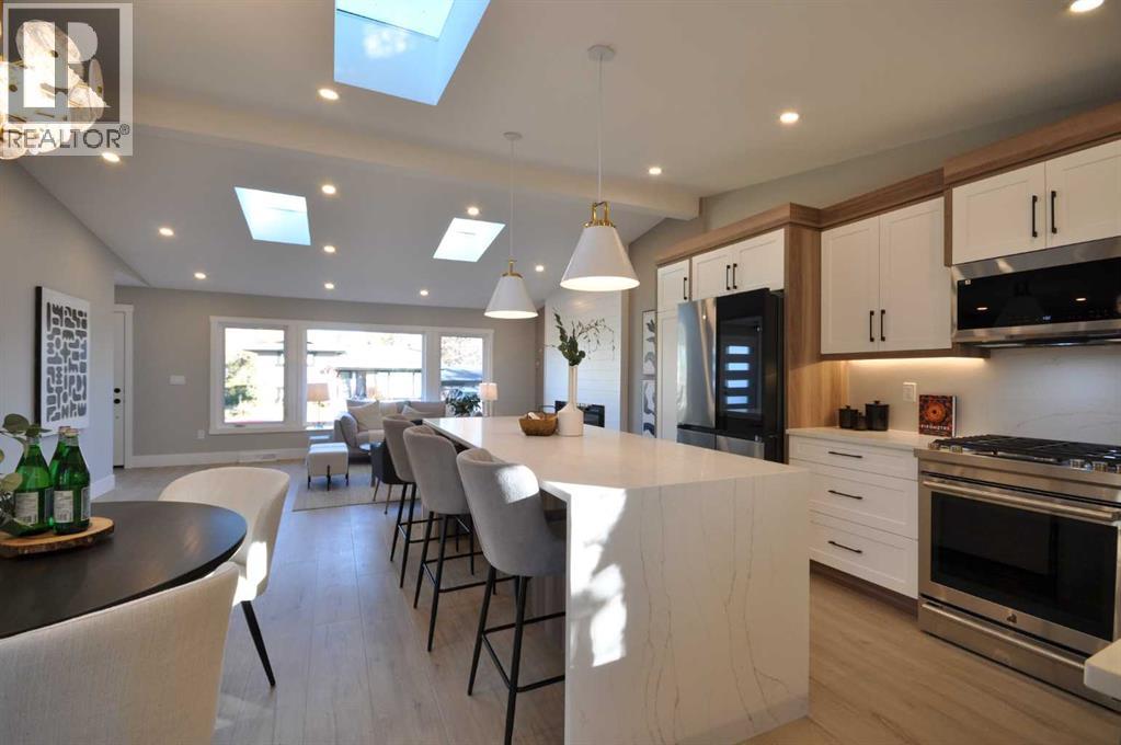 Wow, this modern 4 level split has been completely restyled and renovated top to bottom WITH 2940 SQ FEET OF DEVELOPED LIVING SPACE on 4 levels. As you step inside you will see the spacious great room with stunning new vaulted ceilings complete with skylights which bring in an abundance of natural light. Luxury vinyl flooring flows throughout the main floor and into the third level and hallways throughout. Feature electric fireplace adds ambiance to this warm living space. The kitchen sports 2 toned cabinets, eat up island with waterfall quartz top, and easy access to the private and treed west yard either through the garden doors or the adjacent mud room. The mud room features ample storage and this level is complete with a 2pc bathroom. Upstairs you will find the primary bedroom with a 4 pc bathroom generous walk in closet, as well as an additional bedroom and main bathroom. Steps down from the kitchen is the family room complete with a large wet bar, second fireplace and a large picture window flooding this room with more natural lighting. Adjacent to the family room is the perfect space for a sunny home office, an additional bathroom and conveniently located laundry. A few more steps down to the lower level you will find 2 more bedrooms, exercise room/office/playroom, bathroom and mechanical/storage room. All new mechanicals, plumbing and electrical throughout. The exterior has been completely replaced with new exterior stucco, soffit, fascia, windows and trendy vertical metal cladding. The double garage is also brand new. Large front porch and back deck provide amazing outdoor living spaces just off the main level. Close to Chinook bilingual elementary school, Henry Wise wood High School and Calgary Jewish Academy. Located a few blocks from numerous amenities, such as shopping, the Rockyview Hospital, playgrounds, transportation and Glenmore Reservoir. Really nothing left to do but move in and enjoy. (id:51913)