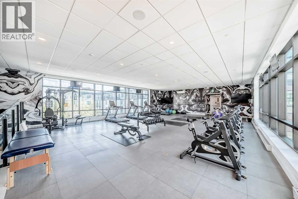 Welcome to the "Esquire" in Calgary’s vibrant University District, just steps from U of C, Market Mall, Foothills Hospital, and C-Train access. This stylish "like new" one-bedroom condo offers both modern finishes and unbeatable convenience, perfect for students, professionals, or downsizers alike. Inside, you’ll find a bright open layout with a pearl-white palette, Quartz counters, soft-close cabinetry, luxury vinyl plank flooring, and in-suite laundry. The kitchen is thoughtfully designed with a roomy island, upgraded appliances including a gas stove, garburator, Silgranit sink, and elegant fixtures. The primary bedroom includes a walk-in closet, while the living room opens directly onto your private patio—complete with a gas BBQ hookup. Being on the main floor makes it ideal for pet owners, offering both comfort and easy outdoor access. As an end unit, you’ll enjoy extra privacy and a quiet setting, enhancing the home’s peaceful feel. The Esquire also includes a wealth of amenities: heated underground parking, storage locker, bike storage, fitness center, pet spa, and even a bike workshop. This is a fantastic opportunity to live in one of Calgary’s most sought-after, walkable communities with shopping, dining, parks, and pathways right at your doorstep. (id:51913)