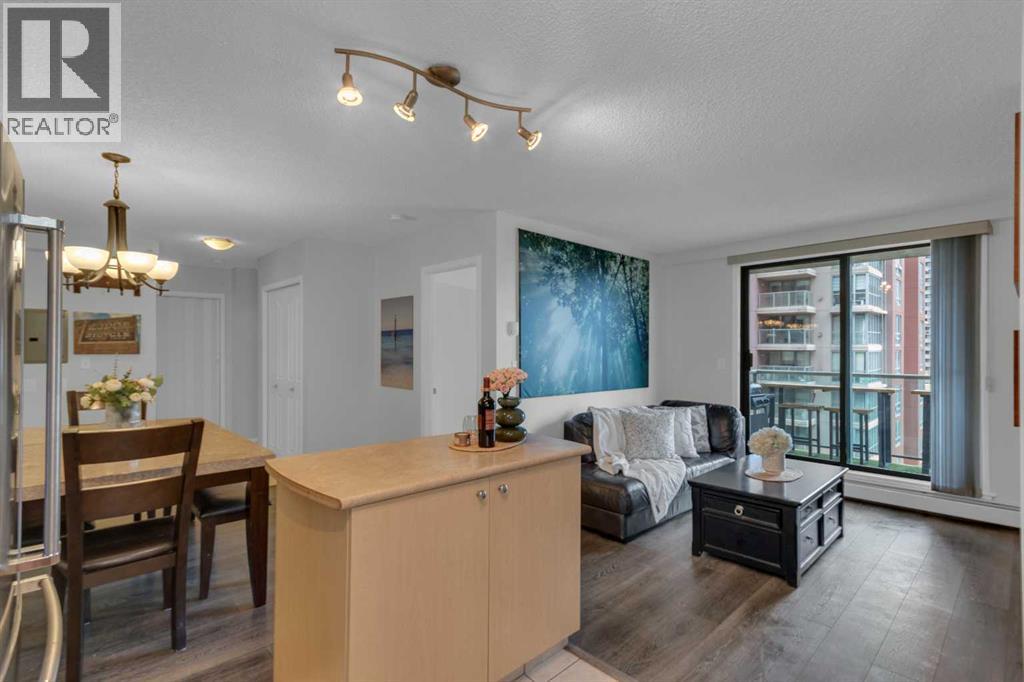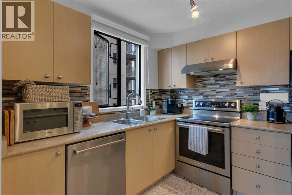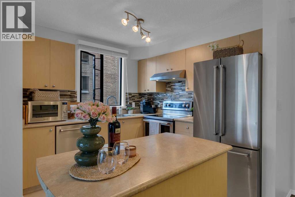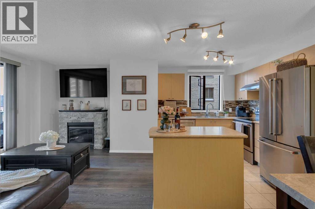 Welcome home to the best priced, 2 bedroom condo in desirable TARJAN PLACE - ALL UTILITIES INCLUDED in your condo fee! This bright END UNIT enjoys north, east & south exposure—so you can enjoy sunrise morning coffee AND sunny afternoons on your balcony with BBQ gas hookup, yes please! Packed with upgrades you’ll love the easy-care vinyl plank flooring, cozy gas fireplace and roomy kitchen with newer KITCHEN AID, STAINLESS STEEL appliances and convenient island for extra prep space. Both bedrooms are well-sized, the 4-pc bath is tidy and functional, and there’s FULL SIZED, in-suite laundry for the win. The building itself adds to your comfort with the convenience of a full-time concierge and the security of a heated underground parking stall. You'll also love the secured package delivery room, bike storage and fitness centre. Step outside and you’re just minutes from the C-Train, Bow River pathways, coffee shops/restaurants and all the energy of Calgary’s downtown core. Additional highlights include a freshly renovated lobby, low condo fees and the cherry on top - FRONT ROW SEATING on your own balcony for the Calgary Stampede Parade every July!Whether you’re starting out, downsizing, or simply looking for a place with personality and warmth in a premier west-end location boasting quick access in/out of downtown, this fantastic condo is ready to welcome you home. Don't miss the virtual tour under the film reel in the top left corner - call your favourite Realtor and book your private viewing today! (id:51913)