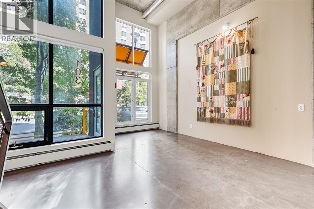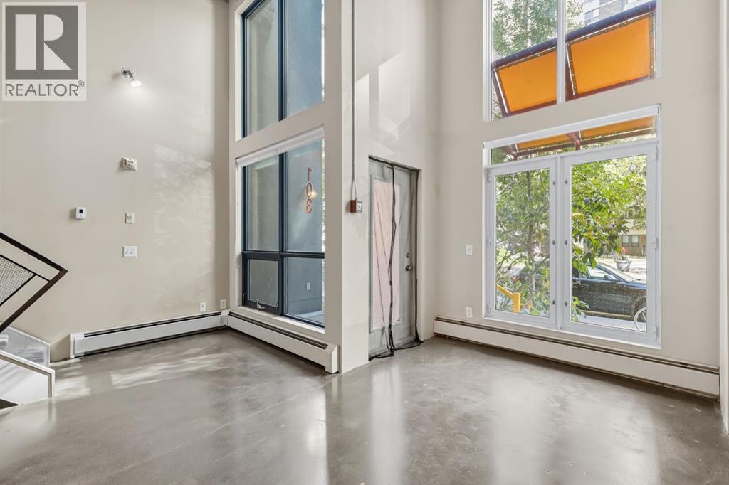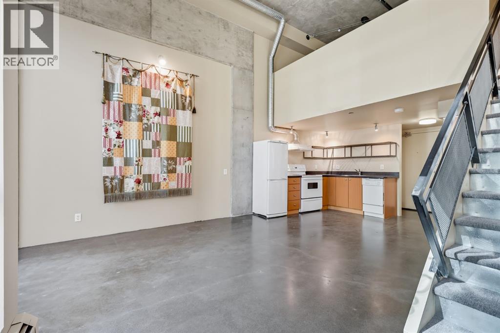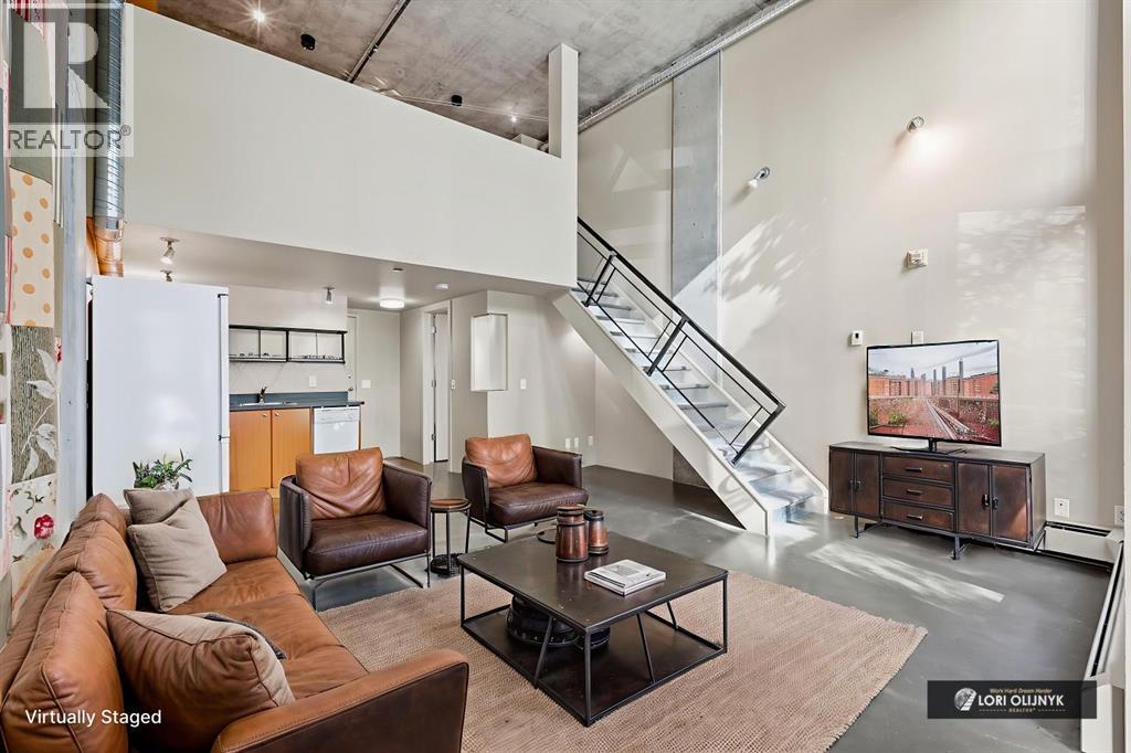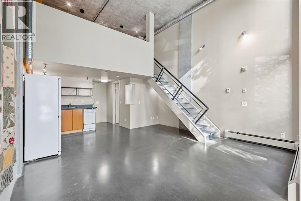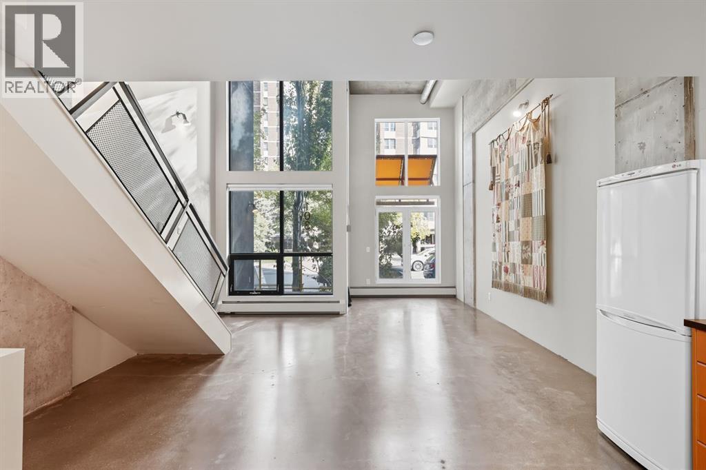 Looking for something a little different? This rare 620 sq. ft. loft in East Village delivers the ultimate blend of style and function. With its street-level private entrance, this space is perfect for creatives, entrepreneurs, and consultants who want a home that doubles as a showcase for their work.Step inside and you’ll find:Soaring industrial ceilings and exposed concrete floors that ooze urban coolOpen-concept L-shaped kitchen and full bathroomIn-suite laundry hook-up East-facing windows plus access to a communal rooftop patio with incredible downtown viewsUnderground parking to keep your car safe and snow-freedeal for coffee chats or a creative touch of curb appeal,.Live in the heart of Calgary’s most exciting community.Right outside your door: Studio Bell, the Calgary Public Library, the new BMO Centre, river pathways, and eclectic cafés—all just steps away.This is more than a condo—it’s a lifestyle, and a rare opportunity at an amazing price. Quick possession available—make it yours today! Condo fees $470/month. No short term rentals (id:51913)