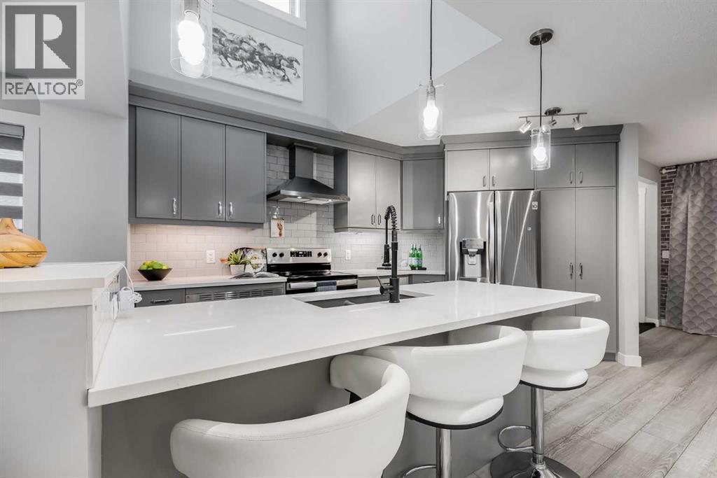 Welcome to your new home in Chinook Gate, a vibrant and growing community offering incredible value and location. This unique and spacious detached property is just two blocks from a fantastic playground and within walking distance to the future school site, making it ideal for families or savvy investors.Step into a sunlit, open-concept main floor where abundant windows fill every corner with natural light. The front family room is large and welcoming, perfect for gatherings or cozy nights in. From there, step up into a beautifully appointed kitchen with vaulted ceilings and skylights, creating a bright and airy atmosphere. Full-height cabinetry, upgraded stainless steel appliances—including a built-in microwave—and an oversized island combine practicality with style. A built-in pantry adds to the generous storage. The adjacent dining area easily accommodates a table for eight, and a tucked-away powder room maintains flow without compromising space.Off the dining area, the rear door opens to a fully fenced backyard, complete with a large deck and pergola—perfect for entertaining or relaxing outdoors. The landscaped yard includes a pathway leading to a double detached garage, giving you the luxury of no winter windshield scraping.A charming curved staircase leads to the second floor, where skylights and high windows bathe the landing in light. The spacious primary suite features patio doors opening onto a private, covered deck, ideal for morning coffee or evening unwinding. This retreat also includes a walk-in closet and a luxurious five-piece ensuite. Two additional bedrooms, another full bathroom, and a convenient upstairs laundry room with cabinets and countertop complete the upper level.The unfinished basement is a blank canvas ready for your imagination—whether you envision a rec room, guest suite, or home gym. Located within walking distance to schools, including the nearby high school, Chinook Winds Park, restaurants, and shopping, plus offering quick acc ess to Highway 2, this home combines comfort, convenience, and value in one amazing package.Ready to experience it in person? Schedule your private showing today and discover all that Chinook Gate has to offer. (id:51913)