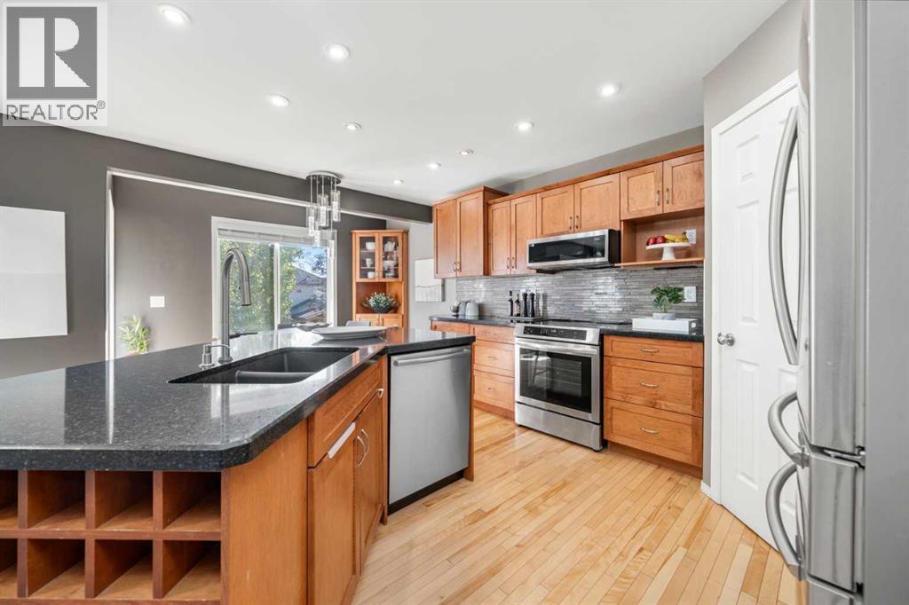***OPEN HOUSE SATURDAY OCTOBER 18th 12-2pm*** IMPECCABLY MAINTAINED and EXTENSIVELY UPGRADED, this exceptional WALKOUT HOME stands head and shoulders above others in BRIDLEWOOD, combining a functional family layout with outdoor spaces designed for entertaining. A welcoming OPEN-TO-ABOVE FOYER creates a sense of volume and privacy as you step inside. The main level flows seamlessly through the LIVING ROOM, DINING AREA, and CHEF’S KITCHEN, where extended WOOD CABINETRY, QUARTZ COUNTERTOPS, a GRANITE SIL SINK, and STAINLESS STEEL APPLIANCES with an INDUCTION STOVE set the stage for everyday cooking and weekend gatherings. A CORNER PANTRY with upgraded shelving provides practical storage, while a GARBAGE PULLOUT and HUTCH enhance function. The inviting LIVING ROOM centers around a GAS FIREPLACE with a built-in BLOWER FAN for cozy ambiance and added warmth. The main floor is completed by a well-designed MUDROOM with LAUNDRY on PEDESTALS, generous storage, and a stylish 2-PIECE POWDER ROOM. Upstairs, the thoughtful family layout continues with three bedrooms, including a bright BONUS ROOM converted to a bedroom, complete with an ELECTRIC FIREPLACE, WOOD CLOSET ORGANIZER, and included TV beneath CATHEDRAL CEILINGS. The 4-PIECE MAIN BATHROOM features EPOXY COUNTERS and WATERPROOF LAMINATE FLOORING for easy care. The PRIMARY SUITE is a true retreat with a WALK-IN CLOSET by CALIFORNIA CLOSETS and a beautifully updated 4-PIECE ENSUITE with matching finishes. The FULLY FINISHED WALKOUT BASEMENT expands the living space with CORK FLOORING laid over a SUBFLOOR for warmth, OVERSIZED WINDOWS that fill the space with light, and a STONE FEATURE WALL prewired for 9.2 SURROUND SOUND. This level includes a RECREATION ROOM, 4TH BEDROOM, 3-PIECE BATHROOM with STAND-UP SHOWER, and excellent STORAGE. Walls and ceilings are sound-dampened with ROXUL SAFE AND SOUND INSULATION, creating an ideal environment for movie nights or guests. Outside, the landscaped yard becomes an ENTERTAINER’S PARAD ISE with MATURE TREES, raised FLOWER BEDS, a wide DURADEK UPPER DECK with stairs to the ground, and a COVERED SEATING AREA below featuring an EATING BAR, TV MOUNT, and WIRING FOR 5.1 SURROUND SOUND. The lower patio and GEMSTONE LIGHTING on the front, back, and under the deck—complete with multi-color holiday and mood options—create a stunning evening atmosphere. Every upgrade was thoughtfully chosen and fully permitted, including FLAT-PAINTED CEILINGS, upgraded HAIL-RESISTANT SHINGLES (2022) with enhanced ventilation, LED LIGHTING throughout, HOT WATER ON DEMAND, CENTRAL AIR CONDITIONING, a WATER SOFTENER, and a HIGH-EFFICIENCY FURNACE. The insulated DOUBLE ATTACHED GARAGE is finished with 5-LB FOAM INSULATION, EPOXY FLOORS, GAS HEATER, POT LIGHTS, and an ULTRA-QUIET OPENER, while a widened driveway provides additional parking. This home perfectly combines family function with luxurious comfort—ideal for those who love to gather, entertain, and enjoy every space inside and out. (id:51913)