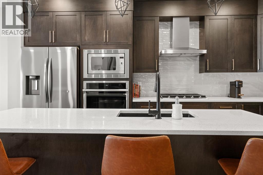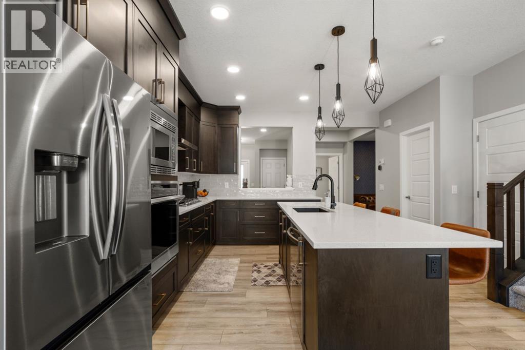 Price Reduced!! Beautifully upgraded and ideally situated on a desirable pie shaped lot in the sought after community of Carrington. This Excel Homes build offers over 3,100 sqft of developed living space (2,258 sqft above grade) with exceptional versatility. Fully move in ready, it features 4 bedrooms upstairs plus a fully legal suited 2 bedroom basement with a separate side entrance — ideal for extended family or income potential. From the moment you arrive, the modern curb appeal stands out with a fresh new roof and siding for added peace of mind. Step inside to a bright and inviting open concept layout, enhanced with modern finishes, high ceilings, and large windows that fill the space with natural light. A den and the main floor powder room are tucked neatly to one side along with the pantry for added convenience. The heart of the home is the chef’s kitchen, showcasing an abundance of cabinetry, expansive counter space, a gas cooktop, stainless steel appliances, built in microwave & oven and a large center island — making it the true focal point of the main floor. Adjacent to the kitchen, the dining area easily accommodates a full-size table and flows seamlessly into the inviting living room, where an electric fireplace sets the mood for cozy evenings. Step outside to your private backyard oasis and you’ll find your spacious backyard offering plenty of room for kids to play, pets to roam, and summer gatherings with friends and family. A charming gazebo with a seating area adds the perfect touch for relaxing or entertaining outdoors. Upstairs, the layout offers both space and privacy. The generously sized bonus room sits in the center, perfect for movie nights or a play area providing separation from the primary suite and the three additional bedrooms. The primary bedroom is a true retreat with a 5-piece ensuite, walk in closet, stand up shower, his & her sinks, and a corner tub. Across the upper floor, three additional spacious bedrooms offer versatility for ho me offices, kids rooms, or guest rooms, along with a convenient upper level laundry. The fully finished 2 bedroom basement legal suite was recently developed with a separate entrance and features a full kitchen, living room, 4-piece bath, seperate laundry and two generous bedrooms. LVP flooring in the kitchen and living room and carpet in the bedrooms provide comfort and durability, while additional storage space ensures practicality. Central air conditioning has also been added for comfort during the summer months, making this home a complete package of style, functionality, and comfort. Enjoy the best of Carrington living in this fully finished home on a pie shaped lot. With plenty of room for family, entertaining, and everyday living, this home combines comfort, style, and functionality in a prime NW Calgary location near parks, schools, and shopping! (id:51913)
