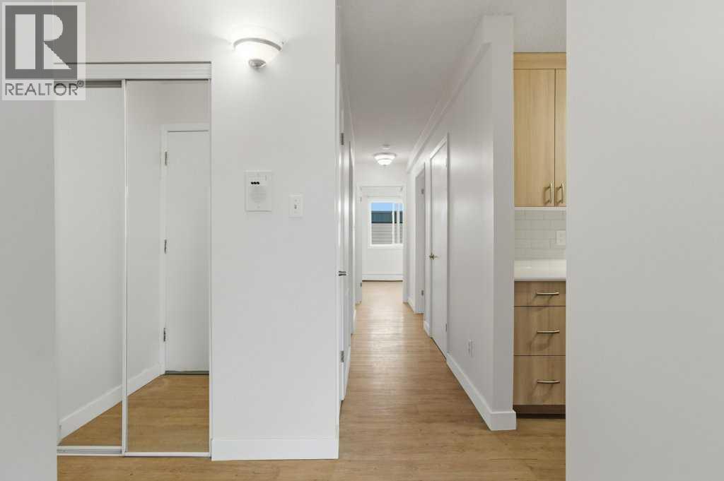 TOP FLOOR UNIT IN ACADIA offering approximately 869 sq. ft. of smartly designed living space with extensive renovations throughout. This two bedroom, one and a half bathroom condo delivers exceptional function, privacy, and flexibility—ideal for first-time buyers, downsizers, or investors. Step inside to discover easy care, water resistant laminate flooring throughout and a thoughtfully designed layout with generous room sizes and excellent storage. The professionally renovated kitchen features granite countertops, a modern tiled backsplash, stainless steel appliances, and custom built-in cabinetry that adds valuable extra storage with pull-out shelving. The spacious great room flows to a private balcony through sliding doors, while the well-sized dining nook easily accommodates a large table—perfect for entertaining. The updated 4-piece main bathroom showcases a modern tiled tub/shower surround and new vanity. A rare and desirable in-suite laundry room adds everyday convenience not found in all units. The primary bedroom offers a walk-in closet and private 2-piece ensuite, while the second bedroom is generously sized—ideal for guests, roommates, or a home office. This well-managed complex has seen substantial exterior upgrades, enhancing long-term value and curb appeal. In 2017, major improvements included a new roof, doors, Hardie Board siding, and common area updates. In 2020, all exterior walkways and entry areas were replaced with new concrete, providing a refreshed and well-maintained appearance. One assigned parking stall is included. Located in the established community of Acadia, this home offers outstanding access to local shops, services, schools, parks, and Heritage LRT Station. A true standout in a quiet, well-maintained complex, this move-in-ready unit showcases thoughtful upgrades, added functionality, and exceptional value. (id:51913)