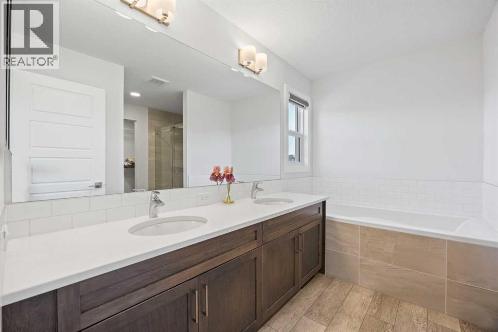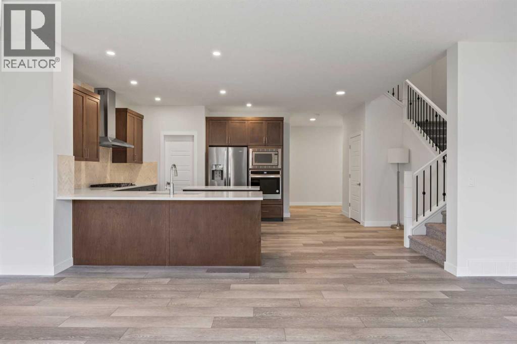 Welcome to 105 Creekstone Path SW, an exceptional two-storey home built by Sterling Homes, offering the perfect balance of comfort, style, and future potential. Situated in the emerging and family-friendly community of Creekstone, this home showcases over 2,200 square feet of meticulously designed living space with rich finishes and modern conveniences throughout.Step inside to a bright and open main floor that effortlessly blends form and function. The chef-inspired kitchen is the showpiece of the home, featuring elegant dark cabinetry that adds warmth and depth, sleek quartz countertops, and a central island ideal for meal prep and entertaining. High-end built-in appliances including a built-in wall oven, built-in microwave, gas cooktop, and a designer range hood elevate the cooking experience. A spacious walkthrough pantry connects directly to the mudroom and garage, making everyday errands easier than ever.The main living and dining areas are bathed in natural sunlight thanks to the home's south-facing backyard, creating a warm and inviting atmosphere year-round. Upstairs, you’ll find a generously sized bonus room perfect for family movie nights, a play area, or a home office, as well as three oversized bedrooms, each with its own walk-in closet. The primary suite offers a peaceful retreat with ample space, a luxurious ensuite, and thoughtful storage throughout.A separate side entrance leads to the unfinished basement, offering an incredible opportunity for future development. Whether you're dreaming of a legal suite, home gym, or multi-generational living space, it’s all possible with City of Calgary approval. The layout provides flexibility to grow with your family’s needs or add value as an investment.This is more than just a home. It’s a smart move for your future. (id:51913)
