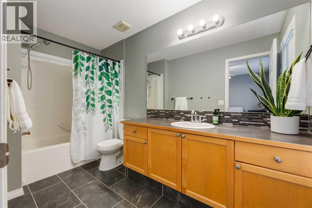 Negotiable Possession! Can be quick! Dual Master Suites, one with a full 4-piece bath and one with a 3-piece bath. FULLY FINISHED BASEMENT has a beautiful rec room/flex room. Utility room with good storage space and lots of storage under the stairs. Upstairs you will enjoy the bright Living Room with office space. Walk out to porch and stairs, welcoming your guests if you choose to use this entry to your spacious home. Walk up to lovely Kitchen, dining (lovely deck for your BBQ's and quiet relaxation) 2-piece bath/laundry. Upstairs will again surprise you with two bedrooms, each having their own bathroom ensuites (one a 4-piece bath and the other a 3-piece bath) and two walk-in closets. Front attached garage and a driveway with room to park a second vehicle. Amazing location across from morning coffee and other amenities as well as close to Calgary's ring road, transportation and access to everything including Walking paths, Fish Creek, schools and so much more! It's so easy to live here! This is a beauty! Call and book your viewing now! You will love this home! (id:51913)
