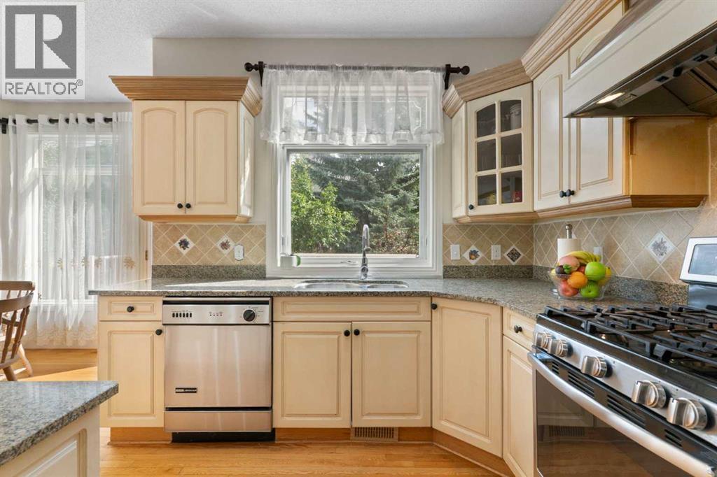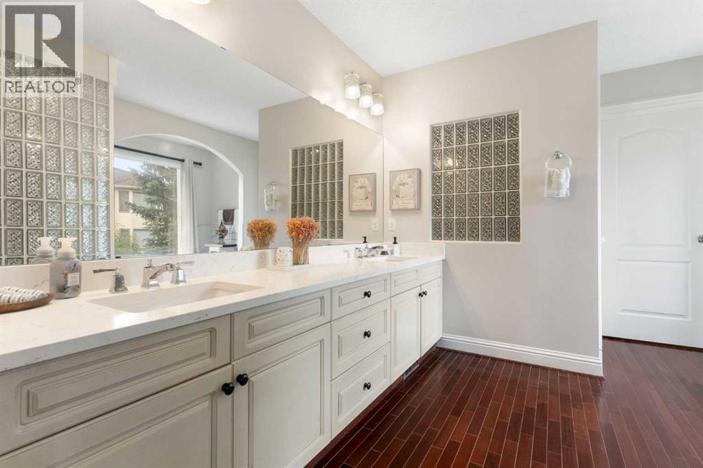 NEW PRICE!!! Step into this stunning former showhome in the exclusive Hamptons Square — where high-end estate finishes meet everyday comfort. Grand entrance with soaring 2-storey ceilings & gleaming hardwood floors throughout greets you as you walk through the front door.  The bright & airy main floor featuring an open-concept living/dining space with a cozy gas fireplace, a private home office, and main-floor laundry. The elegant, chef-inspired kitchen with granite countertops, stainless steel appliances, walk-in pantry, and a sunny bayed breakfast nook opening to your south-facing deck & backyard oasis. Upstairs, the curved open-riser staircase leads to 3 spacious bedrooms — all with hardwood floors — including the owner’s retreat with walk-in closet & spa-style ensuite that was RECENTLY RENOVATED. The fully finished lower level adds a 4th bedroom, a media room, a full bathroom, and a huge games/rec room — perfect for entertaining. Some of the extras you will love in this home are, 2 BRAND NEW FURNACES, 2 skylights for extra natural light, minutes to shopping, transit, and TOM BAINES JUNIOR HIGH SCHOOL. Hamptons is an established neighbourhood with an elegant golf course and it is among the best of the Northwest. This is more than a house. It’s your Hamptons lifestyle — ready for you to move in and make it yours. Call your favourite REALTOR® today or come by the Open House. (id:51913)