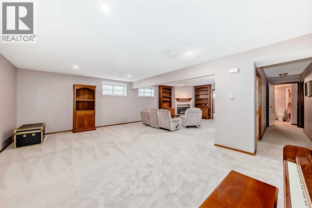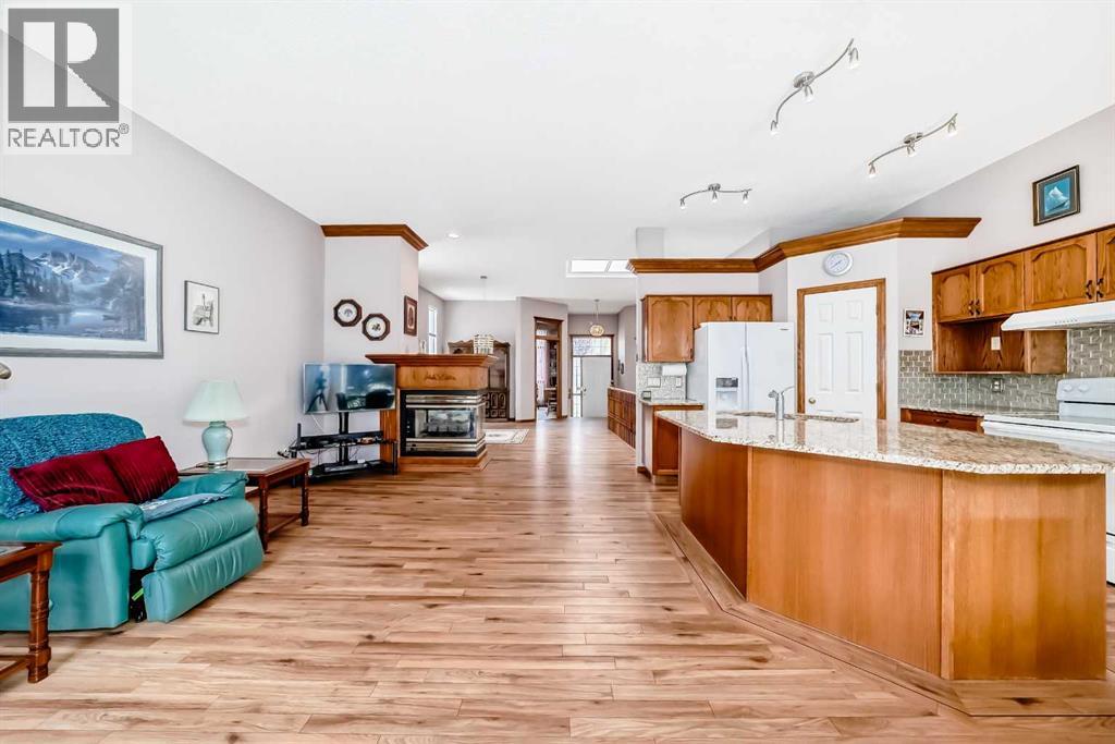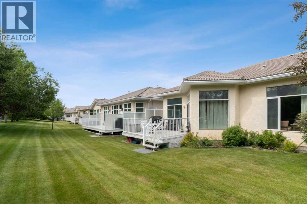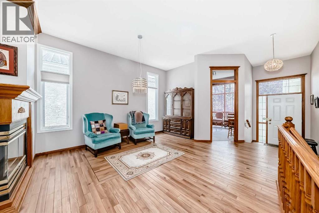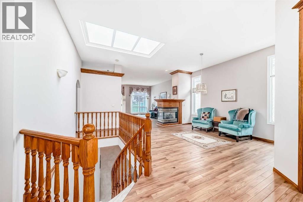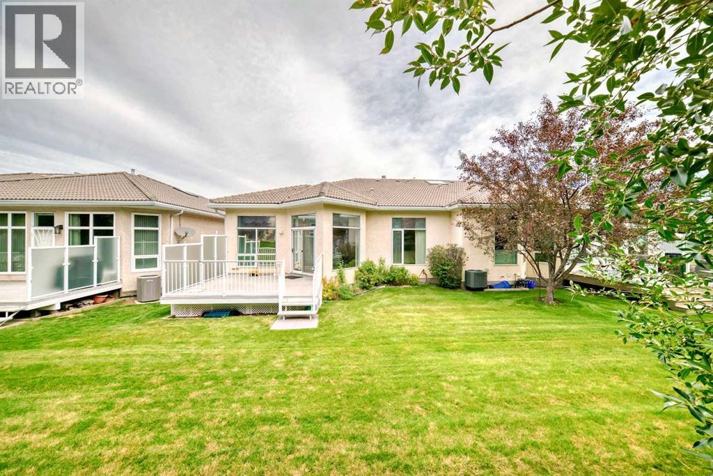 Discover the prestige and upscale living in Hamptons-one of NW Calgary’s most sought-after communities. This 2-bedroom villa combines timeless elegance with modern comfort, offering 2,900 sq. ft. of beautifully developed space across two levels. From the moment you step inside, you're greeted by vaulted ceilings, gleaming floors, and an abundance of natural light through floor-to-ceiling windows and skylights. The open-concept main floor features a spacious Living Room anchored by a three-sided gas fireplace, a generous formal dining area, and a bright, modern kitchen with a cozy breakfast nook that opens onto a private 14'x 14' deck—perfect for morning coffee or evening relaxation. Conveniently located is the large office with a full-length front-facing window framed by oak wood bookshelves.The luxurious primary suite easily accommodates a king-sized bedroom set, featuring a spacious sitting area, massive walk-in closet, a spa-inspired in-suite with a walk-in jetted tub, oversized shower, and a vanity. A 2-piece guest bath, main floor laundry/mudroom, and double attached garage complete the main level.The fully developed lower level is an entertainer’s dream with a large family room, second gas fireplace, games area, second bedroom, a den/guest room, an exhaust-vented workshop, and a full 4-piece bath—ideal for guests or multigenerational living.This home is loaded with upgrades and offers the perfect blend of low-maintenance villa living and spacious design. Don't miss your chance to own in this safe and prestigious community—book your private showing today! (id:51913)