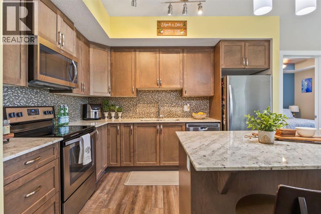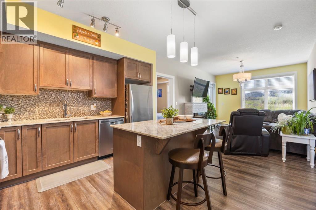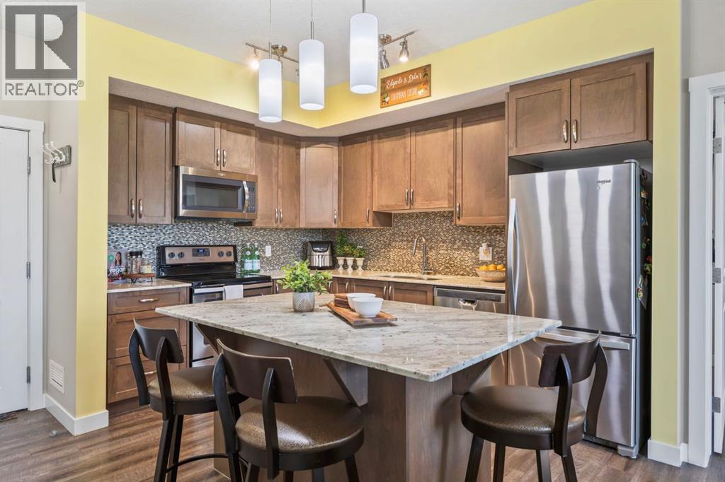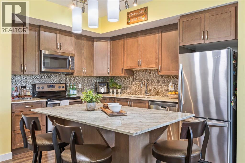 Welcome to this beautifully maintained ground-level apartment located in the vibrant and growing community of Sage Hill, NW Calgary—a perfect blend of urban convenience and suburban comfort. This 2-bedroom, 2-bathroom condo offers an exceptional layout and thoughtful finishes, making it an ideal home for first-time buyers, downsizers, or savvy investors. Step inside to discover a modern open-concept floor plan that flows effortlessly from room to room. The spacious kitchen is a true standout, featuring sleek stainless steel appliances, ample counter space, and a generous kitchen island with seating and additional storage—perfect for casual meals or hosting friends and family. The kitchen opens seamlessly to the living room, which boasts a beautiful tile-surround electric fireplace that serves as a cozy and stylish focal point. Large windows allow natural light to pour in, and direct access to your private southwest-facing patio makes indoor-outdoor living a breeze. Designed with privacy in mind, the two bedrooms are situated on opposite sides of the unit. The primary suite is spacious and bright, offering double closets and a private ensuite bathroom complete with a stand-up shower. The second bedroom is equally roomy and conveniently located next to the second full bathroom, which also provides access to a large laundry room with stacked washer and dryer, built-in cabinets and shelving—a rare and practical feature in condo living. You’ll love the durable and stylish vinyl plank flooring throughout the main living areas and bedrooms—no carpet anywhere!—along with tile flooring in the bathrooms for easy maintenance and a modern touch. This home comes complete with a titled underground parking stall and an assigned storage locker, adding even more value and convenience. Nestled in the peaceful yet well-connected community of Sage Hill, you’ll enjoy proximity to endless amenities. The community features green spaces, walking and biking trails and beautiful ravines. Min utes away are the Sage Hill Crossing and Beacon Hill shopping centres, offering grocery stores, restaurants, fitness studios, medical services, and more. Quick access to Stoney Trail and Shaganappi Trail makes commuting to other parts of the city quick and easy. This move-in ready unit truly combines style, function, and location. (id:51913)