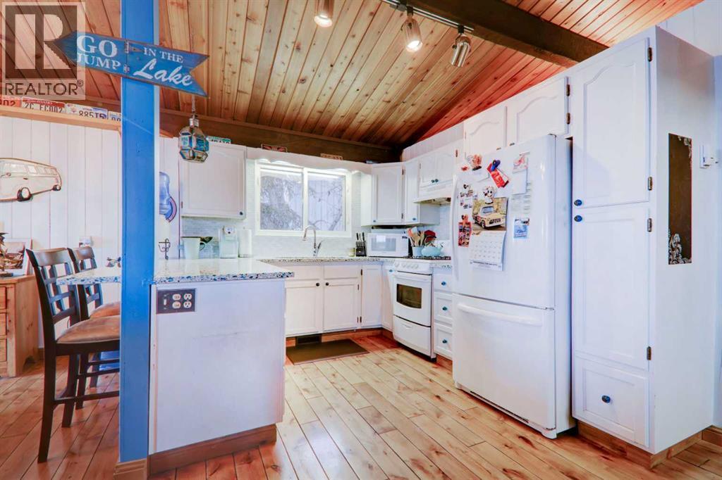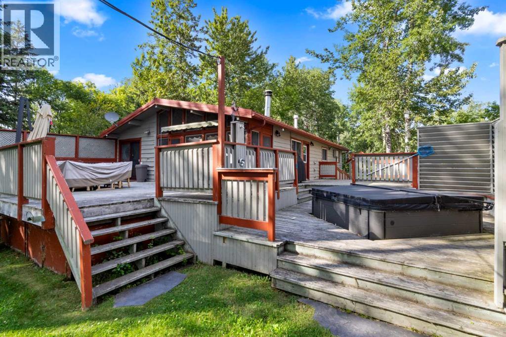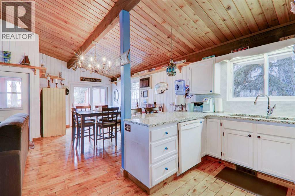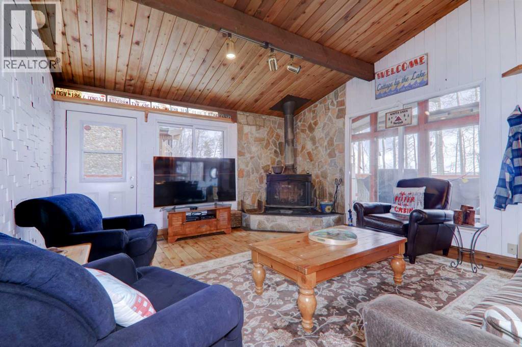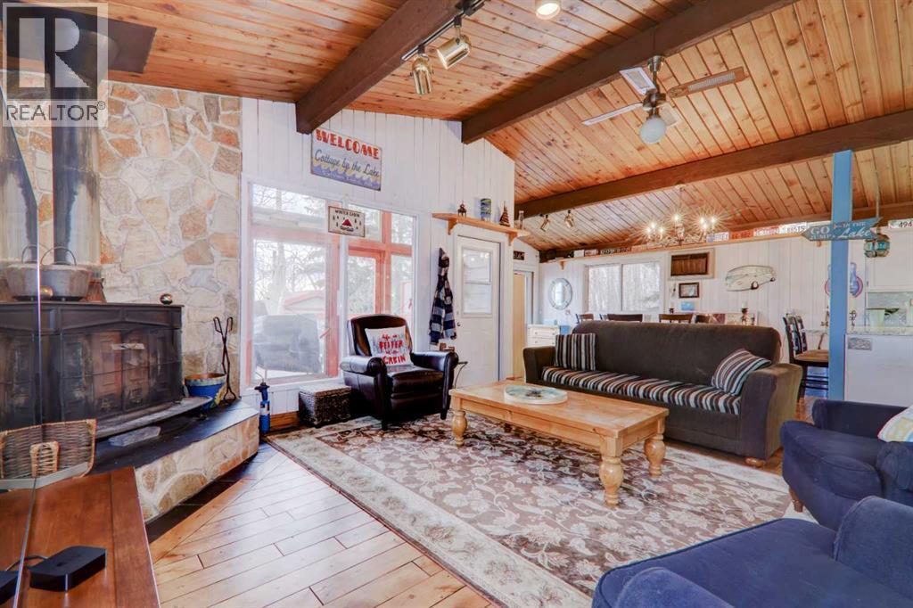**$100,000 Price Reduction**Nestled in the picturesque summer village of Sunbreaker Cove on Sylvan Lake, this character-filled lakefront bungalow offers the ultimate retreat for nature lovers and outdoor enthusiasts. Situated on a spacious 9,835 sq. ft. mature, treed lot with 60 feet of pristine south facing lake frontage, this property is a rare gem that promises year-round enjoyment. Step inside the 1,328 sq. ft. cozy cabin, designed for making lifelong memories. Featuring 4 bedrooms and 1.5 bathrooms, the home has been tastefully updated to enhance comfort and convenience. The main bathroom boasts a granite countertop, heated floors, and a luxurious steam shower, while the bedrooms have been upgraded with new windows allowing for ample natural light. The hardwood flooring, renovated kitchen, spacious dining area, and inviting family room—complete with a cast iron wood-burning fireplace—create the perfect setting for relaxation. Outside, the large deck, hot tub, and fire pit provide the ideal space for entertaining and unwinding beneath the stars. The property offers access to an excellent resident managed boat dock, a quiet beach, and low shoreline water levels, making it a safe and fun environment for kids. It is also a short walk from the sandy public beach and a county-maintained boat launch. Sunbreaker Cove is a four-season playground, offering swimming, boating, fishing, and water sports in the summer, as well as ice fishing, skating, and sledding in the winter. Conveniently located just 15 minutes from Sylvan Lake and Bentley, and only 1.5 hours from both Calgary and Edmonton, this sought-after lakefront escape won't last long. Don't miss this rare opportunity—schedule your private showing today! (id:51913)