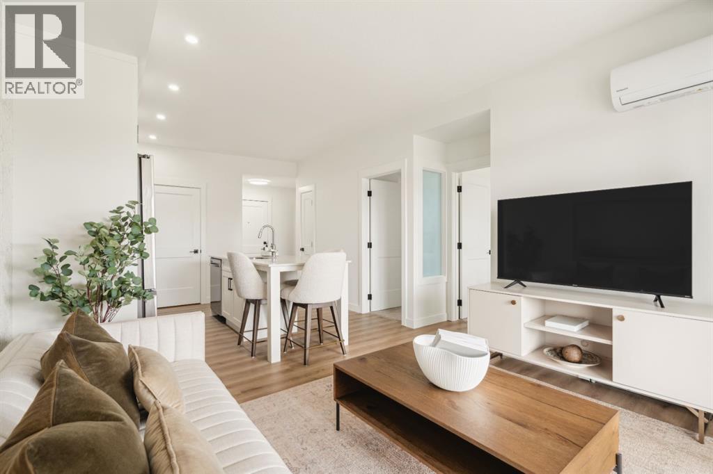Welcome to Unit 119 in Building 2 of Altitude at Three Sisters—featuring the well-appointed Richler floorplan designed for a comfortable and contemporary mountain lifestyle. This home includes a large covered patio, in-floor heating, durable LVP flooring, and tile in the bathrooms. High-end finishes such as 41" upper cabinetry with full-height risers, undermount bathroom sinks, and a Samsung appliance package with a built-in hood fan and front-control range create a refined and functional interior. The property includes one underground parking stall, and the $470/month condo fee ensures ease of living with coverage for heat, water, sewer, snow removal, reserve fund contributions, and access to the on-site community spa and hot tub. Built by award-winning Logel Homes who have a decades long pedigree of successful developments in Canmore and located in Three Sisters, next to the upcoming Gateway community hub with shops and grocery options, Altitude offers effortless access to the best of Canmore. Anticipated possession early 2027. Stop by the sales centre and show suite (closed Wednesdays) to discover the lifestyle that awaits you at Altitude. Residential properties - no short term rentals. (id:51913)
