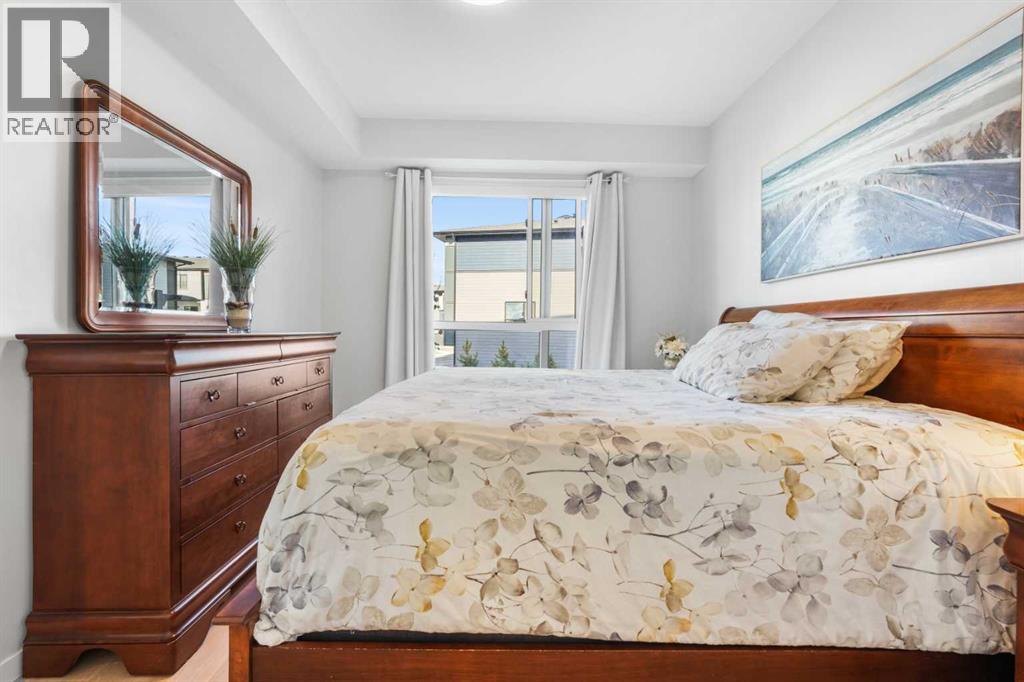 Discover refined living at this bright and beautifully maintained NW corner unit in Riverstone Manor offering over 1,040 sq ft of intelligently designed living space and one of the most private positions in the entire building. With only one shared wall and expansive windows wrapping the corner, natural light pours in throughout the day, creating an airy, refined atmosphere that feels more like a bungalow than a condo.Featuring 2 generous bedrooms, 2 full bathrooms, and a full sized laundry room, the layout is exceptionally functional, with thoughtful separation between the bedrooms for optimal privacy.The inviting foyer opens into a spacious open concept great room anchored by walls of windows. The living and dining areas offer flexibility for entertaining, quiet evenings, or a dedicated work from home setup. The kitchen integrates seamlessly and showcases full height cabinetry, quartz countertops, stainless steel appliances, and a large island designed for gathering.Step outside through double patio doors to a rare 20 x 7 west facing balcony. With no direct neighbours beside you, this is one of the most private outdoor spaces in the complex. Enjoy uninterrupted sky, peaceful evenings, and golden sunsets as an extension of your living space. Inside, luxury vinyl plank flooring runs throughout, with no carpet. The primary suite features a walk through closet and a well appointed 4 piece ensuite with dual sinks and a walk in shower. The second bedroom sits on the opposite side of the unit, ideal for guests, a home office, or additional flex space, and is positioned next to a full 4 piece bathroom. A large dedicated laundry room adds rare in suite storage and everyday practicality. Additional highlights include 9 foot ceilings, ductless air conditioning, heated titled underground parking, and Alberta New Home Warranty still in place, offering confidence and peace of mind. The true differentiator is the setting. Located steps from the Bow River, extensive pathway systems, and the natural beauty of Fish Creek Park, Riverstone offers a lifestyle that feels removed from the city, yet remains minutes to Seton’s shopping, dining, and South Health Campus. This is not simply condo living, it is low maintenance living in one of Calgary’s most serene and tightly held communities, where outdoor access, privacy, and smart design come together. At this size and location within Riverstone, opportunities at this price point are increasingly rare. (id:51913)
