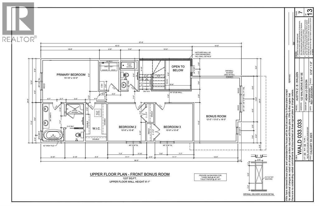 A Daytona Homes classic on a rare pie shaped lotThis is the kind of family home Daytona is known for. Smart flow. Clean lines. Bright, livable spaces. Set on a quiet bay with a generous pie shaped yard, 122 Walgrove Bay offers over 2200 sq ft of thoughtfully planned living that feels upscale and easy all at once.Step inside to an open main level with a welcoming great room anchored by a sleek electric fireplace and a media ready feature wall. The kitchen brings a large working island, plenty of storage, and built in wall oven and microwave, all opening to a sunny dining area that looks out to the backyard. A front flex room gives you options for an office, study space, playroom, or guest zone. There is also a convenient main floor bath and a practical mud room off the garage to keep everyday life organized.Upstairs, a spacious bonus room sets the tone for movie nights and hangouts. The private primary retreat features a walk in closet and a calm ensuite with a separate shower and a freestanding soaking tub. Two additional bedrooms share a full bathroom, and the laundry is right where you want it for quick loads and less hauling.Outside, the pie shaped lot means extra elbow room for a future deck or patio, a play space, or garden beds. The double attached garage completes the package.Daytona Homes pairs design forward floor plans with polished finishes, energy smart construction, and attentive after care. Expect practical upgrades where they matter, a home that lives bigger than the numbers suggest, and the confidence that comes with a quality builder and new home warranty.Why Walden?Tree lined streets, parks and pathways, everyday essentials close by, and quick access to major routes. Walden delivers a calm, connected lifestyle in Calgary’s southeast. (id:51913)