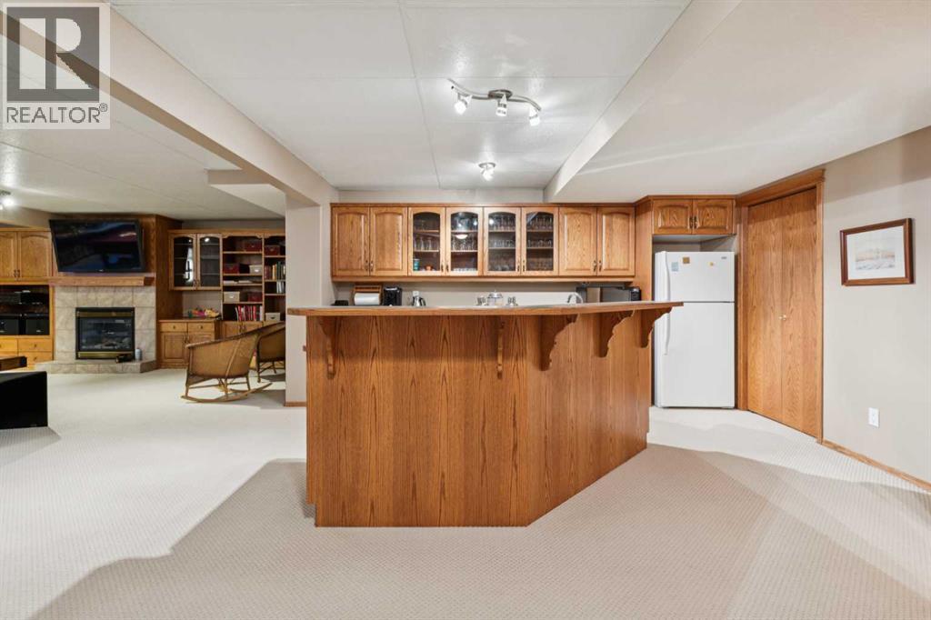 Welcome to 123 Whispering Way, an exceptional luxury villa that blends elegant design with the ease of low-maintenance living. Thoughtfully crafted and impeccably maintained, this sprawling home offers nearly 2,000 sq.ft. on the main level plus a beautifully developed lower level—perfect for those who want the convenience of condo living without sacrificing space, comfort, or style. Step through the grand front foyer and instantly feel the openness created by vaulted ceilings, a spacious front hall with closet, and an inviting flow into the formal dining area. The heart of the home is the impressive kitchen, featuring a raised eating bar, corner pantry, abundant shaker cabinetry, and newer stainless-steel dishwasher and stove—ideal for entertaining or daily enjoyment. Adjacent to the kitchen, the cozy breakfast nook overlooks the beautifully landscaped backyard and shares a charming double-sided gas fireplace with the formal living room. Enjoy serene views with no neighbours behind, mature trees, shrubs, and a newly refinished deck—enjoy your private outdoor retreat. The main-floor primary suite is a true sanctuary, offering a 5-piece spa-inspired ensuite, complete with deep soaking tub, dual vanities, fully enclosed shower with built-in seat, and a generous walk-in closet with custom built-ins. A dedicated office/den, convenient main-floor laundry, and a 2-piece powder room off the garage entry complete this level. The oversized heated garage is a dream—finished, equipped with a natural-gas heater, and includes a fridge, freezer, that stay with the home. Downstairs, a dramatic curved staircase leads to a spectacular lower level featuring a second gas fireplace with elegant tile surround, a massive open family and games area, and a well-appointed wet bar with fridge and pantry. Perfect for hosting large gatherings or creating the ultimate entertainment zone. This level also hosts two additional bedrooms—one with its own 3-piece ensuite and large closet—plus anoth er 2-piece bathroom and abundant under-stair storage. Additional features include Air conditioning, In-floor heating (basement), Updated fixtures, Beautiful landscaping & private yard, Free RV parking, Social room access for all owners This is elevated living at its best—where refined finishes, everyday comfort, and effortless convenience blend seamlessly in a serene, park-like environment. Opportunities in this sought-after complex are rare. Schedule your private showing today and discover the exceptional lifestyle awaiting you at 123 Whispering Way. (id:51913)