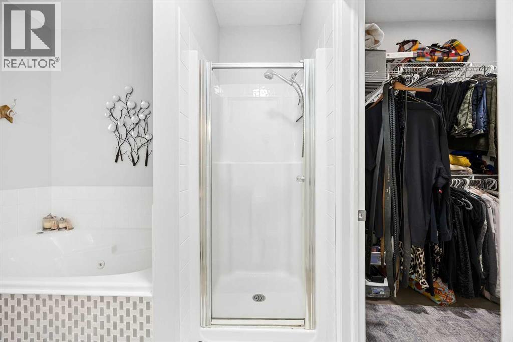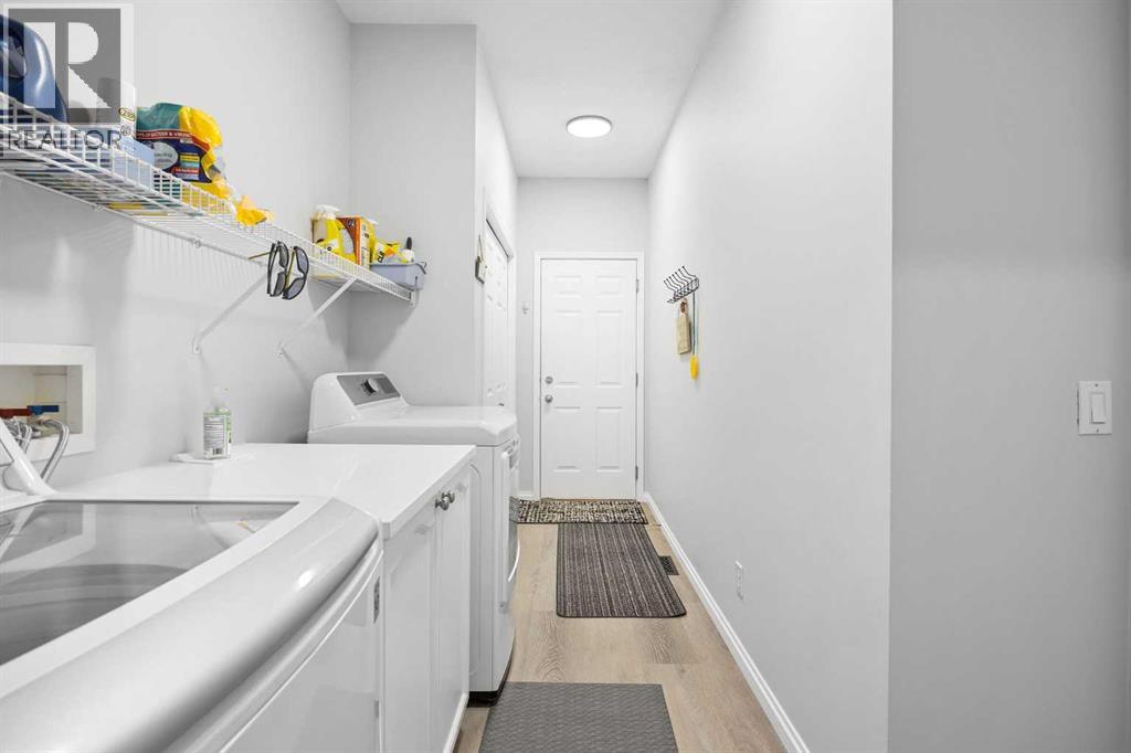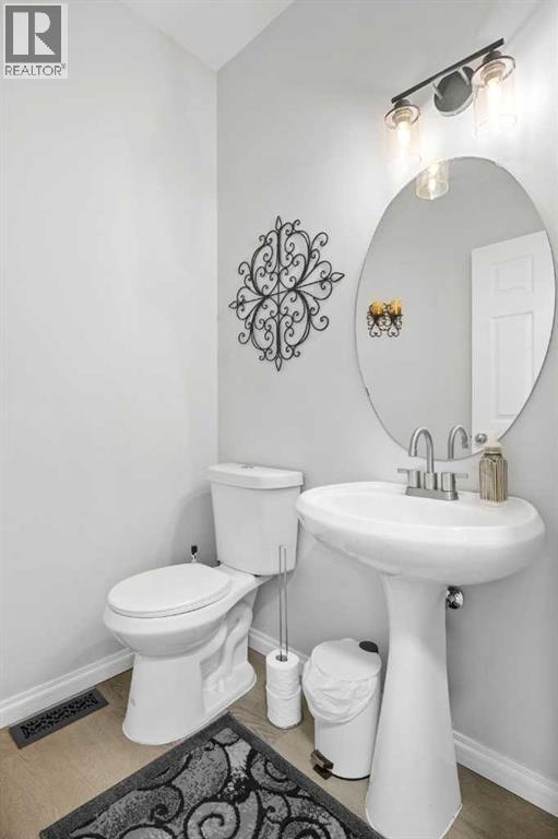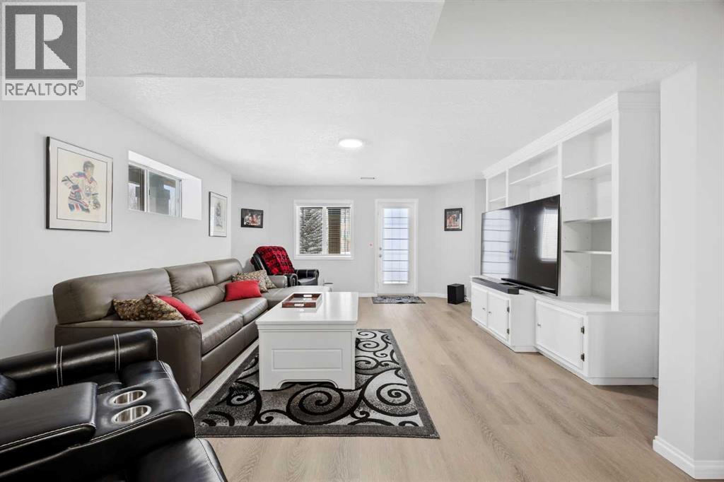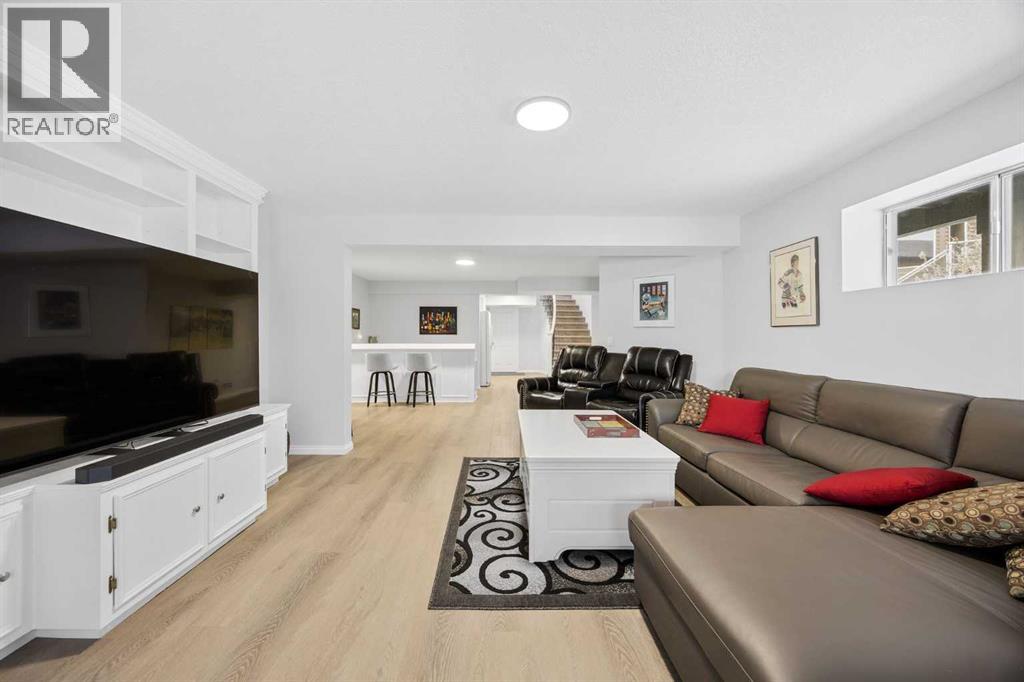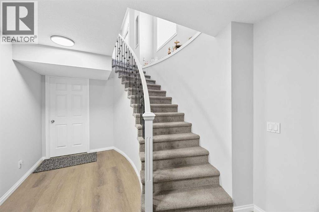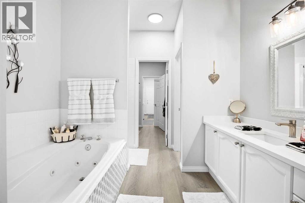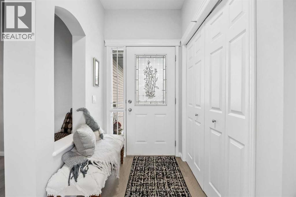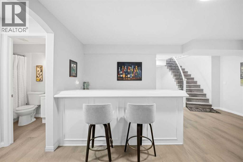 Welcome to this stunning Attached Walkout Bungalow, beautifully designed and professionally renovated 2 bedroom, 2 1/2 bath home. Nestled in a quiet cul-de-sac in the heart of Chestermere with "No Condo or HOA Fees". Boasting over 2300 square feet of sophisticated living on both levels, this air conditioned home has been thoughtfully updated from floor to ceiling. Enjoy all new KitchenAid stainless steel appliances, sleek quartz kitchen countertops, upgraded flooring, new bathroom fixtures, new light fixtures, popcorn ceiling removed, cabinets, railings and walls all painted. The bright open floor concept, includes 9' ceilings, vaulted living room ceiling with a gas fireplace, architectural archways to accent the main level. The spacious kitchen features a large skylight, island with breakfast bar and casual dining area for every day use, with access to an incredible upper west facing outdoor deck. The main floor includes a large formal dining room adjacent to the kitchen ideal for family and friends gatherings. The large primary bedroom includes a spa-like 4 piece ensuite with a jetted tub and walk-in closet. The laundry room (new high end washer/dryer) is conveniently located on the main level complete with a large mudroom with plenty of storage. The elegant grand curved stair case with spindle railings leads you to the beautiful developed basement. The lower walk out boasts a large second bedroom, full bath, large rec room with entertainment built-ins and a bar area, perfect for entertaining! It also includes a storage room that is ideal for any hobbyist or future development. From here step out to your beautiful lower patio into your large pie shaped back yard backing onto a stunning walkway and pond. Avoid those high condo fees, there is an OPTIONAL maintenance fee for $134/month that includes lawncare, shoveling and seasonal irrigation maintenance. Allowing you to enjoy all of the amenities that the City of Chestermere offers, lake activities, golf, shopping, restaurants, recreation. Pride of ownership shown throughout this quality built Shane Home. This beautiful property is a rare find and is located only 20-25 minutes from downtown Calgary, Call to view! (id:51913)