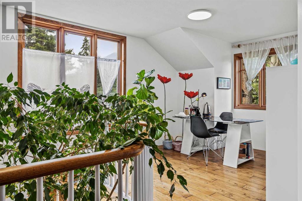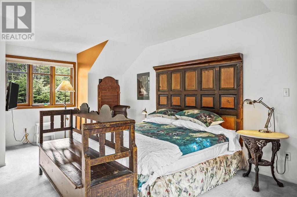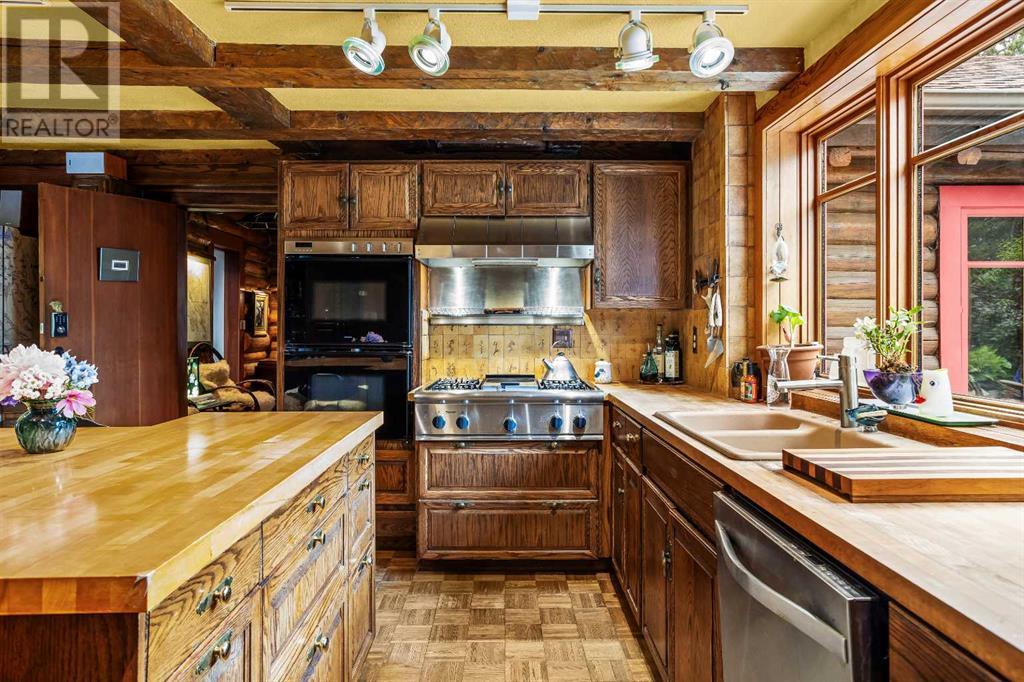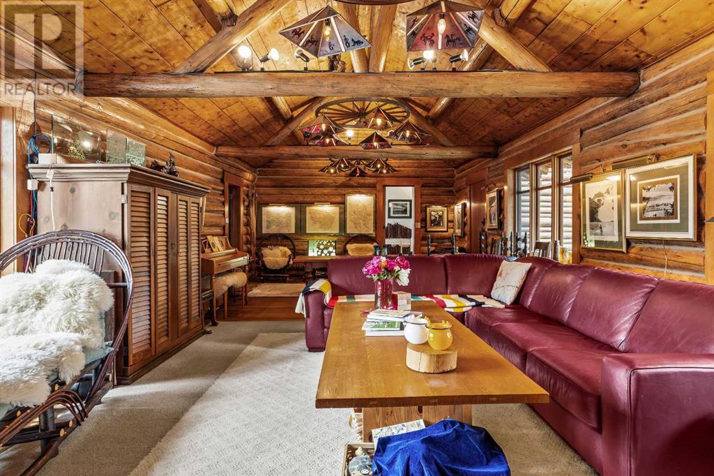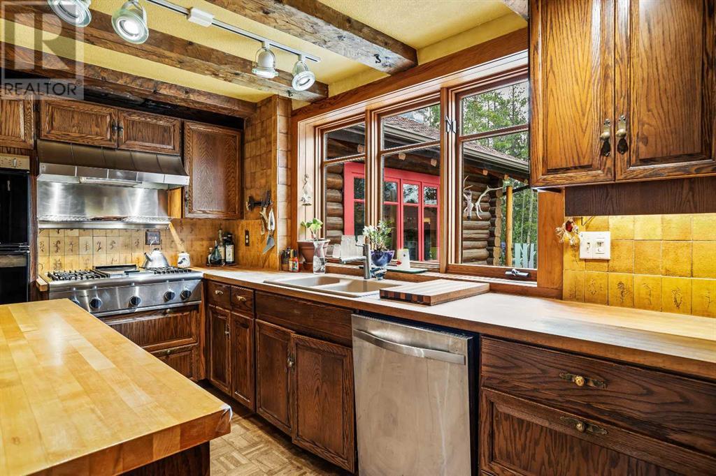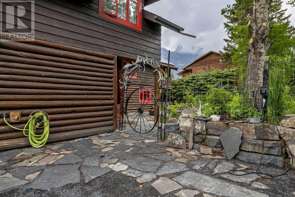 Fabulous possibilities in this Banff propertyWelcome to Banff, where this classic residence epitomizes Banff's finest district, Kootenay Ave. This unique modernized log home is secluded in the heart of Banff, where privacy and comfort are the norm. It offers extraordinary mountain views and the unparalleled lifestyle of living in beautiful Banff. The rear exterior boasts a 300-square-foot cedar deck with a hand-carved glass panel depicting local flora and fauna on a dimmer switch. This deck overlooks Mt Rundle, currently a B&B, with the possibility of developing this property into three lots.Layout: Main Level Entry with two wings.Lot: Features a Parklike Setting, Private, over 21,600 sq ft. Heating: Natural gasFlooring: Hardwood, carpet, linoleum. Roof: asphalt with solar panels. Parking: Room for five carsExterior: Feature fencing, Garden, Decks and BarnInterior: Rustic Living Room/ Dining Room & Island Kitchen with a Gas Range, two Island KitchenLaundry: Main floor Fireplace: Description Wood Burning Amazing possibilities and Pride of Ownership. (id:51913)