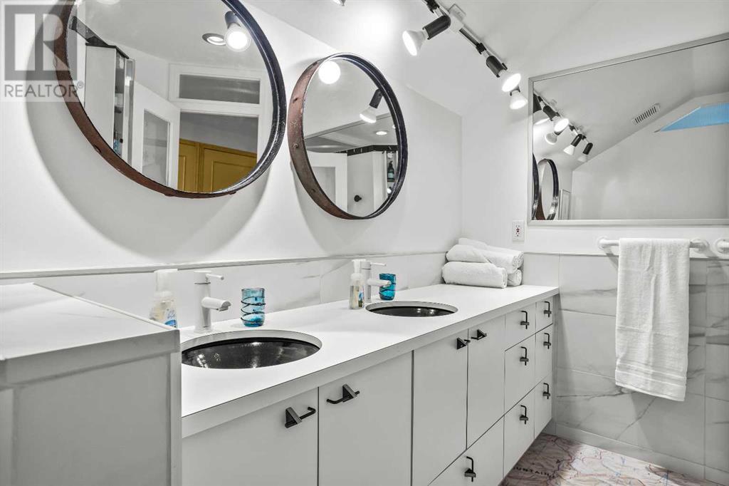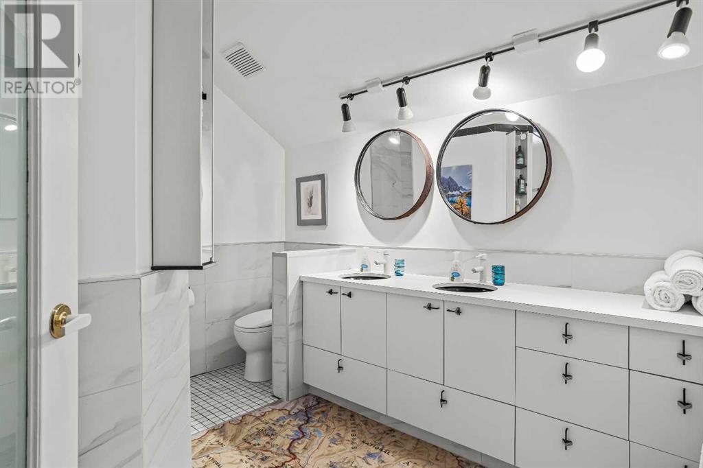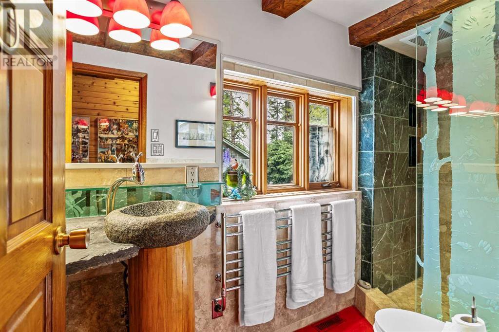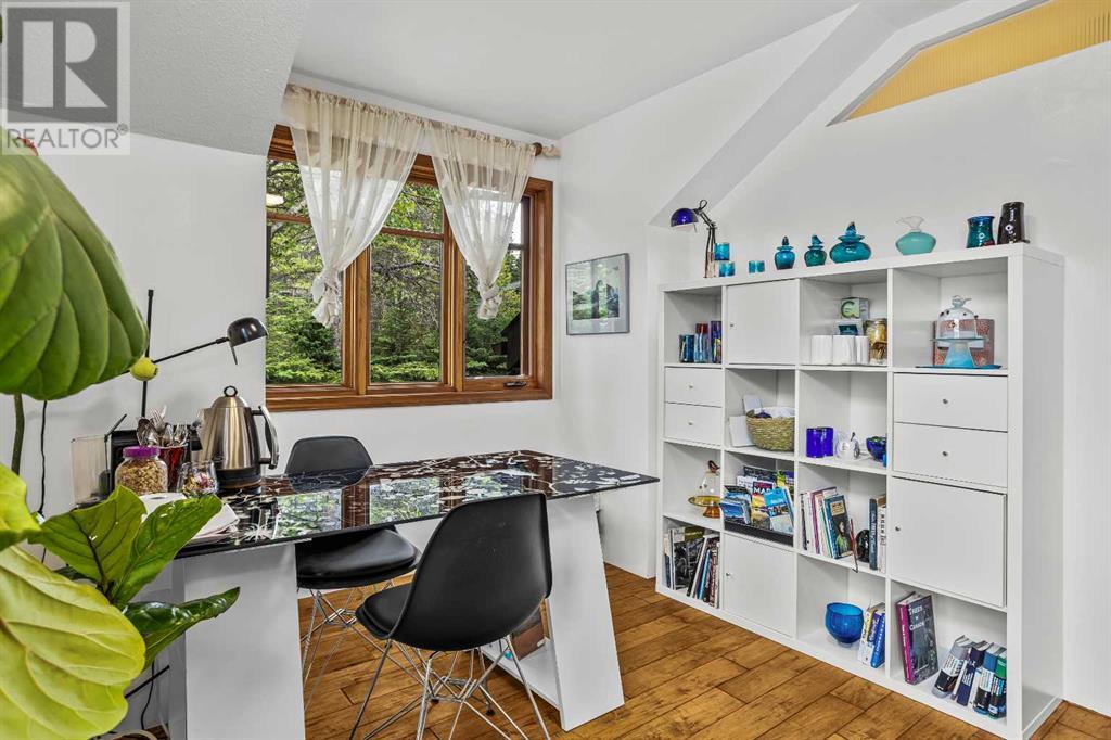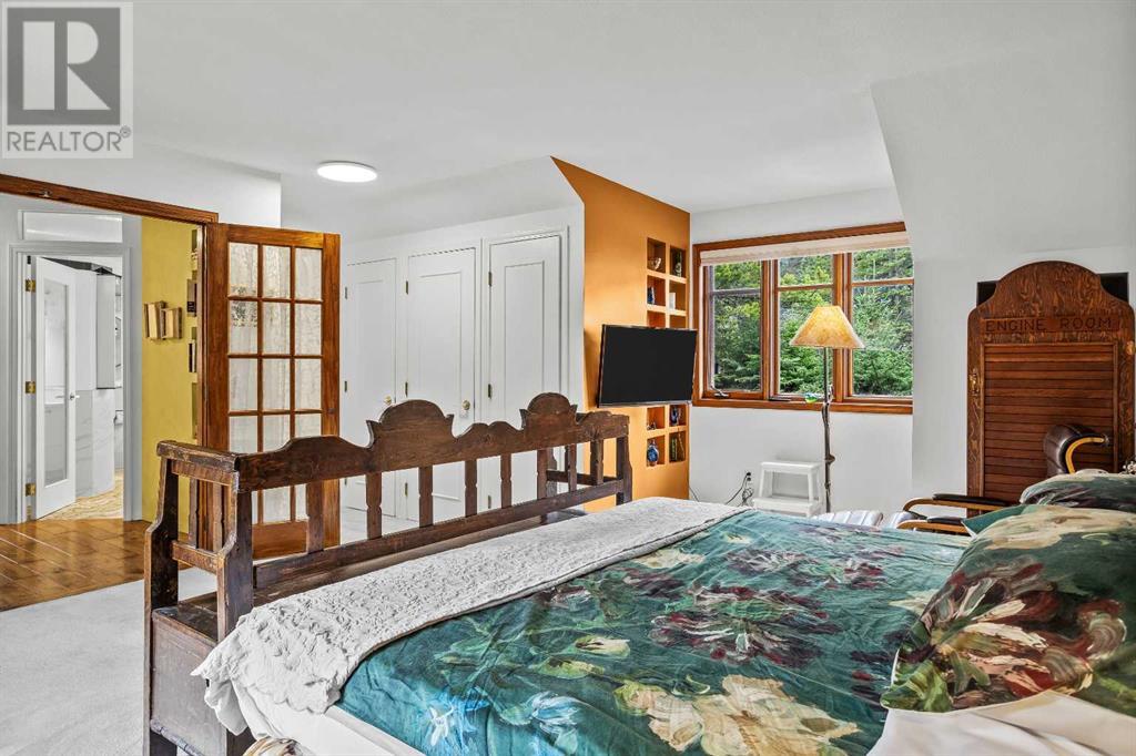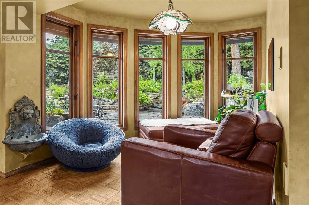 Fabulous possibilities in this Banff propertyWelcome to Banff, where this classic residence epitomizes Banff's finest district, Kootenay Ave. This unique modernized log home is secluded in the heart of Banff, where privacy and comfort are the norm. It offers extraordinary mountain views and the unparalleled lifestyle of living in beautiful Banff. The rear exterior boasts a 300-square-foot cedar deck with a hand-carved glass panel depicting local flora and fauna on a dimmer switch. This deck overlooks Mt Rundle, currently a B&B, with the possibility of developing this property into three lots.Layout: Main Level Entry with two wings.Lot: Features a Parklike Setting, Private, over 21,600 sq ft. Heating: Natural gasFlooring: Hardwood, carpet, linoleum. Roof: asphalt with solar panels. Parking: Room for five carsExterior: Feature fencing, Garden, Decks and BarnInterior: Rustic Living Room/ Dining Room & Island Kitchen with a Gas Range, two Island KitchenLaundry: Main floor Fireplace: Description Wood Burning Amazing possibilities and Pride of Ownership. (id:51913)