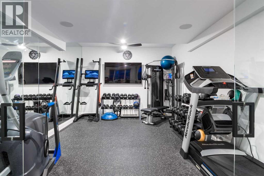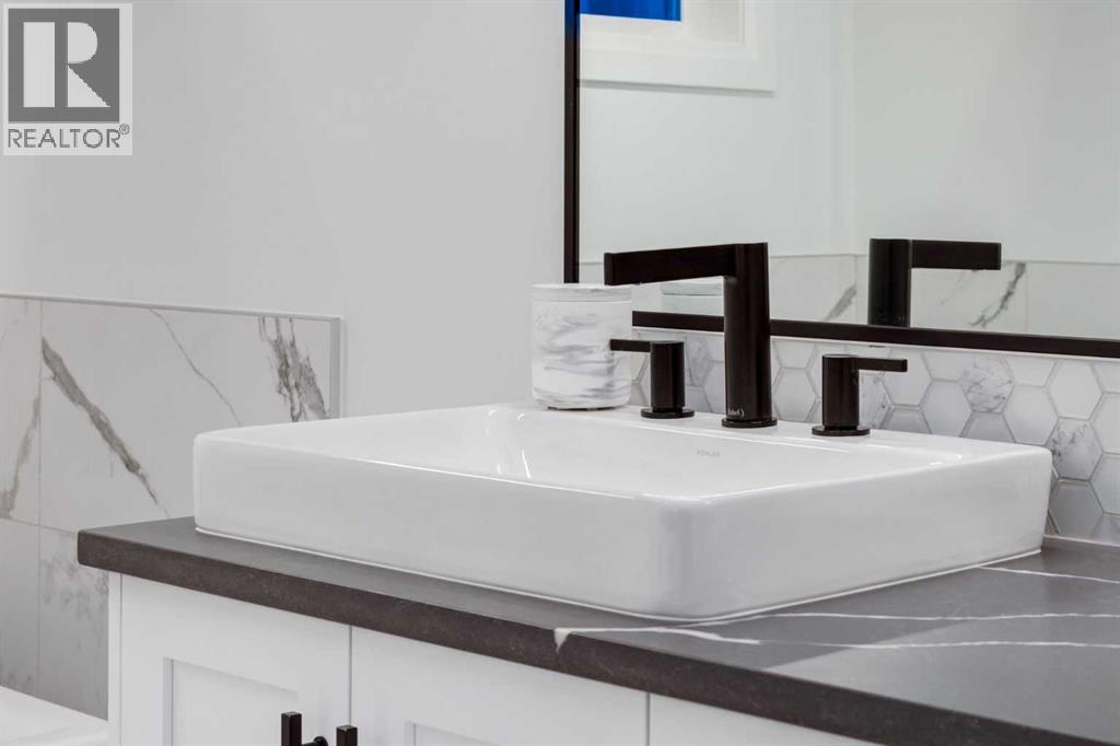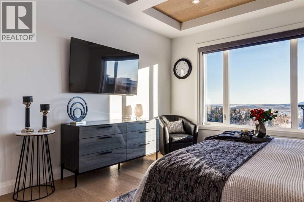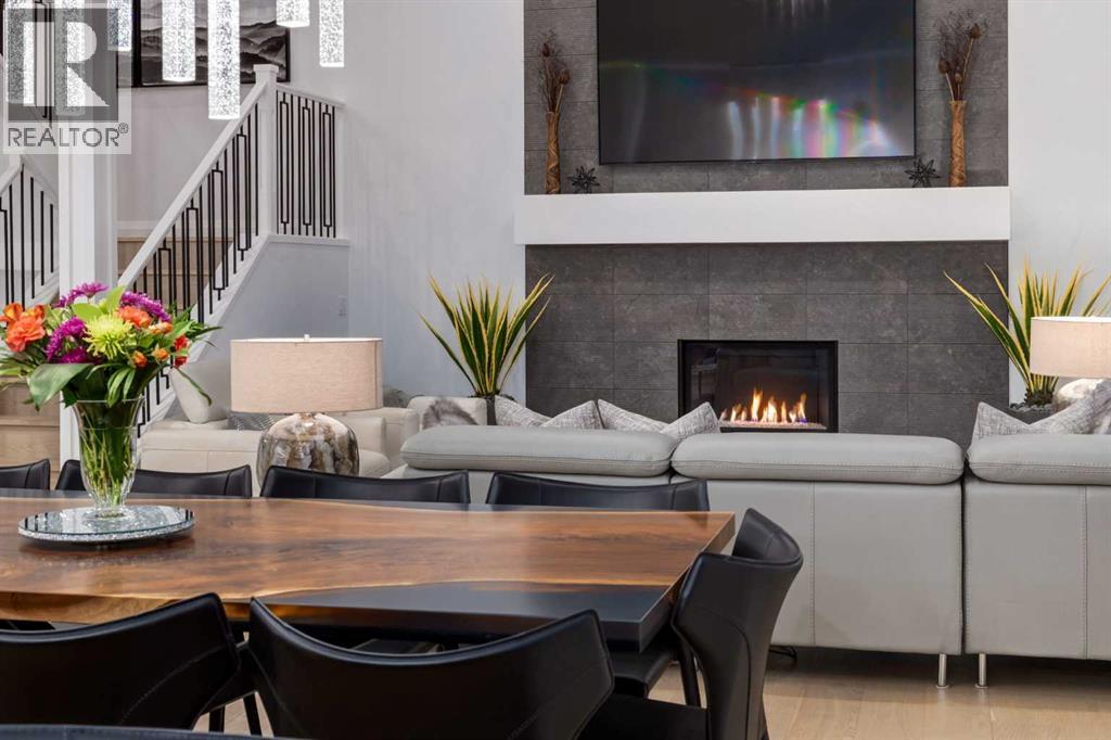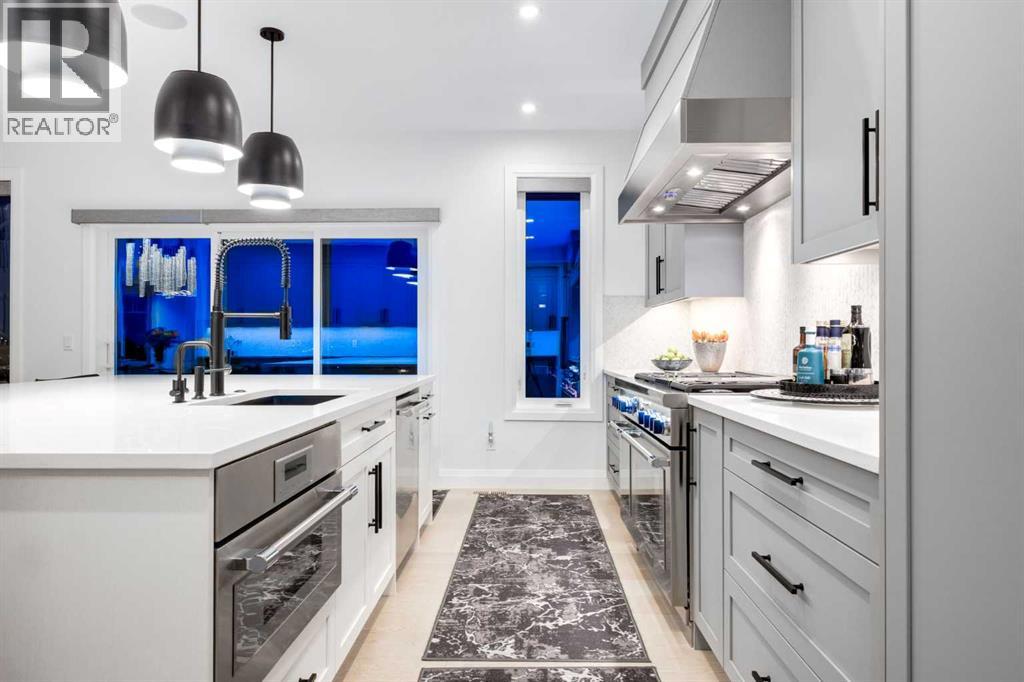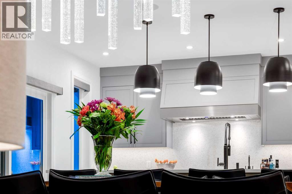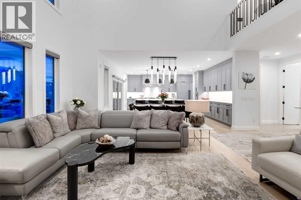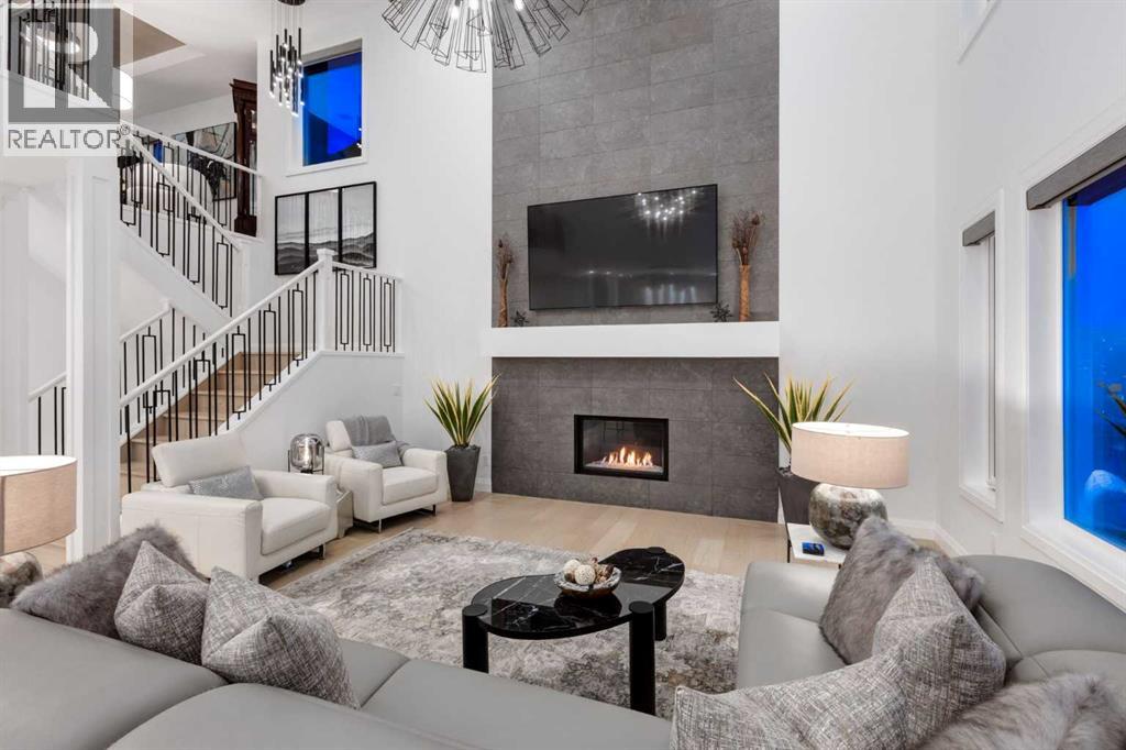 Realtor Preview Luncheon Today From 11:30AM to 1:30PM. Located in the heart of Springbank Hill, this beautifully appointed home backs onto a picturesque ravine and boasts views of the rolling hills and city to the South. Designed for low-maintenance living, this home features Hardie Board siding, aluminum composite fencing, an artificial turf lawn with a backyard putting green and artificial shrubs, ideal for snowbirds or busy families. Every inch of the nearly 4,500SF of living space was meticulously designed and decorated with intention, creating a true sanctuary that feels like a work of art. Soaring ceilings, white oak engineered hardwood floors, hardwood coffered ceiling details and the most spectacular designer lighting are only a few features that make this home so spectacular. The ‘chef’s kitchen’ features top-of-the-line Thermadore appliances including a multi-function built-in coffee and espresso machine and a dual zone beverage cooler. Custom features such as internal cabinet drawers, spice pullouts and a fabulous walk-through butler’s pantry leave nothing to be desired. A vaulted ceiling in the great room boasts a stunning floor-to-ceiling fireplace and a ‘showpiece’ staircase and masterfully displays the amazing Southerly view. A spacious dining area, a private home office and a mudroom outfitted with lots of custom storage combine beautiful design with perfect functionality. The upper level features a bright and open bonus room, two additional bedrooms, each with a walk-in closet and an ensuite bathroom and a spa-like primary suite with his-and-hers closets, one of which is connected to the incredible laundry room. The fully finished lower level boasts a fourth bedroom and bathroom, a ‘professional’ home gym, a games room and a media room with a fireplace and a wet bar. The heated triple attached garage, outfitted with epoxy flooring, custom storage, a work bench and cabinets, is every hobbyist’s dream. A six-person hot tub sits on an aggregate covere d rear patio, an upper balcony with glass railing overlooks the views, a twelve-burner plus griddle BBQ station and a plumbed in natural gas fire table are all located in places to relax outside and admire the breathtaking view. Heated floors in all the bathrooms, Hunter Douglas programmable motorized solar shades and a high-end Elan smart home system that encompasses everything from security to lights to music and televisions, set this home apart from any other. This home offers something special for every stage in life. (id:51913)