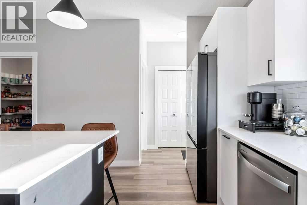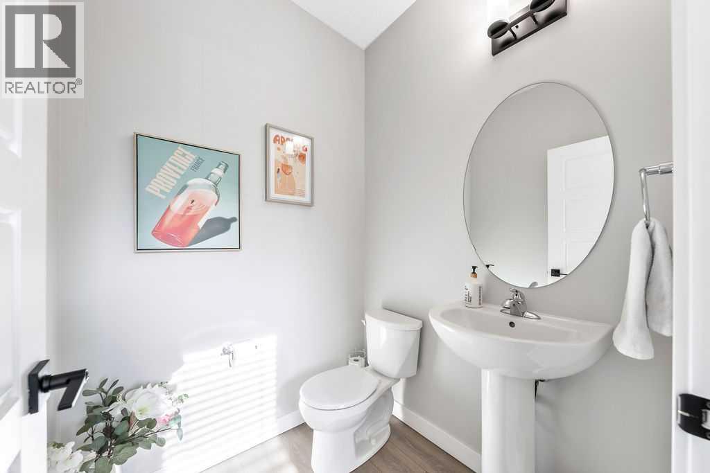 Welcome to this beautifully upgraded 3-bedroom, 2.5-bathroom home in the highly desirable Midtown community. Thoughtfully designed with both style and functionality in mind, this home offers a refined living experience and a prime location facing a scenic walking path and green space.Step inside to a bright, open-concept main floor featuring a spacious living room perfect for cozy nights or entertaining friends. The chef-inspired kitchen is a true showpiece with quartz countertops, slow-close cabinetry, a large central island, stainless steel appliances, upgraded sink and faucet, and a massive walk-in pantry. Natural light fills the space through the kitchen window, and LED lighting throughout adds a modern, polished touch. A convenient powder room completes the main floor.Upstairs, a versatile bonus room provides the perfect space for a home office, playroom, or media room. The primary suite is a private retreat with a walk-in closet and a luxurious 3-piece ensuite. Two additional bedrooms, a full 4-piece bathroom, and upper-level laundry with upgraded washer and dryer provide practicality and comfort for the whole family.The fully finished backyard is a true extension of the home, featuring a private deck, fencing with a gate, turf with a path to the garage, decorative side paths with stone accents, and a BBQ gas line—perfect for summer entertaining. The double detached garage offers convenience and includes custom shelving. The fully fenced front yard offers a large covered porch, ideal for enjoying your morning coffee or peaceful evenings overlooking the greenspace.Additional highlights include premium/upgraded carpet, Google smart home integration with built-in speakers, LED lighting throughout, and remaining new-home warranty coverage for added peace of mind. The basement is a blank canvas, wide open and ready for your creative vision. Currently used as a gym/flex space.Located just steps from Midtown’s walking trails, parks, ponds, schools, and urban amenities, this home combines thoughtful upgrades, modern design, and lifestyle convenience in one complete package. Move-in ready and waiting for you. Experience the best of Midtown living today! (id:51913)