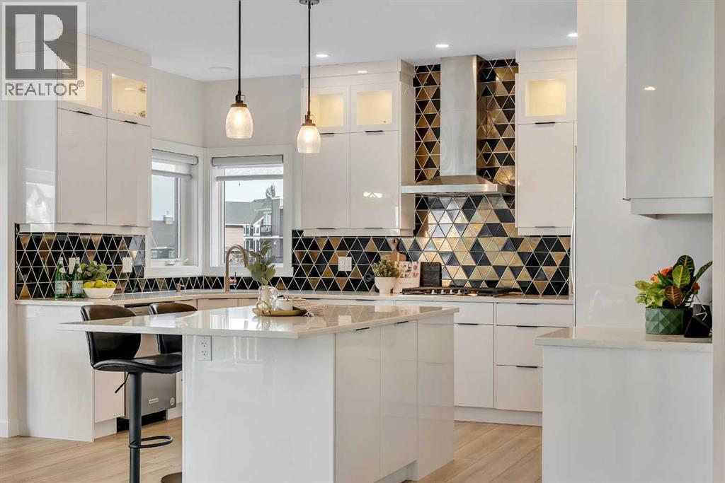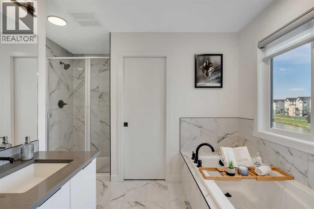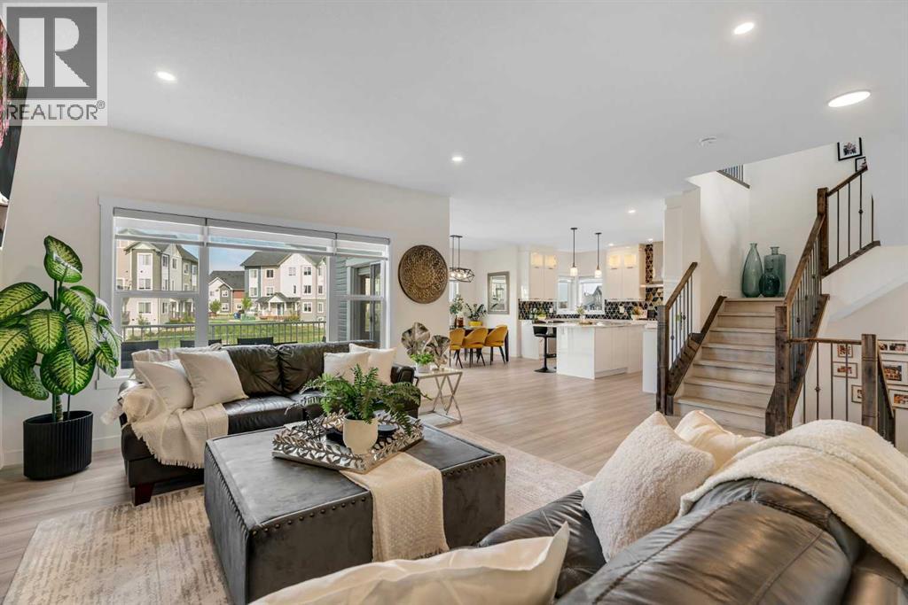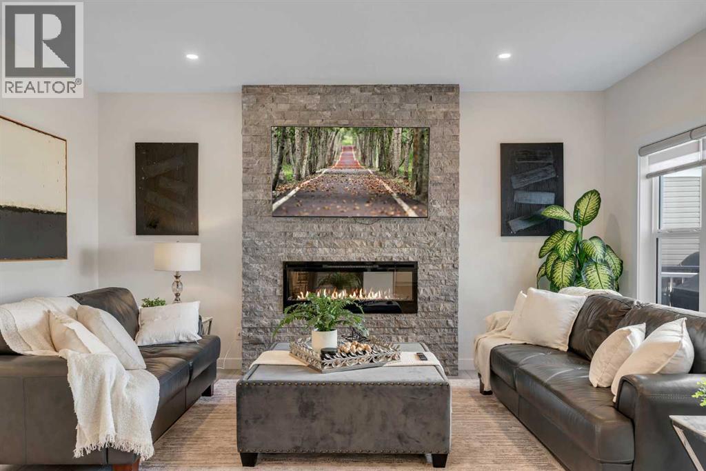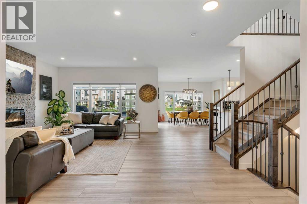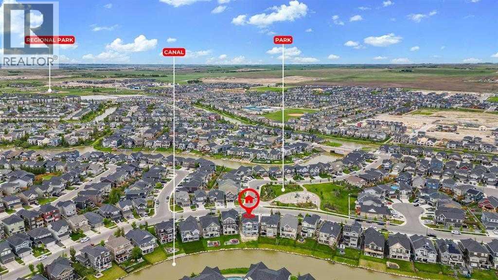Welcome to this exceptional 6-bedroom, 4-bathroom estate, ideally located on a premium 6,500 sq ft lot with direct access to the serene Bayside canal. Positioned within one of Airdrie's most sought-after neighborhoods, this home masterfully blends refined elegance, contemporary comfort, and luxury, offering an unparalleled lifestyle of sophistication and tranquility.As you approach, you’ll be drawn to the home’s exceptional curb appeal, complete with a triple car garage that balances prestige with practicality. Step inside, and you’ll be greeted by an expansive, open-concept floor plan filled with high-end finishes and thoughtful upgrades.The main level features a stunning living room with a stone-accented fireplace, creating a cozy ambiance for family gatherings. The spacious dining area offers unobstructed views of the canal, providing the perfect backdrop for elegant entertaining. The chef-inspired kitchen is a showstopper, outfitted with built-in premium appliances, a gas range with a hood fan, a large island, ample pantry storage, and a convenient garbage disposal. A main-level bedroom/office and a full 3-piece bathroom add to the home’s functionality, along with a mudroom for added convenience.Upstairs, you’ll find three generously sized bedrooms, two full bathrooms, and a spacious bonus room with views of the nearby playground—a perfect setting for family movie nights. The master suite is truly a retreat, featuring a large walk-in closet and a luxurious 5-piece ensuite with dual sinks, a deep soaker tub, a private water closet, and its own private balcony overlooking the serene canal.The fully finished walkout basement is an entertainer’s dream. With two additional bedrooms, a full bathroom, and a lavish wet bar, this expansive recreation room offers endless possibilities. Large windows allow for an abundance of natural light while providing uninterrupted views of the canal, creating a peaceful setting for both lively gatherings and quiet nights in. Outside, the private backyard oasis awaits, offering direct access to the canal. It’s the perfect spot for relaxing mornings, summer evenings, or year-round family fun.This rare gem offers not just a home, but an elevated lifestyle—a harmonious blend of luxury, tranquility, and natural beauty. Homes of this caliber in Bayside don’t last long—schedule your private showing today and make this dream home yours. (id:51913)
