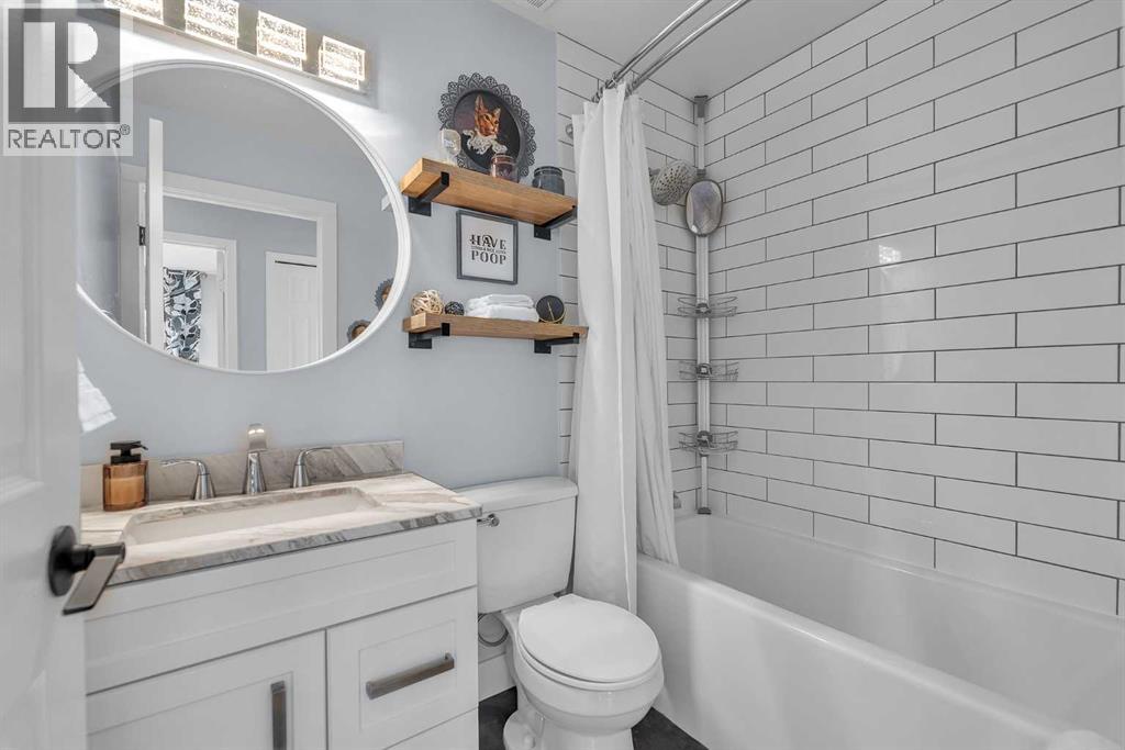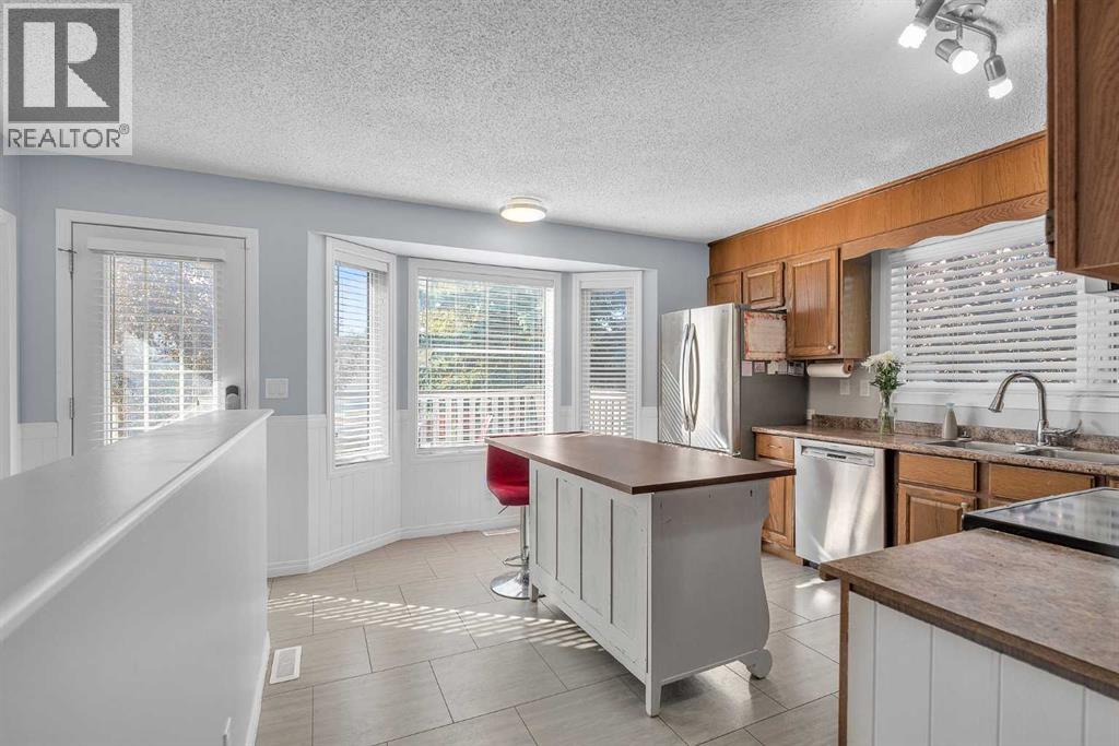 Welcome to this spacious and well-maintained bungalow located in the heart of Crossfield, close to schools, shopping, transportation, and recreational facilities. This home features a total of five bedrooms and three full bathrooms, offering plenty of space for a growing family. The main floor includes a generous living room, dining area, and a bright eat-in kitchen with a large window overlooking the sunny south-facing deck and backyard. The primary bedroom includes a private three-piece ensuite and convenient laundry chute, while two additional bedrooms and a four-piece main bathroom complete the main level. The partially finished basement, with roughed in plumbing for a wet bar, offers two more large bedrooms, (not egress windows), a recreation room with a charming stone-faced fireplace, a four-piece bathroom, and a laundry area, ready for your finishing touches. Outside, enjoy the exterior with a heated double attached garage, spacious deck, rear alley access, and a fully fenced backyard. Newer appliances, furnace replaced &and new A/C installed in 2020 along with a new Hot Water Tank this year. This is a wonderful opportunity to own a beautiful home in a friendly and welcoming community—book your private viewing today! (id:51913)