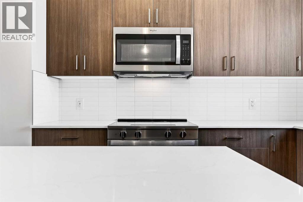 StreetSide proudly presents this highly desired interior-unit townhome that offers a sophisticated blend of expansive living space and elegant modern finishes. Designed with versatility in mind, the residence features four spacious bedrooms—including a convenient lower level bedroom ideal for guests or a home office—and two and a half well appointed bathrooms. The heart of the home is an open-concept main floor that flows seamlessly onto a private balcony, perfect for indoor-outdoor entertaining. Culinary enthusiasts will appreciate the chef-inspired kitchen, which comes standard with modern dark slab-style cabinetry, a full bank of storage drawers, polished white quartz countertops, and premium stainless steel appliances.The interior aesthetic is defined by contemporary durability, featuring luxury vinyl flooring throughout the primary areas and premium 8lb underlay carpet for added comfort on the stairs and upper level. Practicality meets luxury with a dedicated upper-level laundry room and an attached double car garage.Situated in the community of Rangeview, Calgary’s premier garden-to-table neighborhood, residents enjoy a unique village-like serenity paired with urban vibrancy. The development is centered around a lush courtyard garden and provides unparalleled connectivity to community greenhouses, pathways, and local markets. With immediate proximity to major transportation routes, schools, and parks, this home offers the perfect balance of comfort and convenience. (id:51913)