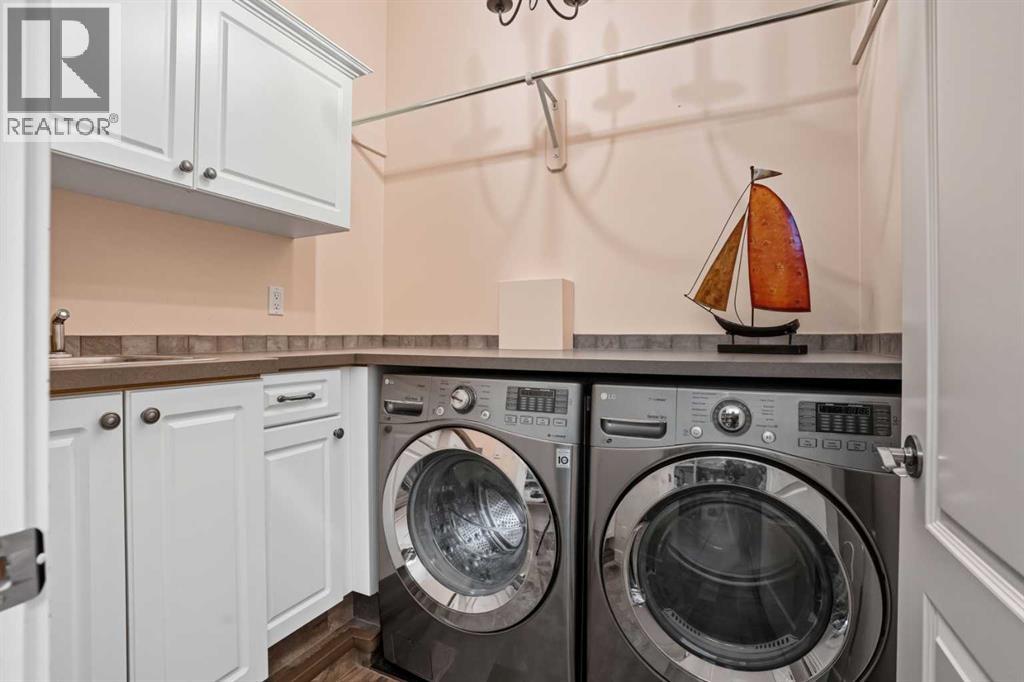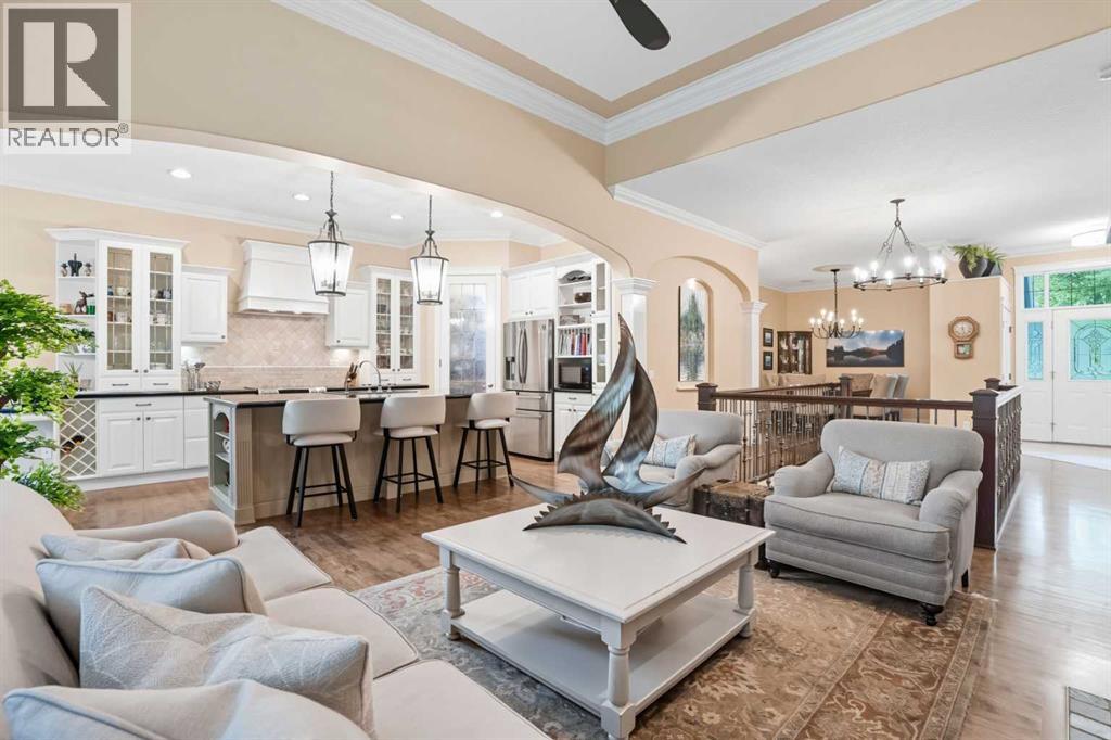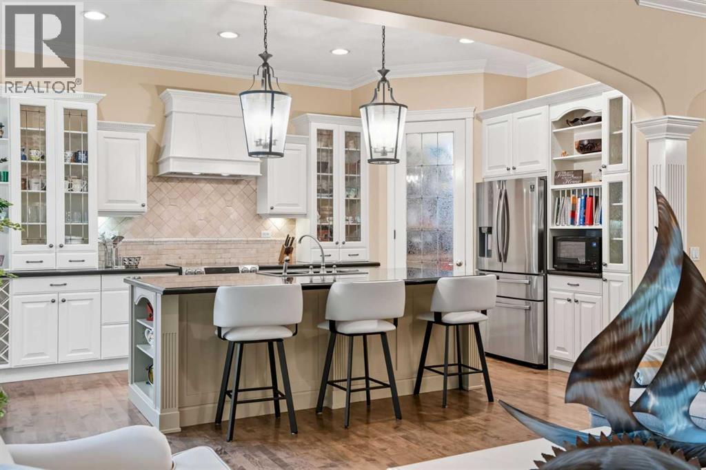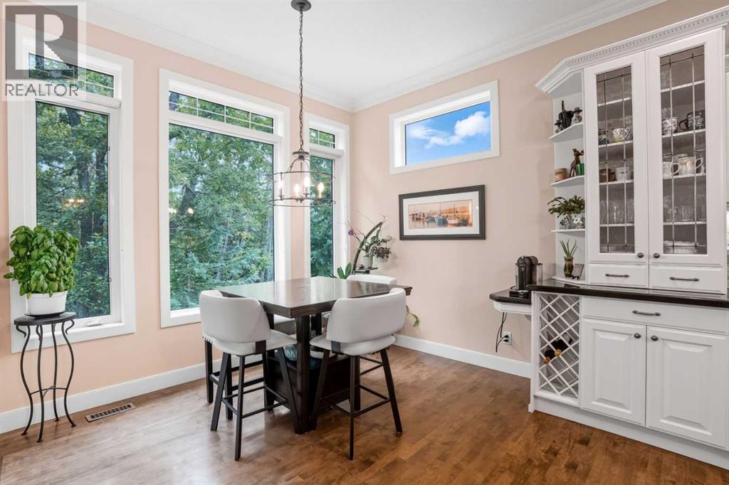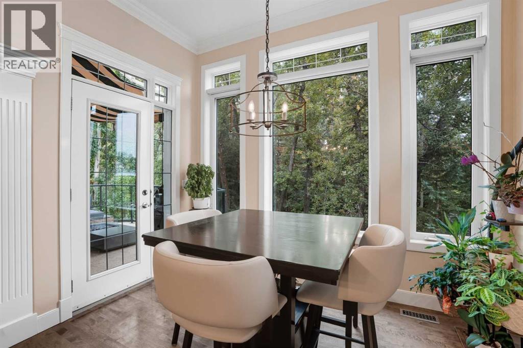 **Open House on Saturday, September 20, from 1-3 pm** Banff in the city… this is how life feels in Discovery Ridge. Tucked along the quiet beauty of Griffith Woods, this exquisite walkout bungalow is a rare find—timeless in its elegance, yet carefully updated with thoughtful, modern touches.From the moment you step inside, the home greets you with soaring ceilings, rich millwork, and warm hardwood that together create a sense of refined luxury. The living room, anchored by a beautiful fireplace, looks out through expansive windows to the forest beyond—a daily reminder that here, peace and privacy are yours. The gourmet kitchen is as inviting as it is functional, with a large island, granite counters, and a bright breakfast nook that catches the morning sun. Just beyond, a formal dining space welcomes gatherings, while a charming main floor office framed by bay windows offers an inspiring place to work. The primary suite completes the main level, its serene outlook onto the trees paired with a luxurious ensuite and custom walk-in closet, making it the perfect retreat.Downstairs, the walkout level extends the living experience with 9’ ceilings, cozy in-floor heat, and a sense of comfort that invites you to linger. A spacious family room flows naturally into a private theatre, with a massive entertainment space. For family or guests, a full second kitchen—complete with oven, dishwasher, refrigerator—offers self-contained convenience. Two generous bedrooms and a large exercise bonus room ensure plenty of space for everyone.This home is as practical as it is beautiful. A new high-grade Vacuflo system has just been added and the garage includes a custom platform for an extra fridge or freezer. Outside, the home is elevated by Gemstone lighting that sparkles year-round, casting a warm glow over evenings spent on the private deck or lower patio. The backyard feels like a retreat, with mature trees creating a natural screen. Through a discreet gate, your own private tr ail connects you directly to the endless pathways of Griffith Woods—a haven for biking, walking, and quiet reflection.Discovery Ridge is one of Calgary’s most treasured communities: secluded, peaceful, and embraced by nature, yet only minutes to the city’s best amenities. This is more than a home—it is a sanctuary, a gathering place, and a lifestyle, all in one. (id:51913)
