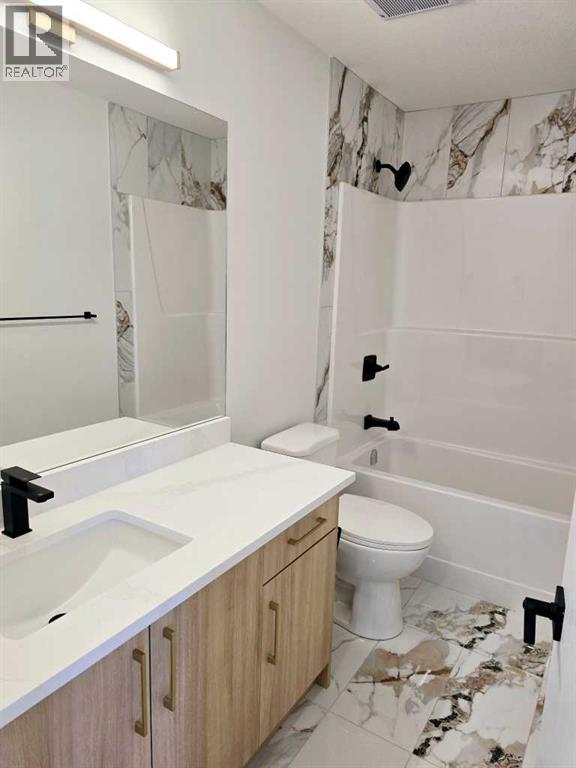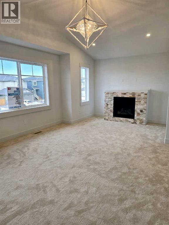 FALL PROMOTIONAL PRICE! Quick possession available! Open Spaces + Happy Faces in a Country Quiet Community. Spacious south backing lot (42' x 135') with a Brand new 2,460 sq.ft. two story with attached triple garage (28' x 23') and side access walk-up basement. Bright, open plan with spacious main level dining nook, kitchen with island and walk-through pantry (wood shelving) to spacious mud room (wood bench + lockers), family room with gas fireplace, private Work From Home Office, two piece bath and spacious front entry. Three bedrooms on the upper level including 13'7"' x 16'7" Primary suite with raised tray ceiling and large walk-in closet (wood shelving), 5 piece Ensuite, bonus room with vaulted ceiling and gas fireplace, laundry room with sink and cabinetry, and 4 piece main bath. Bright undeveloped side access basement has high efficiency mechanical, roughed-in bath plumbing, and large windows for lots of natural light. Very nicely appointed with ceiling height cabinets, quartz counter tops, upgraded lighting, vinyl plank, tile + carpet flooring, wood shelving in all closets, upgraded exterior and stonework. Includes GST (rebate to builder), new home warranty, rear deck with vinyl cover, front sod + tree, and $5,000 appliance allowance. Great family community with school, park and pond nearby, recreation facilities, and a quick commute to Airdrie, Balzac Mall, Calgary, or hospital nearby at Didsbury. A little drive, a lot of savings! (id:51913)