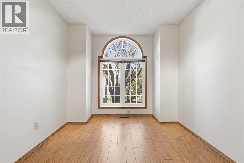 This rare and exquisite villa bungalow offers a truly special setting with breathtaking golf course views and a peaceful, private location just steps from scenic green pathways. The open-concept kitchen overlooks the fairway, featuring bright white cabinetry, a spacious bay-window nook, and beautiful oak hardwood floors that flow seamlessly into the elegant formal dining room and vaulted great room with a two-way fireplace—perfect for entertaining or quiet evenings in. Enjoy a large primary suite with soaring ceilings, a 4-piece spa-inspired ensuite complete with a walk-in soaker tub and separate shower, plus a main-floor den with another bay window offering abundant natural light. Outside, the expansive rear deck and lush manicured surroundings provide an oasis of calm with direct views of the Hamptons Golf Course. Located across from a beautiful park leading to tennis courts and a playground, this home belongs to an exclusive HOA community ($221/month) that includes professional landscaping and snow removal—even your driveway! Enjoy luxury, privacy, and convenience in this turn-key villa—not a condo, but a true carefree lifestyle! (id:51913)