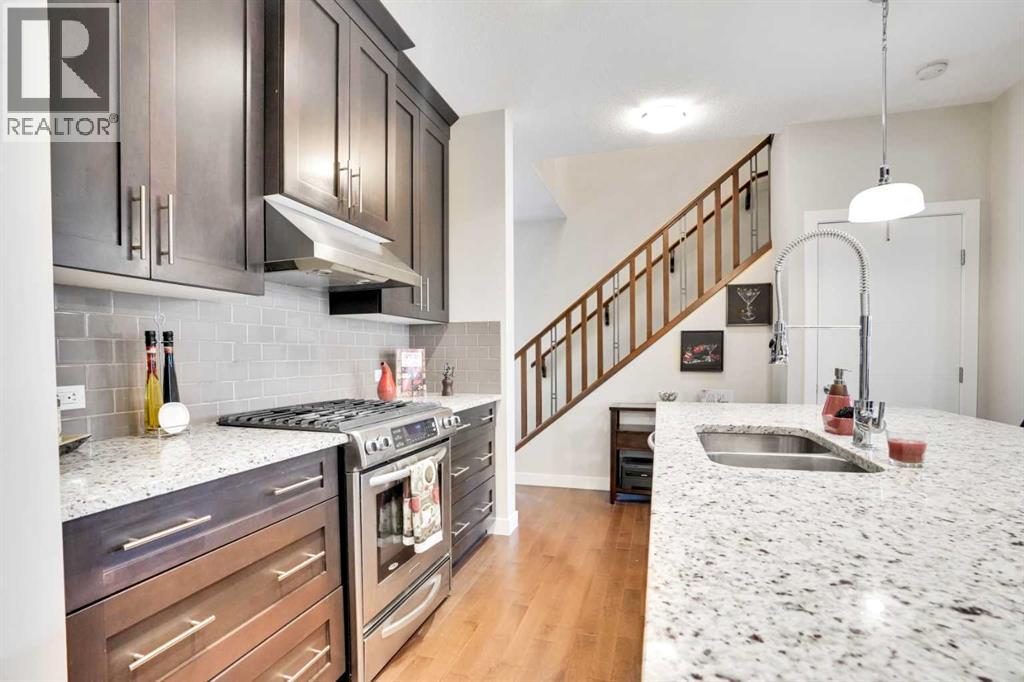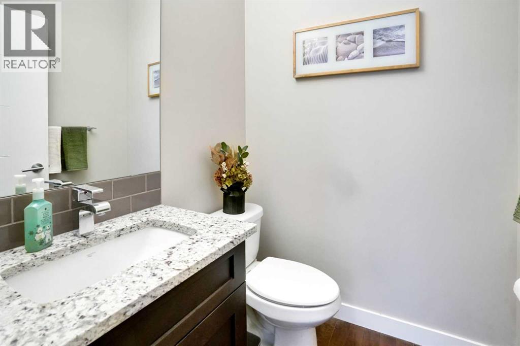 From the moment you enter, you’ll be impressed by the extra-wide staircase leading to the second floor, making move in a breeze; this thoughtful upgrade continues into the upstairs hallway, where the added space truly stands out. Beautiful wood accents and wrought iron spindles add a touch of elegance to this home. The heart of the home is the kitchen, designed for both style and function. An expansive centre island featuring double undermount sinks, dishwasher, and built-in microwave takes center stage, and is complemented by a convenient coffee or wine bar next to the fridge. Warm-toned, full-height shaker cabinets with soft-close system, light contrasting granite counters, and a stylish backsplash create the perfect balance. A premium stainless-steel appliance package includes a double-door fridge with double-drawer freezer, a gas range with electric oven (a favorite combo), a large hood fan and plenty of storage with a walk-in pantry.The main floor also offers a well-planned mud / laundry room with easy clean tile floors, and access to the oversized garage. Rich wood floors flow through the kitchen and living areas, where a cozy gas fireplace with ledgestone surround sets the tone. Large windows and patio doors fill the space with natural light and open out to a west facing backyard with an oversized deck with a gazebo, ideal for summer entertaining or a shaded retreat on hot days. Upstairs, the spacious primary suite is a true retreat. The five-piece ensuite includes a six-foot two-person tub with offset taps, large separate shower, dual undermount sinks, private commode, and beautiful tile floors, along with a generous walk-in closet. Two additional bedrooms, an incredible walk-in linen closet, main bath, and a bonus room with vaulted-ceiling and large windows round out the second floor. The basement is ready for your personal touch with a bathroom rough in, and the added bonus of laminate flooring included to help with the finish. Car enthusiasts will app reciate the oversized 21'x19' garage, with 11' ceilings, which could potentially accommodate a car lift. The exposed aggregate driveway provides durability as well as an attractive finish. The extra-wide street makes parking and maneuvering so much easier, and gives the neighborhood a spacious and welcoming feel. Situated next to the Estate homes, it only made sense to choose upgrades that blend in seamlessly. The result is a beautiful home that combines thoughtful design with everyday comfort and function. Come see for yourself, this could be your next home! (id:51913)