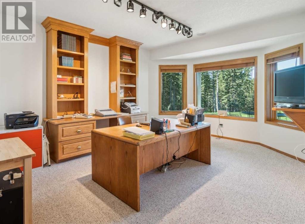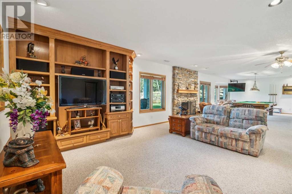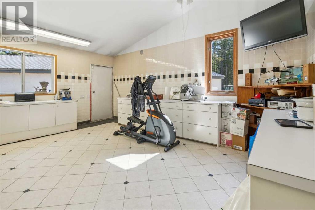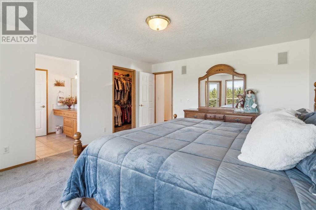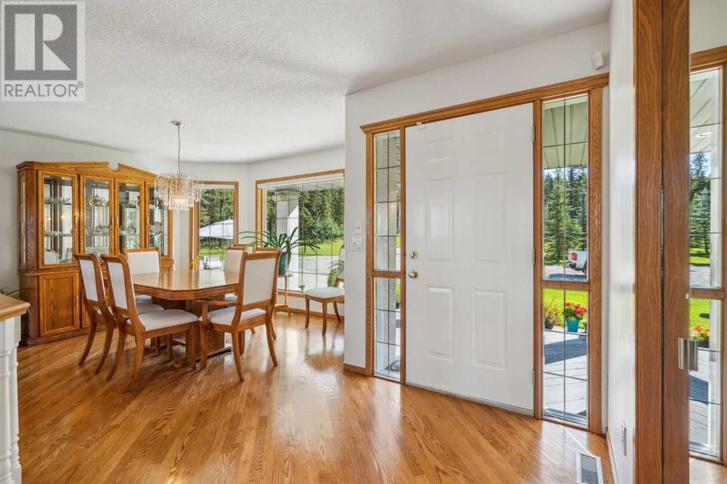 ** GORGEOUS VIEWS, GREAT SAUSAGE**Less than thirty minutes from Calgary lies a jewel of a home, a secluded acreage with stunning views, and some very unique outbuildings. This 23 acre estate has a main floor and lower-level walkout; both with sweeping vistas of the impressively landscaped backyard and mountains beyond. Upon arrival through the private cul-de-sac, the first thing you notice are the impeccably maintained lawns and groomed driveway. The front entrance opens to a bright foyer that leads either to a formal dining area, or to a grand living room with site-finished oak floors and many windows showcasing the beauty beyond. It shares a three-way gas fireplace with the cosy dining nook and bay window, and the updated kitchen with quartz countertops and a large walk-through pantry. The pantry connects to the generous garage mudroom and laundry room. The large back deck runs along the length of the house and opens into the primary bedroom suite with walk-in closet, bay window, and 4-piece en-suite. This wing of the house has two more good size bedrooms and another full bathroom. The heated three-car garage is an appealing feature with almost 1400 square feet of room, plenty of storage, windows, and a separate stair leading to the lower level. Downstairs you’ll find a large rec room with updated Berber carpet and a fieldstone floor-to-ceiling wood-burning fireplace, as well as an amazing bar with its own full size fridge and dishwasher- the perfect place to entertain. There is also a spacious office, and another bedroom and bath that would be perfect for guests. Leaving the main house, you’ll come to a truly special feature of the property, a large shop which is a mechanics dream. Not only does it have a ten thousand pound hoist and lift, but also radiant in-floor heat, and has its own bathroom, shower and laundry. Socks not completely knocked off? Attached is a fully functional butcher shop where the owners are producing “the best sausage you’ve ever had”. How many other properties can say that? Although this space would be a hunter's delight it also has many possibilities for other hobbies or home based business, with its gleaming tile, industrial sinks and walk-in cooler. There is also another 30 x 60 storage building for the toys; to store boats, cars, recreational vehicles or any other equipment. This acreage is one of a kind! (id:51913)