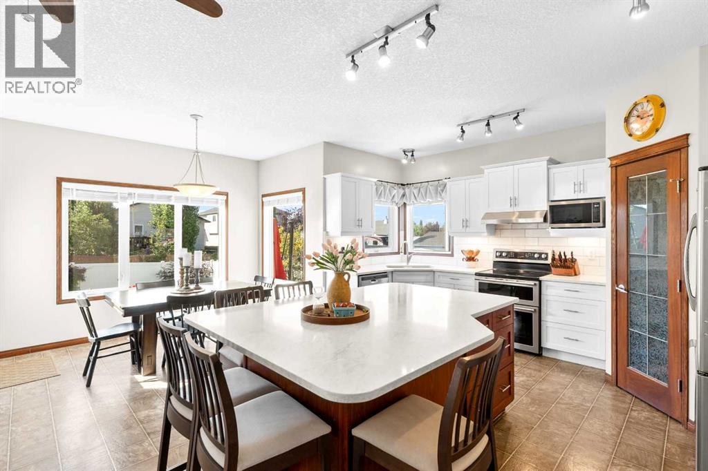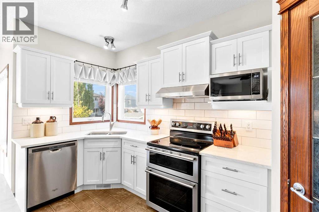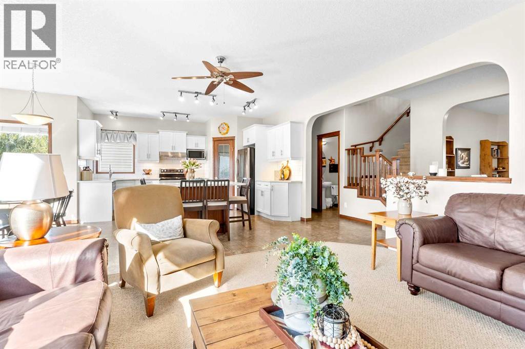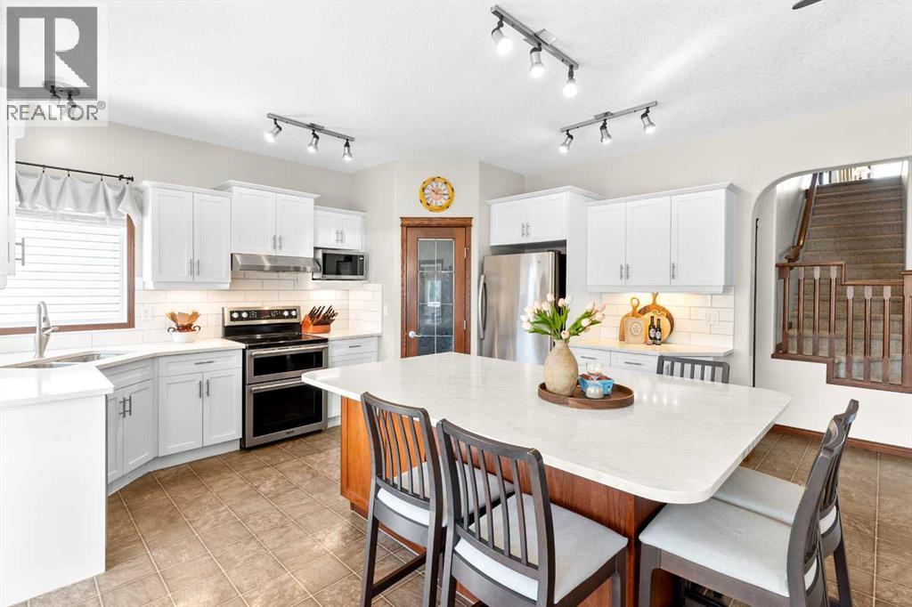 Welcome to this well cared for home in a quiet, prestigious CUL DE SAC, just steps from the LAKE, GREENSPACE TRAILS, and several great community amenities. With excellent CURB APPEAL and a charming WRAPAROUND FRONT PORCH, this home offers a warm welcome and a layout that works for everyday living.Inside, the MAIN FLOOR features an OPEN CONCEPT design with the KITCHEN, DINING, and LIVING AREAS flowing together. The KITCHEN has been RENOVATED with CUSTOM PAINTED SHAKER DOORS, DOORS, NEW HARDWARE, and UPDATED QUARTZ COUNTERTOPS. It includes a LARGE ISLAND with SEATING, generous counter space, and a window above the sink that brings in NATURAL LIGHT.A bright HOME OFFICE is located at the front of the home with TWO LARGE WINDOWS. Upstairs, you’ll find FOUR BEDROOMS, COMPUTER NOOK for homework or family use, and a spacious PRIMARY BEDROOM with a PRIVATE ENSUITE. Large windows throughout bring in lots of NATURAL LIGHT, and all window coverings and curtains are in excellent condition.The FULLY DEVELOPED BASEMENT offers space for a HOME GYM, SHOP, REC ROOM, or an optional FIFTH BEDROOM with an EGRESS WINDOW already in place. There is also a TON OF STORAGE, well organized and ready to use.The SOUTH FACING BACKYARD is beautifully landscaped with SHRUBS, FLOWERS, and RAISED GARDEN BEDS. The WHITE VINYL FENCING is in excellent shape and completely maintenance free. A LARGE COMPOSITE DECK with METAL RAILINGS, a well maintained PATIO, and STONE WALKWAYS create an outdoor space that is both functional and relaxing. The ALLEY behind the home adds extra privacy and convenient yard access.All of this is within walking distance to GENESIS PLACE, an OUTDOOR GYM, HOCKEY RINK, TENNIS COURTS, ATHLETIC FIELDS, PARKS, and SCHOOLS. You are walking distance to all three levels of schooling, ELEMENTARY, MIDDLE, and HIGH SCHOOL, making this an ideal home for families of all ages.This is a clean, move-in-ready home in a walkable, family friendly location with thoughtful updates and ex cellent outdoor space. (id:51913)