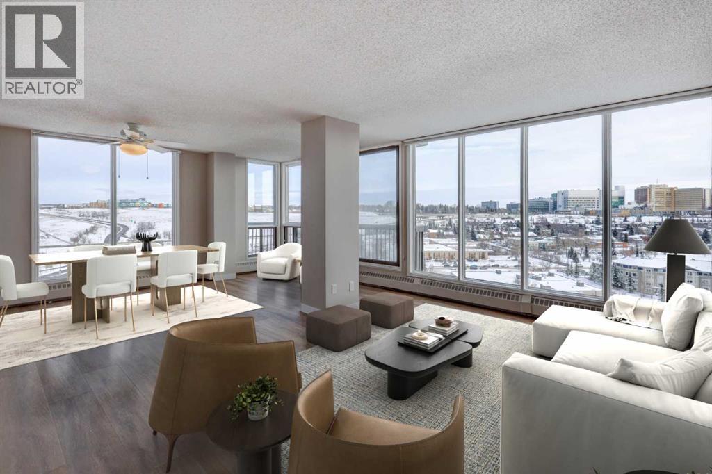 HOME SWEET HOME! Indulge in maintenance free ADULT CONDO LIVING in this updated 15th floor unit situated in the sought-after NW community of Point McKay offering BRAND NEW LUXURY VINYL PLANK FLOORING THROUGHOUT. This desirable, quiet building offers an exquisite unit with 2 bedrooms, 1.5 bathrooms and 1,013 SQFT of beautifully maintained living space with BREATHTAKING PANORAMIC VIEWS of Downtown Calgary, the Skyline and valley views. Heading inside you will fall in love with the spacious, open concept floor plan with wall to wall windows to bask in your pristine views throughout the condo. Features include a massive living room that is flooded in natural sunlight, formal dining area perfect for hosting guests, a spacious foyer and the chef’s kitchen fully equipped with white appliances, ample cabinet and counter space and a pantry. Also featured in the unit is a generous sized bedroom, full 3 piece bathroom and the massive, master retreat with a walk-in closet and large 2 piece ensuite bathroom. Updates include new cork flooring and upgrades in the kitchen. Completing the unit is a balcony to have a coffee while enjoying your dream views, in-suite laundry, an underground parking stall and assigned storage locker perfect for all your needs. The popular Riverside Towers includes exclusive amenities such as a media room, library, 24/7 concierge, onsite security, car wash, visitor parking, preferred pricing option with the Riverside Club and Spa. This location is perfect for home buyers, investors and downsizers looking to be steps from the tranquil Bow River and its numerous pathways and close to Foothills Hospital, Children’s Hospital, University of Calgary, University District and quick escape to Highway 1 and the mountains. Don’t miss out on this opportunity, book your private viewing today! (id:51913)