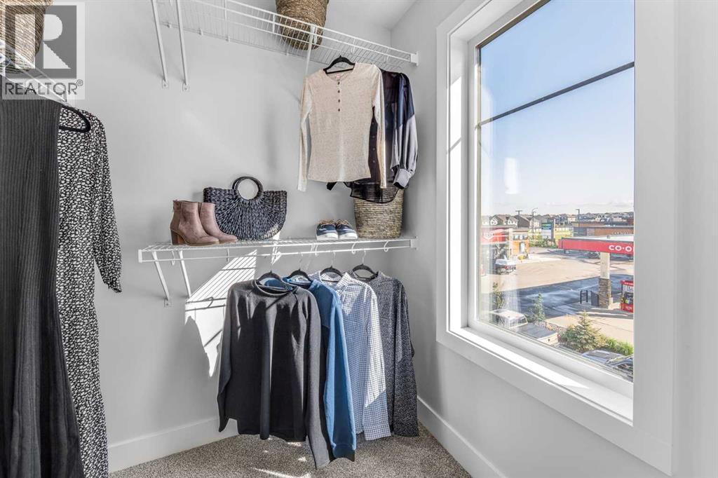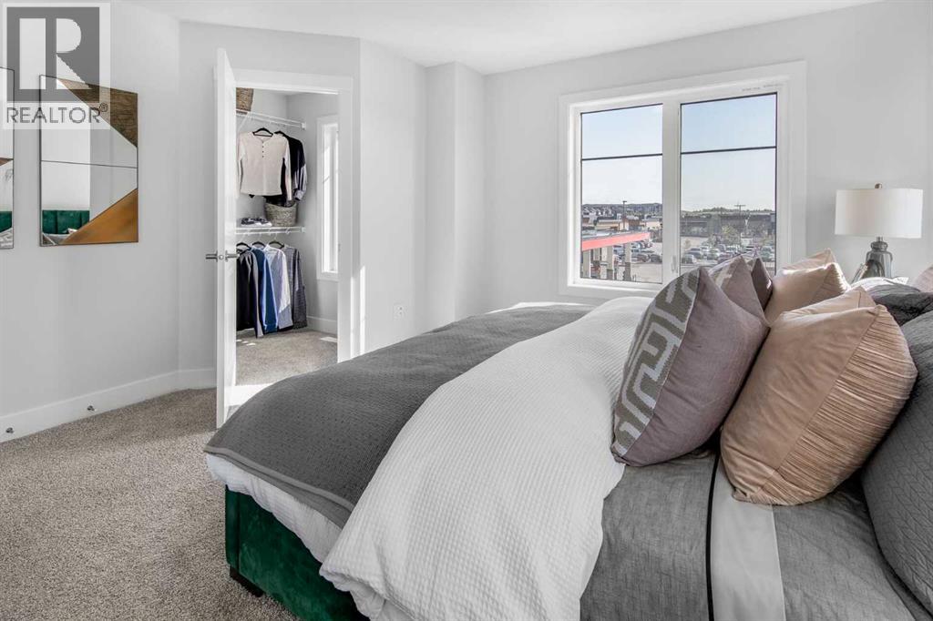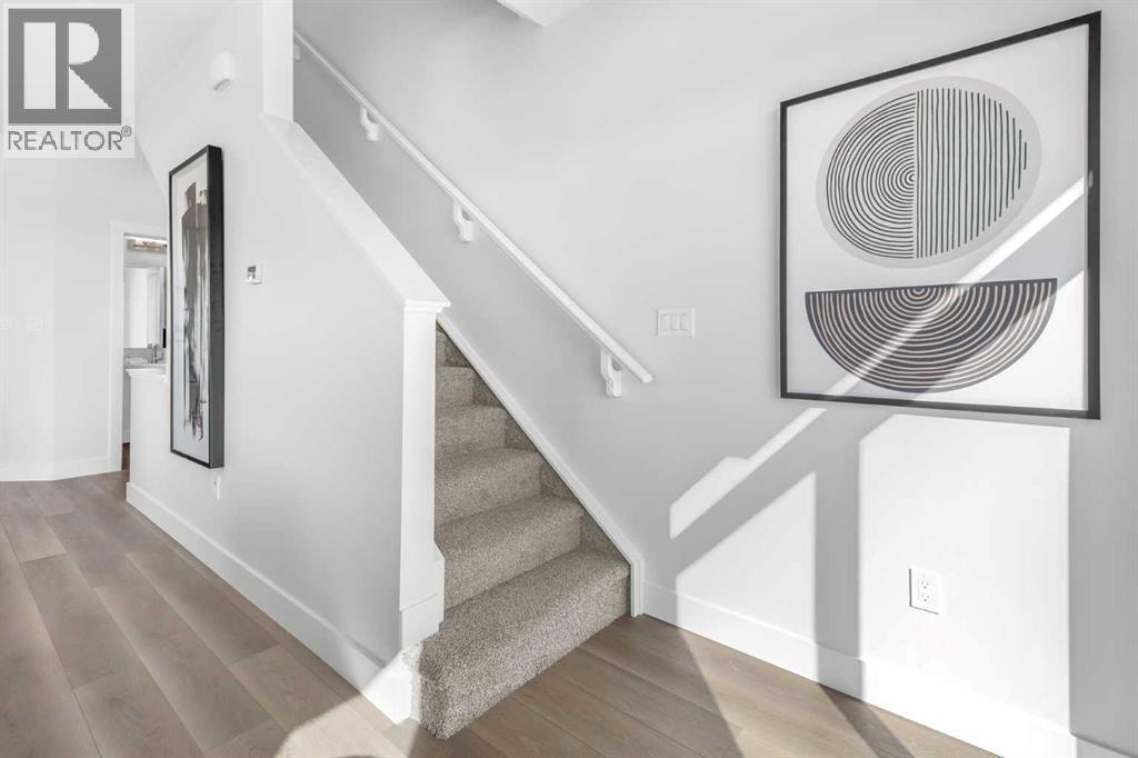 The stunning ‘Holiday’ model by Brookfield Residential is now available in the heart of Rockland Park! This brand-new townhome is thoughtfully designed and extensively upgraded, offering 3 bedrooms, 2.5 bathrooms, a ground-floor den, and a private double attached garage. The open-concept main living area features a timeless kitchen with full-height cabinetry, quartz countertops, a built-in hood fan and microwave, and a stainless-steel appliance package. The extended island provides additional seating, making it a natural gathering place. The kitchen flows seamlessly into the dining and living areas, which are filled with natural light thanks to a wall of windows. A private balcony off the living room offers the perfect spot to enjoy the summer sun. A full laundry room with extra storage and a 2-piece powder room complete this level. Upstairs, the spacious ~11’ x 12’ primary suite includes a walk-in closet and a private ensuite. Two additional bedrooms and a full bathroom complete the upper floor. On the lower level, a versatile den off the entryway provides the perfect space for a home office or flex area, while the private double attached garage keeps your vehicles and valuables safe year-round. This home has been upgraded throughout, including central A/C rough-in, BBQ gas line, pendant lighting over the island, 42" upper cabinets, and a full interior selections package. The property is protected by both a full builder warranty and Alberta New Home Warranty, offering peace of mind in one of Calgary’s most sought-after new communities, with an unbelievable homeowner’s association, Rockland Park. If you’re looking for a stylish, low-maintenance townhome with exceptional design and craftsmanship—this is the one! (id:51913)