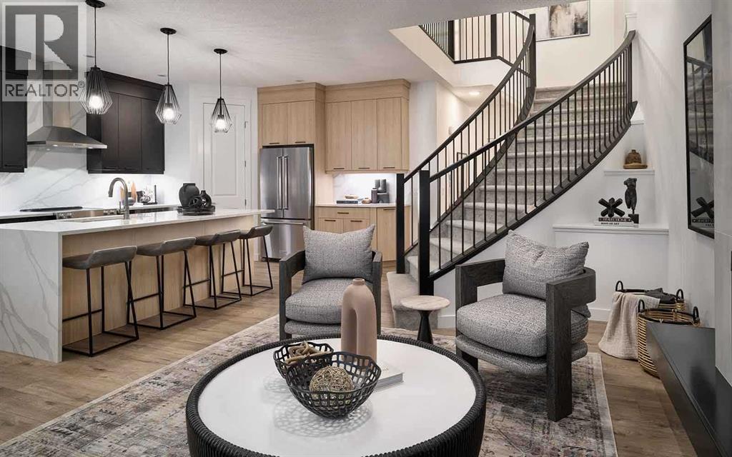 This 'Robson 24' built by Brookfield Residential is the perfect family home and is fully move-in ready before the year of the year! Featuring 3 living areas, 5 bedrooms, and 4 bathrooms, this home has plenty of living space for a growing family plus the basement has a private side-entrance, perfect for multi-generational living. The home has a grand foyer with a main level full bathroom and bedroom ideal for those with mobility issues or could be used as a home office or children’s play space. The centre of the main floor features a spiral staircase that leads to the second level - offering unique design features rarely seen in a home of this size. The gourmet kitchen includes a built-in cooktop, range hood and wall oven + microwave and is complete with a large corner pantry providing endless storage for those that like to cook and entertain. The kitchen overlooks both the living and dining areas - making this the perfect space to host guests. A central fireplace and walls of windows in both the living and dining rooms allow for natural light to pour through the space all day long. The main is complete with 9' ceiling,s creating a more open space. The spiral staircase leads to the second level where you'll find a central bonus room that separates the primary suite from the secondary bedrooms. The primary suite is complete with a 5 pc en suite including dual sinks, soaker tub, and a walk-in shower - in addition to its expansive walk-in closet. Two more bedrooms, a full bathroom and a laundry room complete the second level. The basement is fully developed f,eaturing a 5th bedroom, full bathroom, rec room, flex room and a home office! The sunny south-facing backyard is the perfect spot to soak up sun all summer long while providing you with ideal exposure that keeps the main living area bright and sunny all year long. Builder's new home warranty & Alberta New Home Warranty are included with the purchase of this brand new home, allowing you to buy with peace of mind. Th is new home is fully move-in ready with timeless finishing throughout! *Please note: photos are for representation purposes and are from a previous show home model - exact finishes will vary. (id:51913)