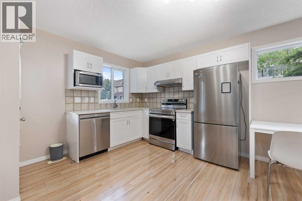 Welcome to this beautifully updated 4-bedroom, 2.5-bath corner-unit townhouse in the family-friendly community of Royal Oak. Offering a smart layout across all three levels, this home provides comfort, convenience, and style in a low-maintenance setting—perfect for families, first-time buyers, or anyone seeking a move-in ready home close to life’s essentials. Step inside to find a bright, open-concept main floor with laminate flooring throughout and a freshly renovated kitchen featuring upgraded cabinetry and stainless steel appliances. The kitchen seamlessly connects to the spacious living and dining areas, creating an inviting space for daily living and entertaining. A convenient 2-piece powder room completes the main floor. Upstairs, you’ll find three generously sized bedrooms, including a sunny primary suite with a large walk-in closet and direct access to a well-appointed 5-piece bath. This bathroom is cleverly designed with dual access—ensuring privacy for the primary suite while remaining easily accessible to the other two bedrooms via the main hallway. The fully finished basement extends your living space with a fourth bedroom, complete with a private 4-piece ensuite—ideal for guests, teens, or a home office—plus plenty of storage for seasonal items or hobbies. Enjoy outdoor time on your private patio that backs onto a quiet, shared green space—without the hassle of yardwork, as landscaping is professionally maintained. The shared driveway leads to your single attached garage, and visitor parking is conveniently nearby. Located close to everything you need—schools, playgrounds, Royal Oak Shopping Centre, the YMCA, LRT station, bus lines, and major routes—this home offers a balanced lifestyle with unbeatable convenience. Don’t miss your opportunity to own a spacious, well-kept home in one of NW Calgary’s most desirable neighbourhoods! (id:51913)