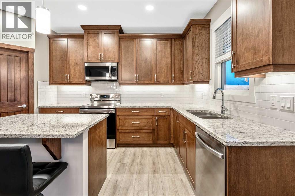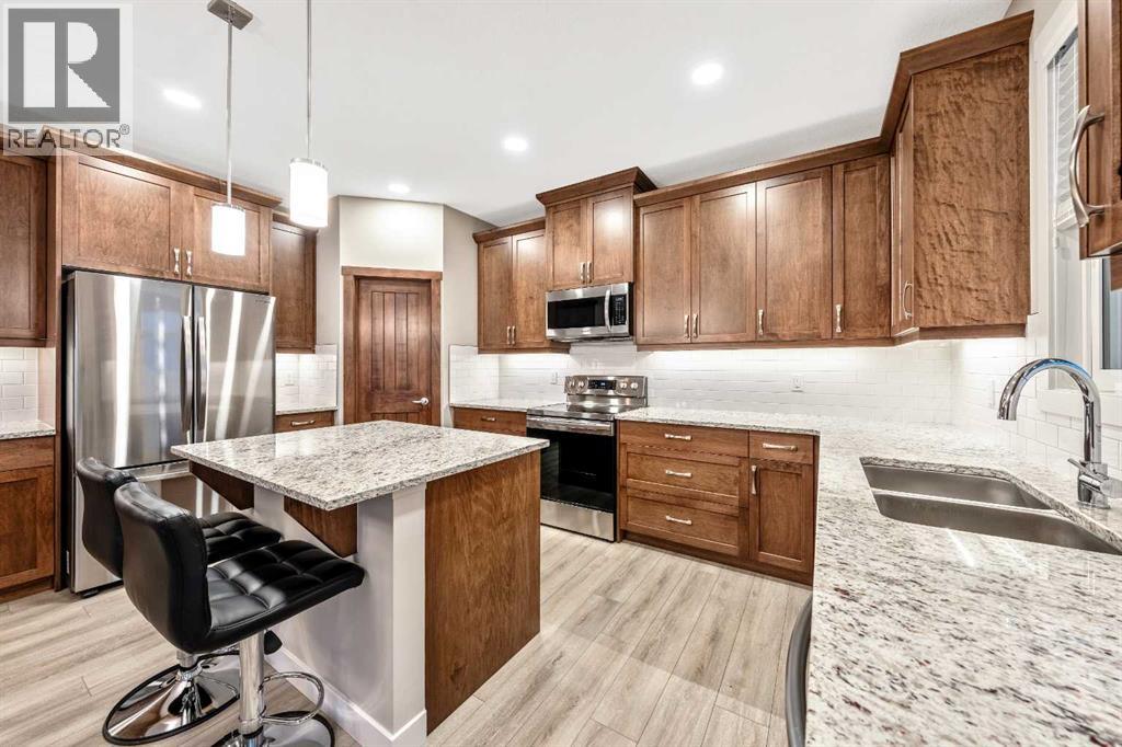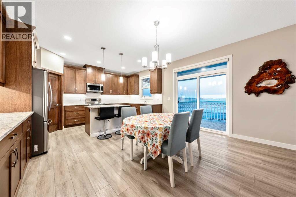 As you approach this inviting home in Boulder Creek Estates, you’ll immediately notice the care put into the landscaping with lush flower beds, mature trees, and pristine hardscape set off the property beautifully. The vantage point at the end of a quiet cul-de-sac affords sweeping views over the Track Golf Course, offering changing vistas through every season. Step through the front door and you are greeted by 9-foot ceilings and warm vinyl plank flooring flowing across the main level. To your right, a light-filled office or flex space awaits, perfectly suited to remote work, study, or quiet reading. Further in, the living and dining spaces open to reveal unobstructed views of the golf course through large windows. The kitchen is both elegant and practical, featuring a central island, granite countertops, stainless steel appliances, and a roomy walk-in pantry. The living room is cozy and welcoming, anchored by a graceful fireplace that promises comfort during cold Alberta winters. Sliding patio doors lead you to a generous, partially covered rear deck which is a prime spot to entertain or simply soak in the views.Climb the stairs to find a generous bonus room that offers flexibility—perhaps a media area, play space, or secondary lounge. The primary bedroom is a true retreat with its five-piece ensuite and sizeable walk-in closet. Two additional bedrooms share in that same commitment to space and comfort, each offering room for a restful night’s sleep. A well-sized laundry room, complete with ample storage, rounds out the upper level along with a four-piece bathroom.Downstairs, the unfinished basement presents a blank canvas, boasting 9-foot ceilings and rough-in plumbing already in place for a future full bathroom or expansion. The functional possibilities are numerous including the option of additional bedrooms, a recreation space, or a home gym. From the deck you’ll have easy access to the backyard, which is fully fenced and completely landscaped, creating a private outdoor refuge. A durable shed is included for storage of garden tools or seasonal gear.Thoughtfully designed and situated in one of Langdon’s most desirable communities, this home offers lifestyle, convenience, and flexibility. With its views, floor plan, and potential, it’s a home you’ll want to see—and once you do, you’ll want to call home. Book your showing today. (id:51913)