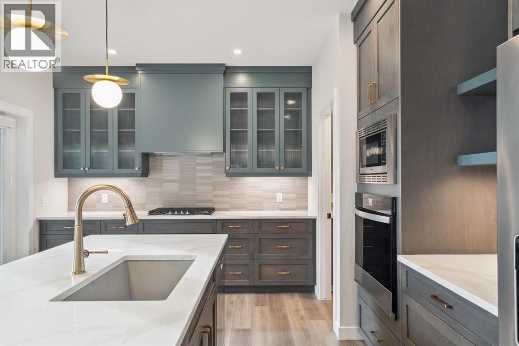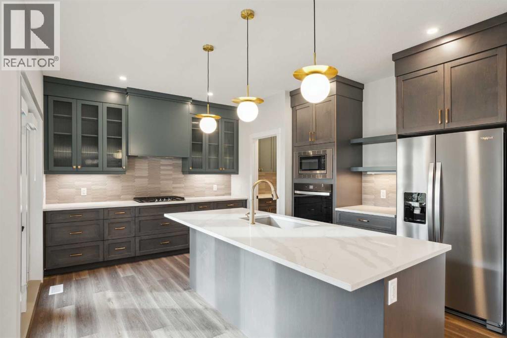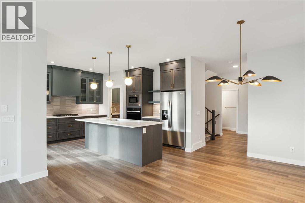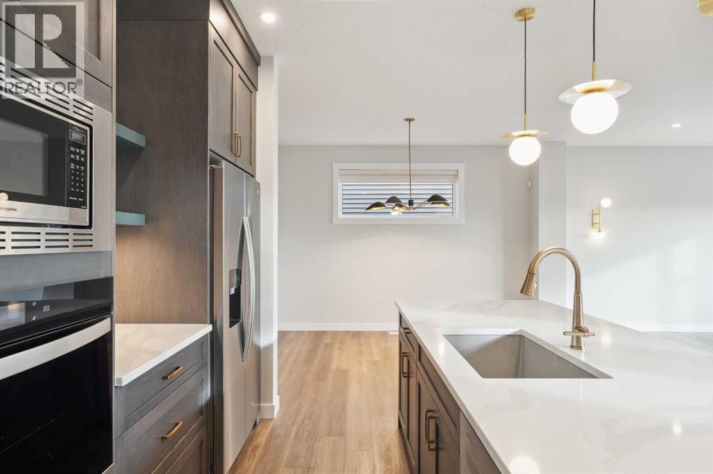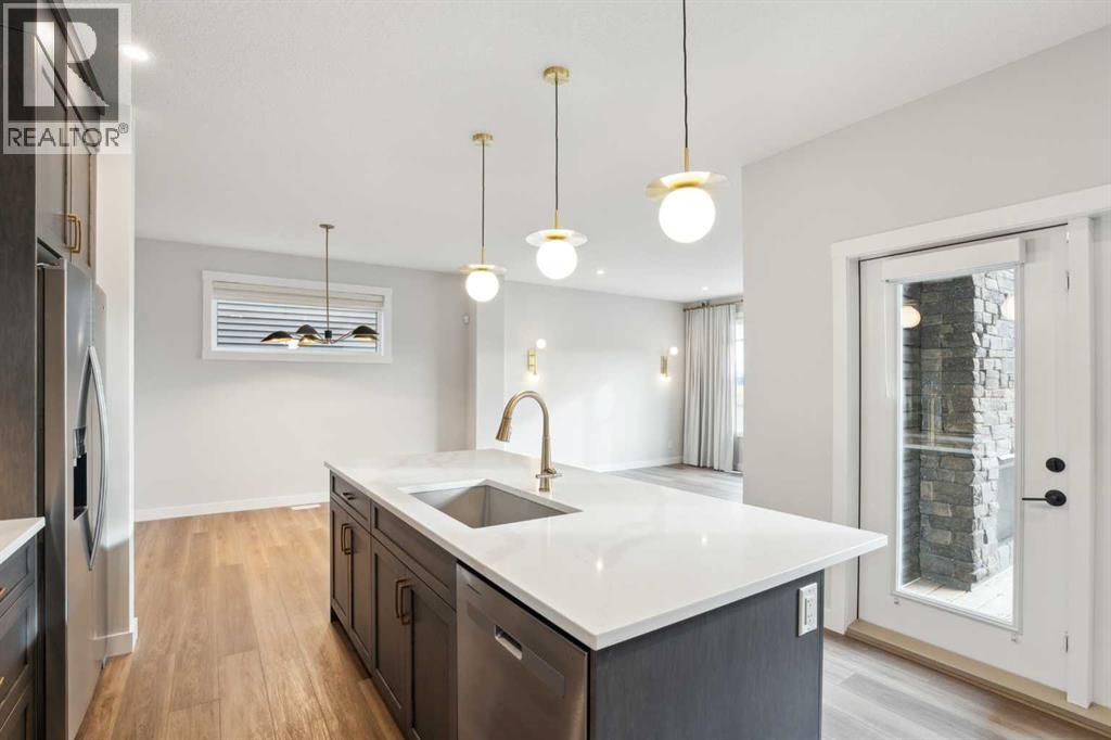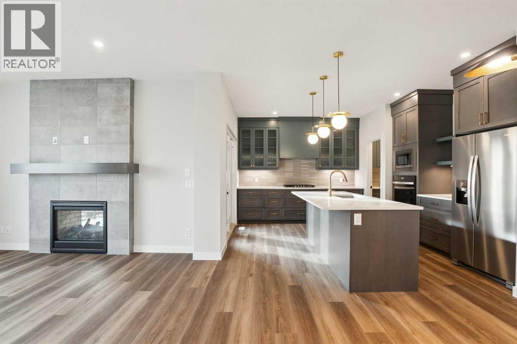 **Open House - Sunday, October 19th - 1:00 PM - 3:00 PM** The beautiful Dawson model is a brand new home that features 2 living areas, 3 bedrooms, 2.5 bathrooms and nearly 2,300 square feet of developed living space + an undeveloped basement that awaits your imagination! Located in the heart of Chinook Gate and ideally situated on a large conventional lot with a south-facing backyard, this new home is perfect for a growing family. The double attached garage leads to an expansive mud room that has access to the front of the home and the large walk-through pantry/coffee bar that leads into the kitchen - adding to everyday convenience. The gourmet kitchen is complete with a cooktop, chimney hood fan, built-in wall oven & microwave, and features a central island with additional seating space. The kitchen overlooks the dining area and living room - making this the perfect family home or entertainment space! A central cantilevered gas fireplace in the main level great room is perfect for cozy winter nights. Double patio doors and windows on either side of the fireplace allow for the south-facing backyard sunshine to flow throughout the main living area all day long. The main level is complete with a large foyer, 2 pc powder room and two sets of double closets for ample storage. On the upper level, the bonus room is at the front of the home, overlooking the front street and providing the perfect tv space. The large primary suite is at the back of the home, overlooking the backyard, and is complete with walk-in closet and a 5 pc ensuite including a walk-in tiled shower, soaker tub, double sinks and a private water closet. Two more generous-sized bedrooms, each complete with their own walk-in closets, a full bathroom and laundry room complete the upper level. The undeveloped basement is a clean slate with bathroom rough-ins in place, making future development that much easier! Situated on a conventional lot (not a zero lot-line) that is over 3,700 ft2 in size, with a south-f acing backyard, this beautiful new home is perfect for a growing family! This brand new home includes builder warranty + Alberta New Home Warranty - allowing you to purchase with peace of mind in the new community of Chinook Gate. *Please note: photos are for representation purposes and are from a previous show home model - exact finishes will vary. (id:51913)