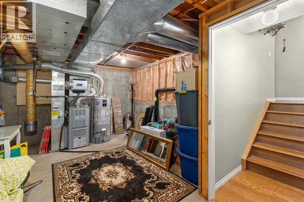Welcome to your gorgeous and bright townhome, with heated attached garage! Situated in the quiet neighbourhood of Glamorgan in a well cared for complex, this home has great access to schools, parks, shopping, and dining. You will find plenty of closet space as you enter your home. A convenient washer and dryer with storage is located on the main level as well. The living room features a beautiful wood burning fireplace with stone facade, and stunning 12 foot high ceilings. South east facing patio doors fill the room with natural light, and give you access to your own private fully fenced backyard surrounded by mature trees. On-trend warm honey oak makes your eat-in-kitchen a cozy spot to be! There is plenty of cabinet space, as well as updated counter tops, and backsplash. The peninsula is a great place to prepare and serve meals. Next to your kitchen is a flexible space that can be used as a formal dining room, den, or home office. The main floor living space is rounded out by a powder room. Head upstairs via your oak hardwood stairs and timeless wrought iron banisters. The upper floor features 3 bedrooms. The large master has a 3 piece ensuite, and double closets. The additional 2 bedrooms are spacious, and each has a large closet. They share the 4-piece main bathroom with a bathtub. The unfinished basement level allows for plenty of storage, or a home gym area. The furnace and hot water tank have been updated. Your heated single car garage has interior access to your front entry, as well as quick access to the basement level. This townhouse is a true gem in Southwest Calgary, pet-friendly, updated windows, hardwood flooring - a great space that is flexible to any new owner's needs. Glamorgan gives you great access to major commuter routes, quick escape out of town - all while living in a mature neighbourhood. (id:51913)