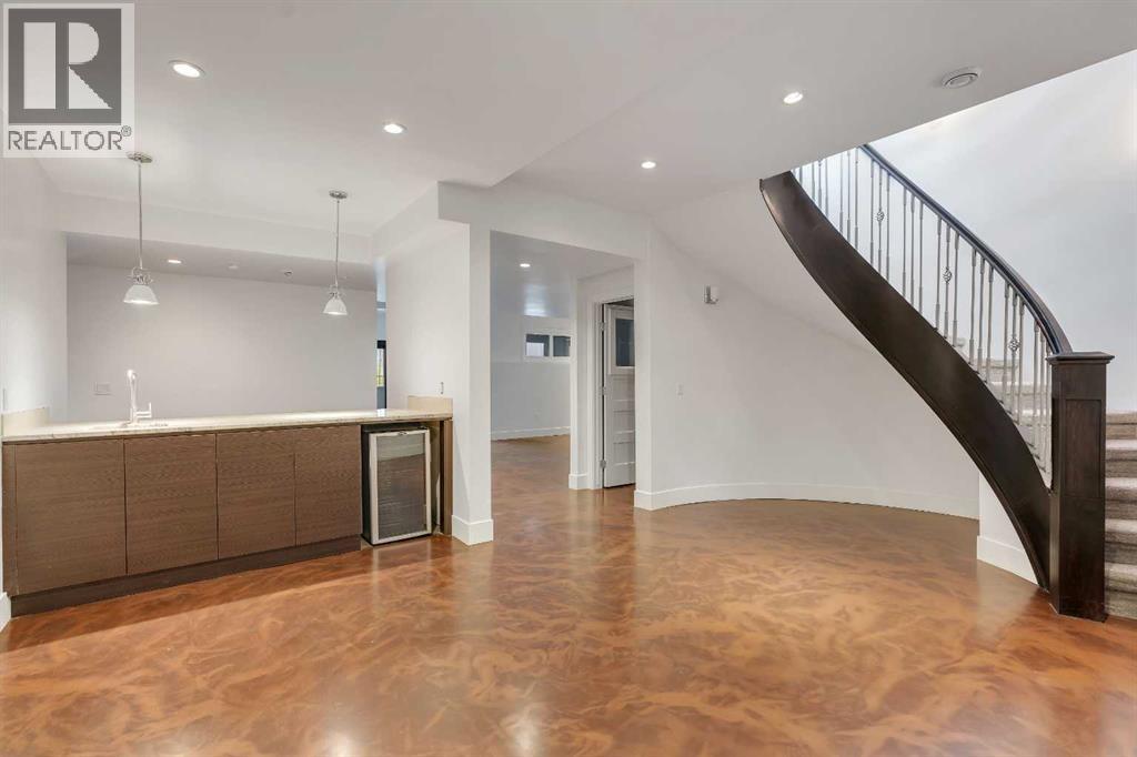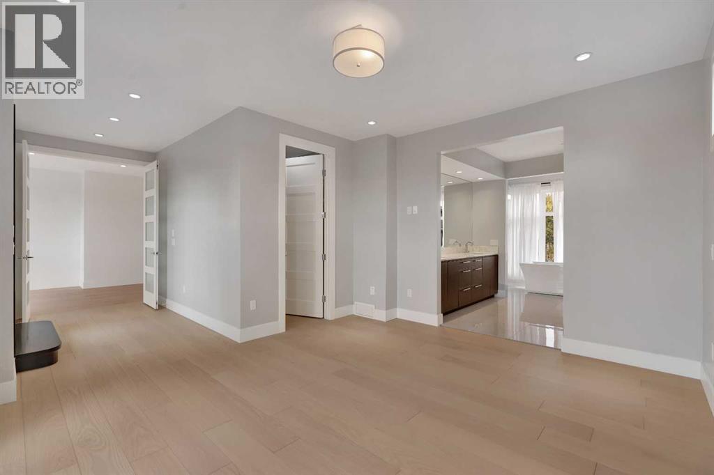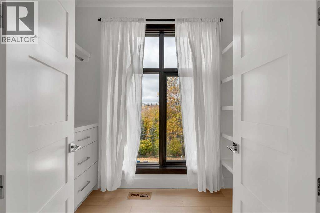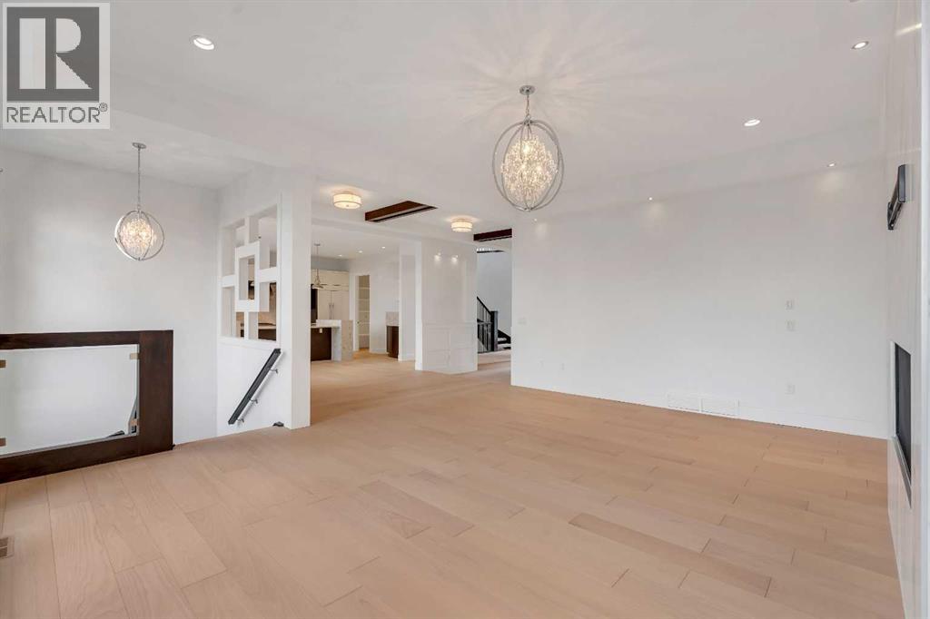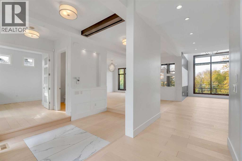 Recently renovated to achieve the perfect harmony of sophistication, light & function, this luxurious inner-city residence offers over 4,800 sq. ft. of refined living space backing west amid treetop outlooks & glowing sunset skies. A dramatic entry sets the tone with wide plank hardwood & a marble inlay, leading to soaring ceilings framed by custom millwork, exposed beams & black-clad windows that capture every nuance of daylight. French doors open to a private office detailed with built-ins, creating an ideal work-from-home sanctuary. The heart of the home is an exquisite designer kitchen that balances modern minimalism with warmth, showcasing pristine white cabinetry contrasted by rich wood accents, a waterfall-edge granite island & professional-grade Wolf appliances including a 6-burner gas range, steam oven & built-in espresso system. A curved wet bar & walk-through butler’s pantry enhance the home’s entertaining flow. Beyond, the dining room’s double-height ceiling, sculptural chandelier & wall of glass doors invite connection between indoors & out, while an automated awning provides shade over the upper deck for sunset dinners. The adjoining living room blends quiet luxury with comfort around a sleek linear fireplace wrapped in full-height marble, its ambiance carried by soft recessed lighting & serene west views. Ascend the glamourous curved staircase illuminated by a cascading crystal chandelier to the upper level. French doors lead to a sumptuous primary retreat where a private balcony, spa-inspired ensuite with steam shower & soaker tub, and a custom dressing room create a boutique-hotel experience. 2 additional bedrooms, each with its own ensuite, complete this level. The fully finished walkout lower level continues the home’s refined aesthetic, offering a seamless blend of comfort & sophistication. Heated epoxy floors provide quiet warmth underfoot, while a sleek wet bar invites easy entertaining & relaxed evenings with friends. The spacious recreation a rea is ideal for movie nights or game-day gatherings, complemented by a well-appointed fourth bedroom & a stylish full bath for guests. A versatile den adds flexibility for a gym, yoga studio or private theatre, & dual stairwells connect this level effortlessly to the rest of the home for exceptional flow. Outside, the fenced west yard offers ample green space for relaxation or play, with a detached double garage featuring its own electrical panel, drive-through door & additional RV parking. Thoughtful upgrades include remote blinds, smart thermostats, tankless water heating, central air conditioning, in-floor boiler heat, sump pump & central vacuum. Perfectly positioned within Hounsfield Heights/Briar Hill, this exceptional property offers unmatched access to parks, top schools, SAIT, Kensington, the Bow River pathway system, North Hill Centre, hospitals, downtown & the mountains beyond—all wrapped in elevated design & timeless luxury! (id:51913)