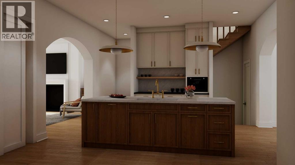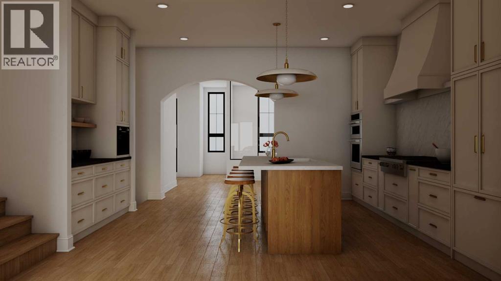 Stunning new build by Agile Developments! Ideally situated on a sunny, over-sized south-backing 30' x 125' lot on a quiet street in the heart of Altadore, this home offers an exceptional setting for active, professional couples & families. Featuring over 3,300 sq ft of thoughtfully designed living space, the home blends elevated design with everyday functionality. The main level showcases 10-foot ceilings & wide-plank white oak hardwood floors, creating a bright, open atmosphere. A dedicated front office with custom wrought-iron detailing provides an ideal work-from-home setup. The dining area offers custom millwork & built-ins & flows seamlessly into the chef’s kitchen, equipped with premium Miele appliances, including a 6-burner dual-fuel range, Miele refrigerator, Miele Speed Oven, & Bosch dishwasher. A well-designed walk-in pantry with extensive cabinetry, beverage fridge, & small-appliance storage connects directly to the mudroom with extensive built-ins, helping keep daily life organized. The expansive living room is anchored by a custom gas fireplace & oversized sliding doors that open to the sun-filled south backyard & spacious deck, ideal for indoor-outdoor entertaining. The upper level features 9-foot ceilings throughout. The primary bedroom overlooks the backyard & includes a walk-in closet with furniture-grade cabinetry & custom built-ins, plus a spa-inspired 6pc ensuite with steam shower, soaker tub, heated floors, private water closet, & premium fixtures by The Royal Flush. Two additional bright bedrooms, a well designed family-friendly main bath (pocket door separates the toilet/shower area from the dual vanity enabling multiple parties to use the same simultaneously), & a convenient upper-level laundry room with a sink, ample storage & hanging) complete the upper level. The fully developed lower level offers a media space, games area, fitness room, fourth bedroom, and full bathroom. Open-joist duct routing eliminates bulkheads, enhancing ceiling heig ht, while in-floor radiant heat and high-performance triple-pane windows ensure year-round comfort and energy efficiency. An insulated & drywalled double garage provides ample parking & storage. Located half a block from Altadore Elementary & Rundle Academy, one block from River Park, & walking distance to Marda Loop, this home delivers an outstanding balance of lifestyle, location, & design. Call today to learn more and discuss customization options! (id:51913)