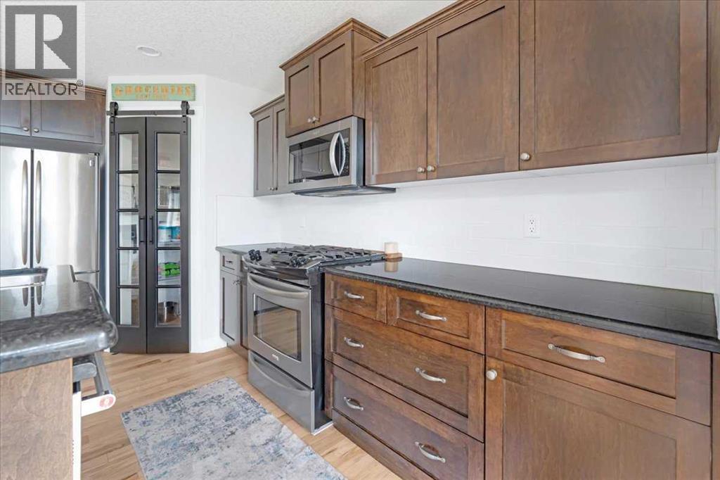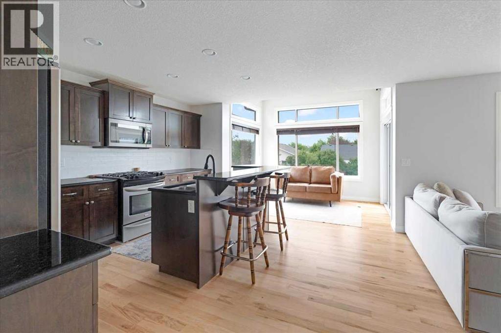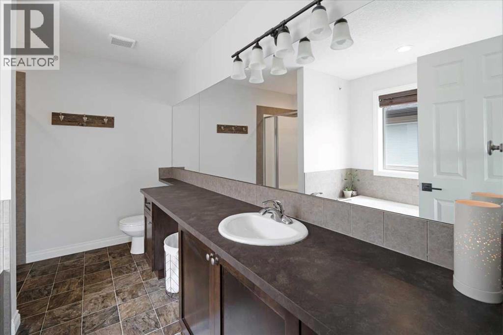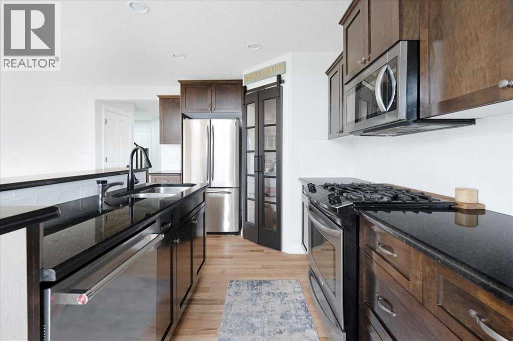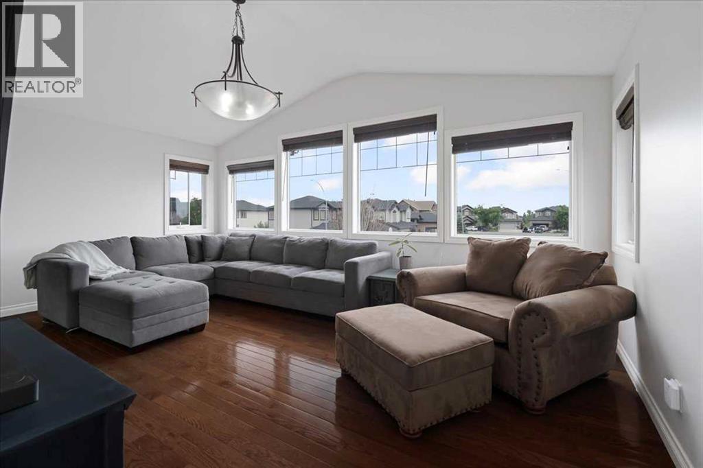 OPEN HOUSE SUNDAY SEPTEMBER 7 11AM-2PM COME AND FALL IN LOVE!!! IMMEDIATE POSSESSION AVAILABLE!!! Welcome home!!! This beauty is located conveniently on a great street and backs onto a green space and is a short walk to the lake, spray park, pump track and park!! When you walk in you are welcomed by so many neat features from the converted closet at the entrance that is stylish and practical. The dining room that is painted a stunning grey and could also be used as a sitting room or a home office. Walk into the kitchen living room and you will see granite counter tops, new backsplash, new pantry door and new lighting. Tons of natural light floods this room making it a dream to work in. The living room is a generous size and features a gas fireplace perfect for taking the chill off on those cold winter nights. A sliding patio door leads out onto the 2 tired deck that has built in seating! The floors have all been redone checking off all the things on the to do list. Upstairs is a huge bonus room and stunning hardwood floors through out the upper level. 2 good sized bedrooms and another 4 piece bath are located on this level. The primary bedroom features a large walk in closet and a 4 piece ensuite. Some of the tech features include a My Q wifi garage door opener, Eco B thermostat, August smart lock, Ring door bell and camera and a keypad on the garage. This house is move in ready and a must see!!! (id:51913)