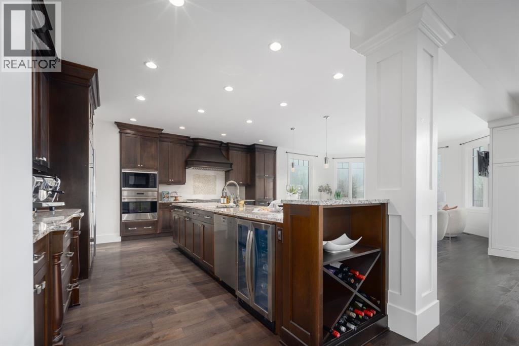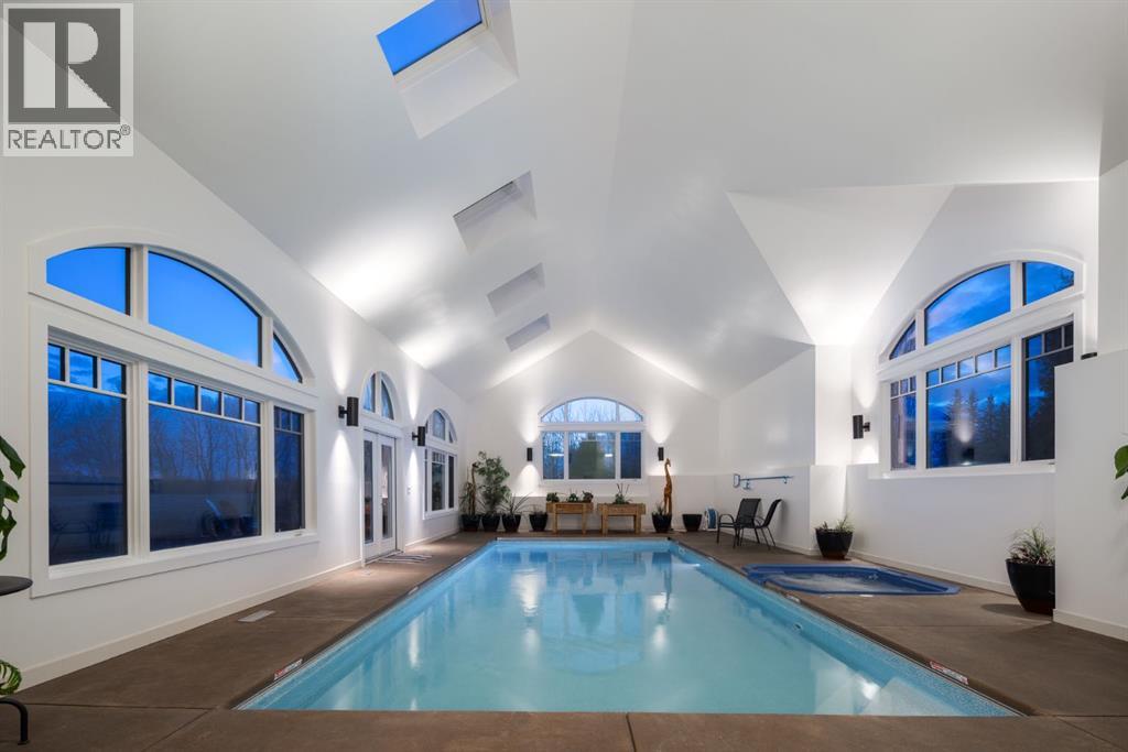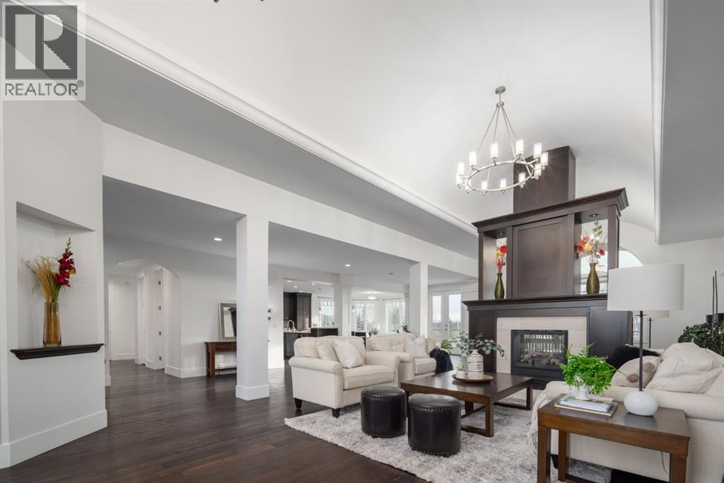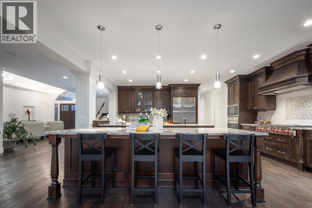 Located in prestigious Grandview Estates on a prime Southwest-facing lot with breathtaking Rocky Mountain views, this impressive custom-built estate offers over 8,500 square feet of exceptionally designed living space executed by renowned builder Maillot Homes. Recently refreshed with an updated color palette, the home feels modern, bright, and move-in ready. Featuring one of the largest residential solar installations in Canada, this property combines remarkable energy efficiency with luxurious family living. A grand barrel-vaulted ceiling feature welcomes you inside, where expansive living and dining areas are connected by a striking two-sided fireplace and framed by oversized windows that flood the space with natural light. The gourmet kitchen is truly the heart of the home, offering dual oversized islands, top-of-the-line Wolf & Sub-Zero appliances, abundant cabinetry, and a sun-drenched breakfast nook that opens onto the southwest deck — perfect for casual family meals or elegant entertaining. Designed for gathering and memory-making, the residence features an incredible indoor saltwater pool and hot tub oasis, an inviting media room for movie nights, and a wine room. A lower-level secondary kitchen, expansive rec room, and direct access to the pool area complete the walkout basement, where comfort meets entertainment at every turn. Thoughtful architectural details include an elevator providing access to all levels as well as the garage, ensuring long-term accessibility. A custom-built, handicap-accessible Jack and Jill bathroom on the lower level features a curb-less shower and a wheelchair-friendly sink, an oversized four-car garage with dog wash and RV bay, and an abundance of strategically placed skylights enhancing the natural light throughout the home. The upper level offers a bonus room suite with a private bedroom and full ensuite, perfect for guests or extended family. The primary retreat is a true sanctuary, featuring a private balcony with unobstruct ed Southwest views, a romantic two-sided fireplace, and a spa-like ensuite with in-floor heating and a large walk-in closet. A dedicated study loft with built-in desks provides a quiet workspace for students or remote work needs. The walkout level is equally impressive, offering two additional bedrooms, a change room with full bathroom for pool guests, a second laundry area, and expansive entertaining spaces that open seamlessly to the outdoors. The fully landscaped outdoor areas include an expansive Southwest deck, a lower walkout patio, a fenced dog run, invisible pet fencing, and a cozy firepit area, making this property as functional as it is beautiful. With Calgary’s top private schools and an abundance of retail shopping within a ten-minute drive, this property is ideally suited for families looking for privacy paired with convenience. This extraordinary residence is a true legacy property, offering an unparalleled lifestyle just minutes from city conveniences. (id:51913)