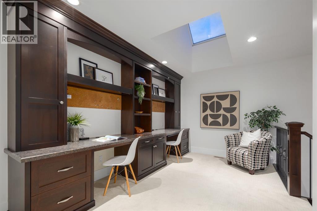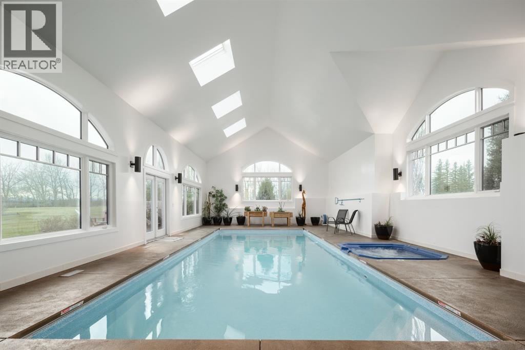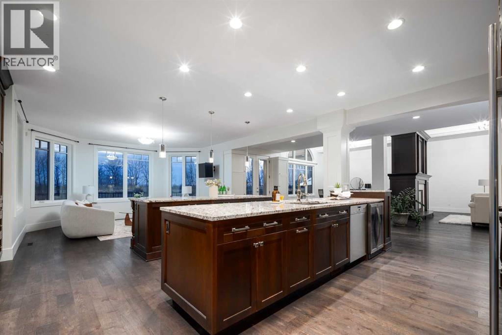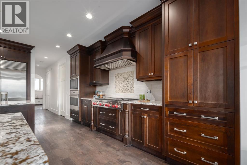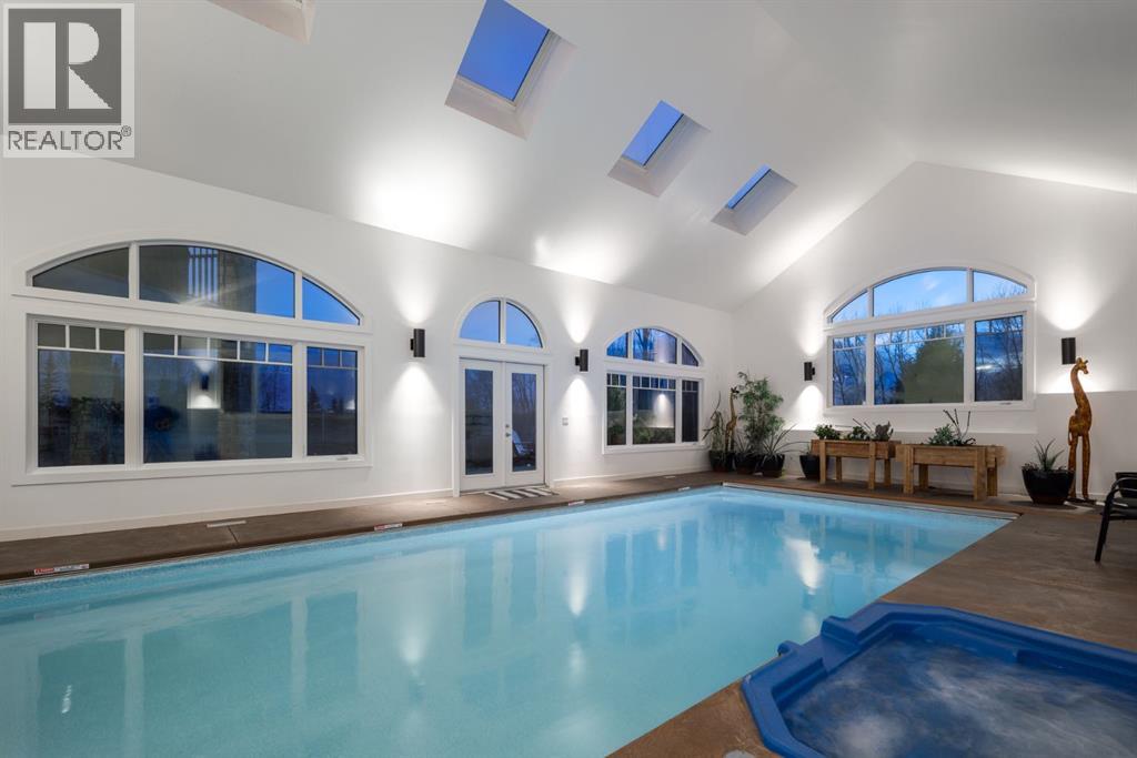 Located in prestigious Grandview Estates on a prime Southwest-facing lot with breathtaking Rocky Mountain views, this impressive custom-built estate offers over 8,500 square feet of exceptionally designed living space executed by renowned builder Maillot Homes. Recently refreshed with an updated color palette, the home feels modern, bright, and move-in ready. Featuring one of the largest residential solar installations in Canada, this property combines remarkable energy efficiency with luxurious family living. A grand barrel-vaulted ceiling feature welcomes you inside, where expansive living and dining areas are connected by a striking two-sided fireplace and framed by oversized windows that flood the space with natural light. The gourmet kitchen is truly the heart of the home, offering dual oversized islands, top-of-the-line Wolf & Sub-Zero appliances, abundant cabinetry, and a sun-drenched breakfast nook that opens onto the southwest deck — perfect for casual family meals or elegant entertaining. Designed for gathering and memory-making, the residence features an incredible indoor saltwater pool and hot tub oasis, an inviting media room for movie nights, and a wine room. A lower-level secondary kitchen, expansive rec room, and direct access to the pool area complete the walkout basement, where comfort meets entertainment at every turn. Thoughtful architectural details include an elevator providing access to all levels as well as the garage, ensuring long-term accessibility. A custom-built, handicap-accessible Jack and Jill bathroom on the lower level features a curb-less shower and a wheelchair-friendly sink, an oversized four-car garage with dog wash and RV bay, and an abundance of strategically placed skylights enhancing the natural light throughout the home. The upper level offers a bonus room suite with a private bedroom and full ensuite, perfect for guests or extended family. The primary retreat is a true sanctuary, featuring a private balcony with unobstruct ed Southwest views, a romantic two-sided fireplace, and a spa-like ensuite with in-floor heating and a large walk-in closet. A dedicated study loft with built-in desks provides a quiet workspace for students or remote work needs. The walkout level is equally impressive, offering two additional bedrooms, a change room with full bathroom for pool guests, a second laundry area, and expansive entertaining spaces that open seamlessly to the outdoors. The fully landscaped outdoor areas include an expansive Southwest deck, a lower walkout patio, a fenced dog run, invisible pet fencing, and a cozy firepit area, making this property as functional as it is beautiful. With Calgary’s top private schools and an abundance of retail shopping within a ten-minute drive, this property is ideally suited for families looking for privacy paired with convenience. This extraordinary residence is a true legacy property, offering an unparalleled lifestyle just minutes from city conveniences. (id:51913)