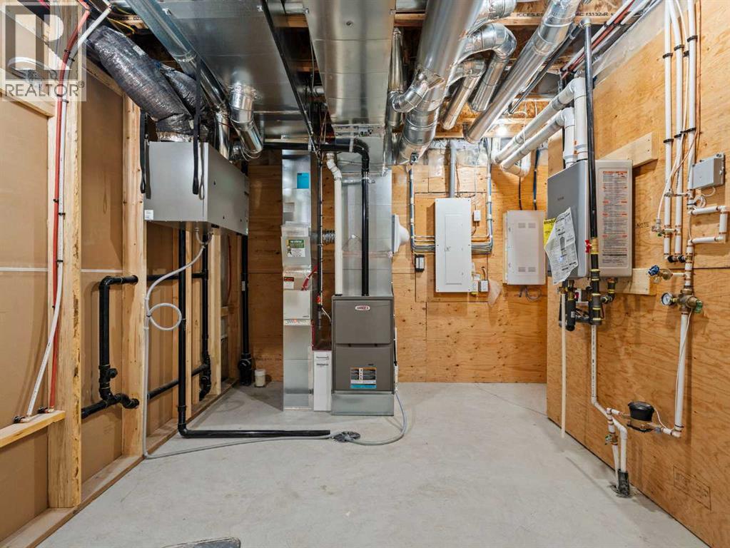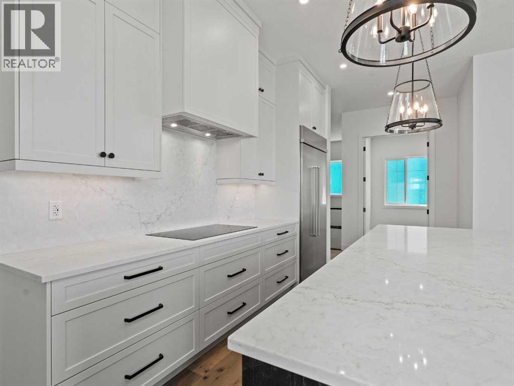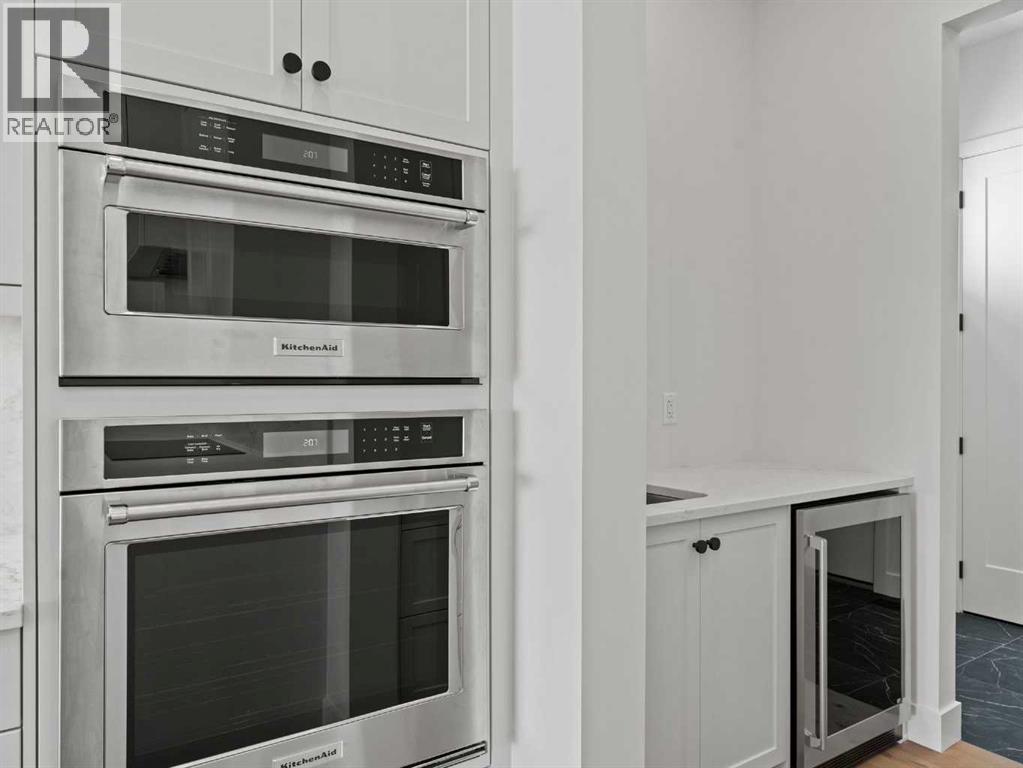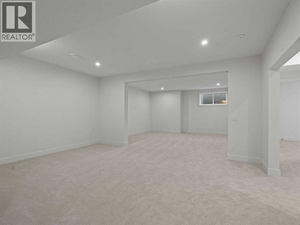 OPEN HOUSES THIS WEEKEND...... SATURDAY, OCTOBER 18TH FROM 2:00 - 4:00 PM........SUNDAY, OCTOBER 19TH FROM 1:00-4:00 PM..... SEE YOU THERE.........Nestled in the heart of Calgary's prestigious Mahogany Estates, this brand-new custom-built, 3,200 sq ft bungalow by Baywest Homes redefines lakeside living. With exclusive access to a semi-private dock and beach, this home offers an unparalleled lifestyle in one of the city's most sought-after lake communities. The main level, spanning nearly 1,700 square feet, boasts soaring nine-foot ceilings and wide plank luxury hardwood flooring in natural wood tones, creating a warm and inviting ambiance. The open-concept design seamlessly integrates the living, dining, and kitchen areas, making it perfect for both entertaining and everyday living. The kitchen is a chef's dream, featuring full-height white cabinetry, a striking oversized dark island, and a high-end appliance package that includes a high-end Kitchen Aid fridge-freezer and built-in oven with a convention microwave. Quartz countertops extend as a sleek backsplash, complemented by designer lighting and a butler’s pantry equipped with a bar sink and beverage fridge. The living room, with its elegant feature fireplace, opens onto a north-facing deck overlooking serene green space, complete with a gas line for effortless outdoor grilling. The master suite is a private retreat, offering a spa-like en-suite with heated tile floors, an oversized shower, a freestanding soaker tub, dual vanities, and a private water closet. A spacious walk-in closet and adjacent laundry room add to the convenience and luxury of this space. The main floor also includes a private office with glass French doors, a well-appointed mudroom, and a walk-in closet. Descending to the fully finished basement, you'll find a large recreation room, a family room, two generously sized bedrooms, and a full bathroom with heated floors. The home is thoughtfully designed with ample storage and numerous upgra des, including tankless hot water and triple-paned windows. The attached triple garage, with its 14-foot ceilings, offers ample space for a car lift and is equipped with 220V for a vehicle charging station. This property is a masterpiece of design and functionality, offering the perfect blend of luxury, comfort, and convenience. With its prime location and exclusive amenities, lakeside living in Mahogany has never been more enticing. (id:51913)