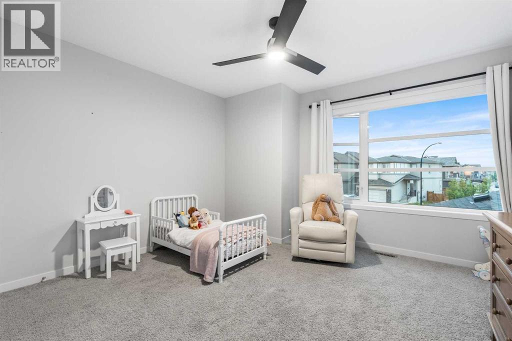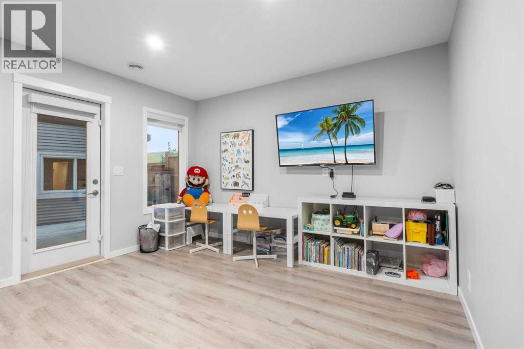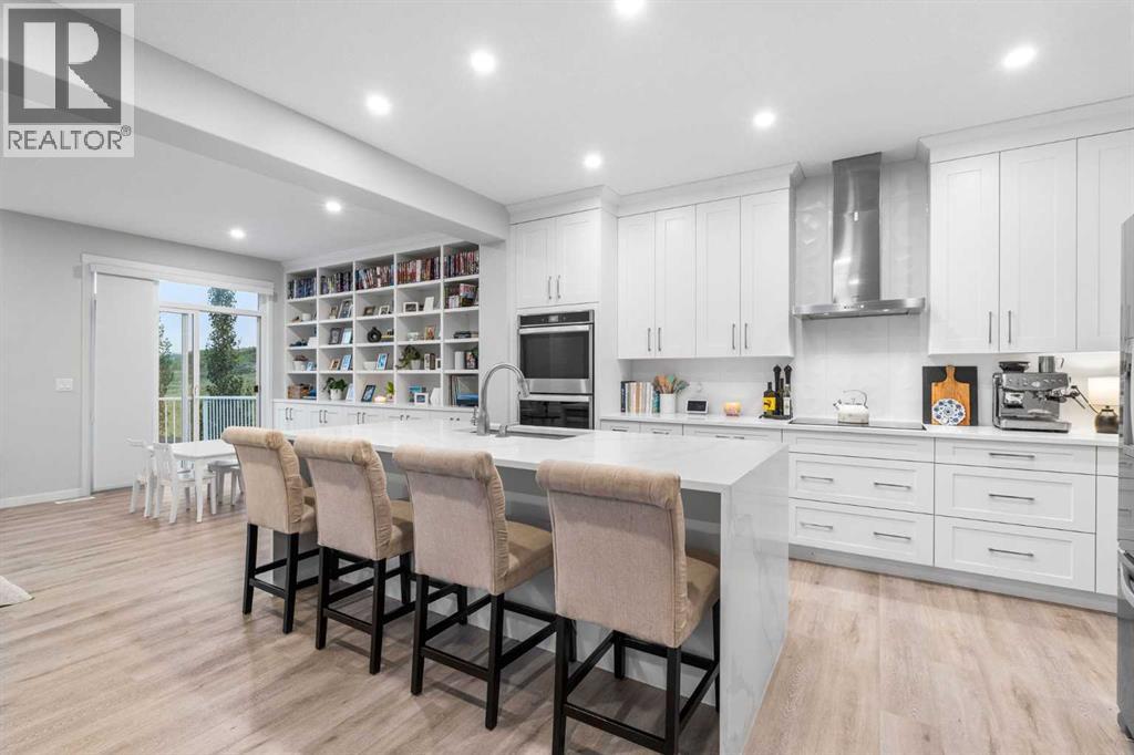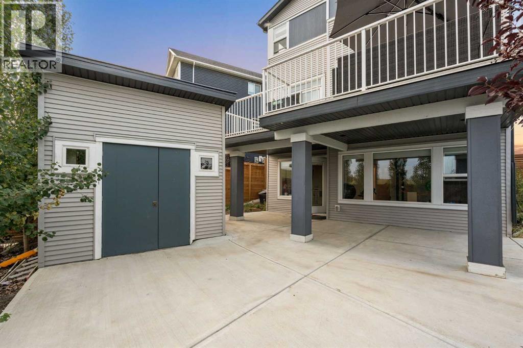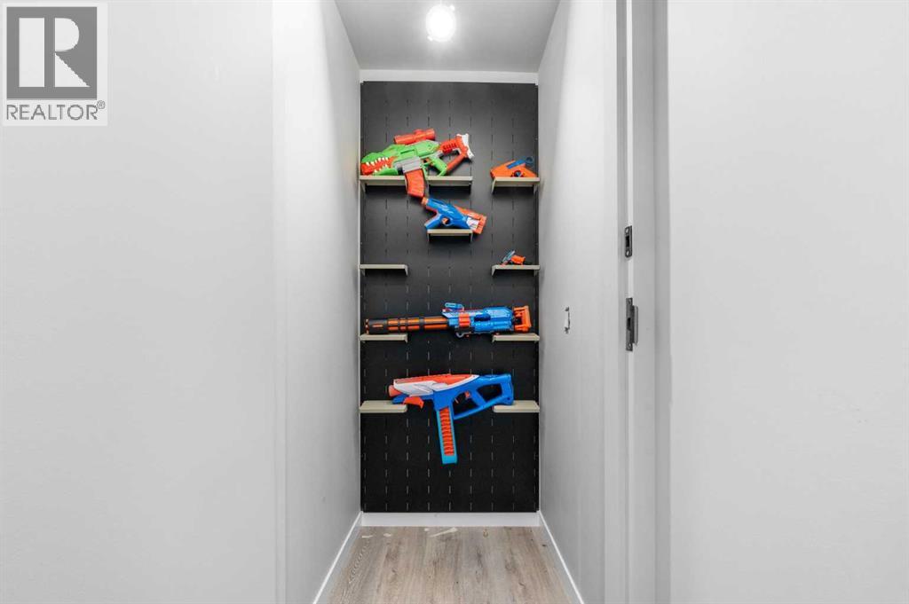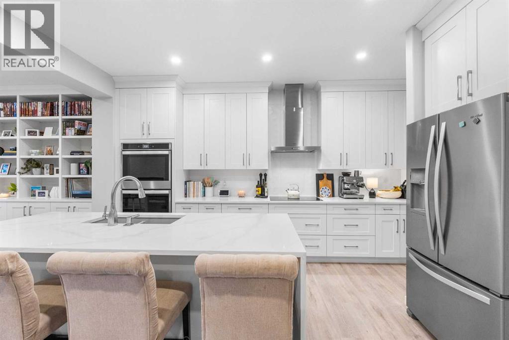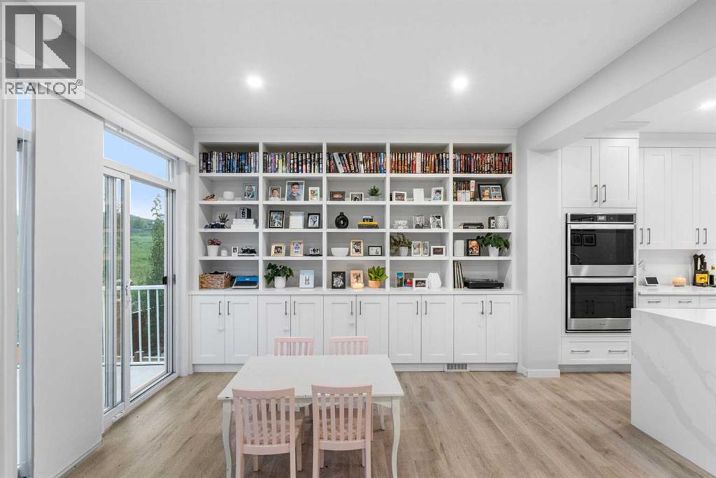 Welcome to this exceptional 2-storey home offering over 3,000 sq. ft. of living space with a fully developed walkout basement. Perfectly situated on a quiet half cul-de-sac, this property sits on a massive pie-shaped lot—fully landscaped, irrigated, and adorned with over 40 mature trees for beauty and privacy.Step inside to discover an open main floor designed for both function and style. The gourmet kitchen features a waterfall island, double ovens, and oversized appliances, while the built-in bookshelves and mudroom with custom features add thoughtful touches.Upstairs, you’ll find 3 spacious bedrooms, including a luxurious primary suite with a fully tiled spa-inspired ensuite complete with floor-to-ceiling glass shower.The walkout basement extends your living space with a built-in office and a commercial-grade custom metal door safe room, ideal for secure storage.Outdoor living is unmatched with an oversized dura deck, a shed designed to match the home, and endless yard space for entertaining, gardening, or relaxing.With over $150,000 in upgrades, this home is truly one-of-a-kind—offering the best lot in the community paired with high-end finishes throughout. (id:51913)