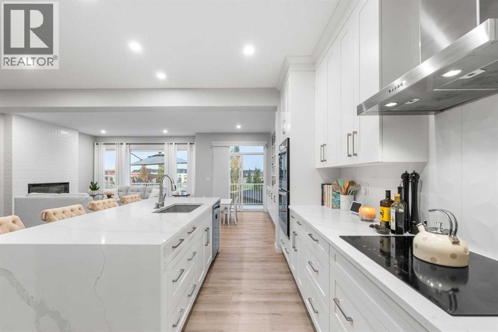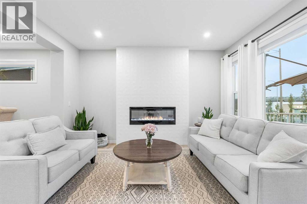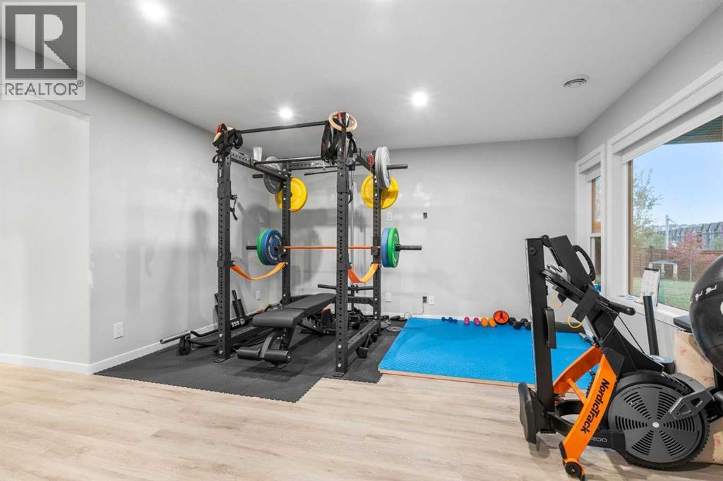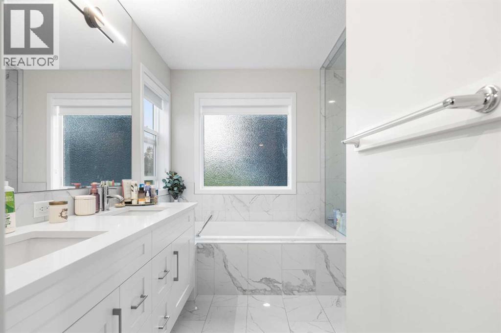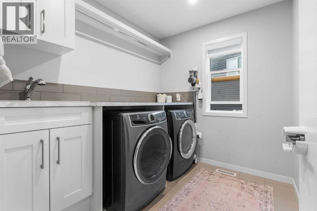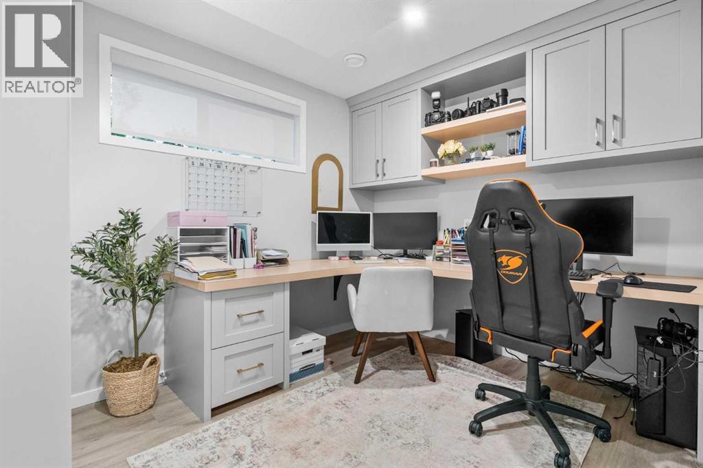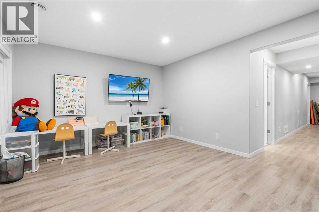 Welcome to this exceptional 2-storey home offering over 3,000 sq. ft. of living space with a fully developed walkout basement. Perfectly situated on a quiet half cul-de-sac, this property sits on a massive pie-shaped lot—fully landscaped, irrigated, and adorned with over 40 mature trees for beauty and privacy.Step inside to discover an open main floor designed for both function and style. The gourmet kitchen features a waterfall island, double ovens, and oversized appliances, while the built-in bookshelves and mudroom with custom features add thoughtful touches.Upstairs, you’ll find 3 spacious bedrooms, including a luxurious primary suite with a fully tiled spa-inspired ensuite complete with floor-to-ceiling glass shower.The walkout basement extends your living space with a built-in office and a commercial-grade custom metal door safe room, ideal for secure storage.Outdoor living is unmatched with an oversized dura deck, a shed designed to match the home, and endless yard space for entertaining, gardening, or relaxing.With over $150,000 in upgrades, this home is truly one-of-a-kind—offering the best lot in the community paired with high-end finishes throughout. (id:51913)