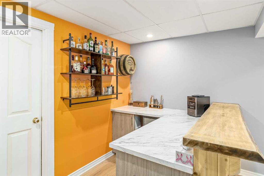Attractive two-storey, end unit townhouse in the desirable community of Hidden Valley NW is an absolute must see! Pride of ownership is evident in this 1,545 sq. ft., 2 bedrooms, 2.5 bath home. A wide front drive and insulated, attached, double garage ensure parking room for at least four vehicles. The main floor introduces you to an open-concept living room, dining area and kitchen, each with their own unique features. A natural gas fireplace with tiled mantle in the living room provides charm and warmth on cold winter evenings. The dining area affords access to the sunny SW facing patio where you can barbecue to your heart’s content and take in a splendid view of the Valley. The kitchen has elegant white cabinets, new stainless appliances, deluxe granite countertops, an island/breakfast bar providing additional prep room, a handy corner pantry and a special touch – new ceramic tiling (kitchen and dining area) with in-floor heating (kitchen only). A convenient 2-pc. bath with roughed-in plumbing for laundry completes the main level. Note that the lighting on the main level has been upgraded. The second floor has a substantial, roomy primary bedroom with a vaulted ceiling and a 4-pc. ensuite, once more, with the added comfort of ceramic tiling and in-floor heating. An amply sized second bedroom also has a 4-pc. ensuite. A bonus area could be utilized as a home office, reading area or entertainment zone. The walk-out basement is fully finished and features an electric fireplace, laundry room and roughed-in plumbing for an additional bathroom. Ideally located near major routes such as Stoney and Beddington Trails, Country Hills Boulevard and shopping/restaurants; Hidden Valley Park; Country Hills Golf Club; numerous schools (K-6, 5-9, public and Catholic); churches; transit and easy access to Calgary International Airport. The benefits of this property are numerous. Not only are there upgrades such as new laminate flooring on the main level, central air conditioning, new furnace, hot water tank and humidifier but common area maintenance provided by a professional management company only adds to the value and convenience. Call today and arrange for an exclusive in-person tour. (id:51913)