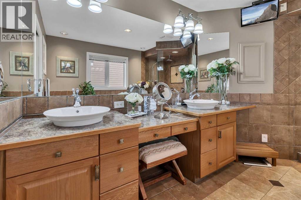 Stunning original owner walk out bungalow. Loaded with some fantastic, amazing upgrades which include: newer triple pane, low E windows main level, newer front door & over head garage door, newer LVP flooring main, 10" ceilings main, kitchen with refinished cabinets, granite, newer back splash, top of the line stainless steel appliances, newer master ensuite offering heated floors, soaker tub with air jets & self cleaning, duel shower head shower, gas fireplace, dry bar with bar fridge, newer furnace & hot water tank, heated, insulated & drywalled garage with epoxy floors, built in cabinets & shoe rack, generator panel installed next to main panel with the inlet in garage incase power ever goes out, all poly B removed, Pex installed, emergency back up lighting in garage, utility room & stairs, air conditioning, interior/exterior camera system, full length deck with a portion covered, large concrete patio, custom garden boxes, over 2500 sq ft of developed living space, custom brick front exterior & so much more. The bright open main floor features a living & dining room combo, kitchen with island & access to the NW facing deck, 4pc bath & 2 good size bedrooms. The primary bedroom offers a walk through closet & full spa like ensuite. The lower walkout level features a family room with built in cabinets & gas fireplace, games area with dry bar, 3rd bedroom that also has a 3pc ensuite with heated floors, there is also a large laundry room with lots of storage space. Located on a very quiet close to bus, shopping, green spaces, Stoney & Deerfoot & all other amenities. Click on link to view 3D walk through. (id:51913)